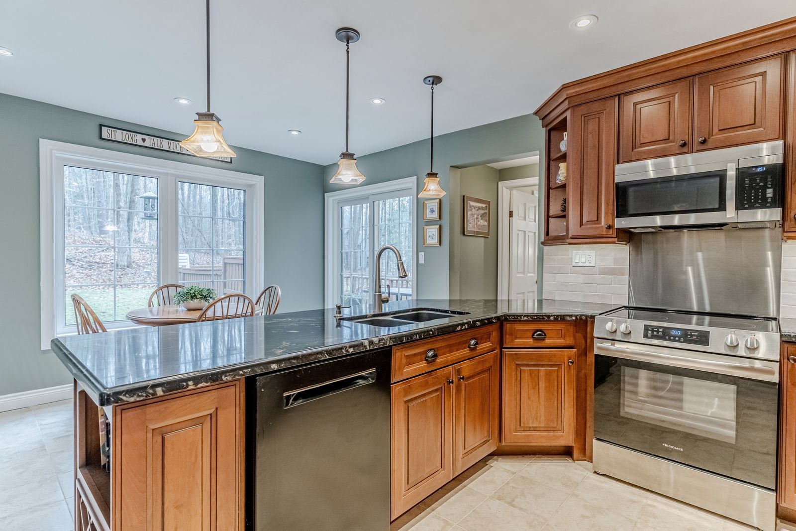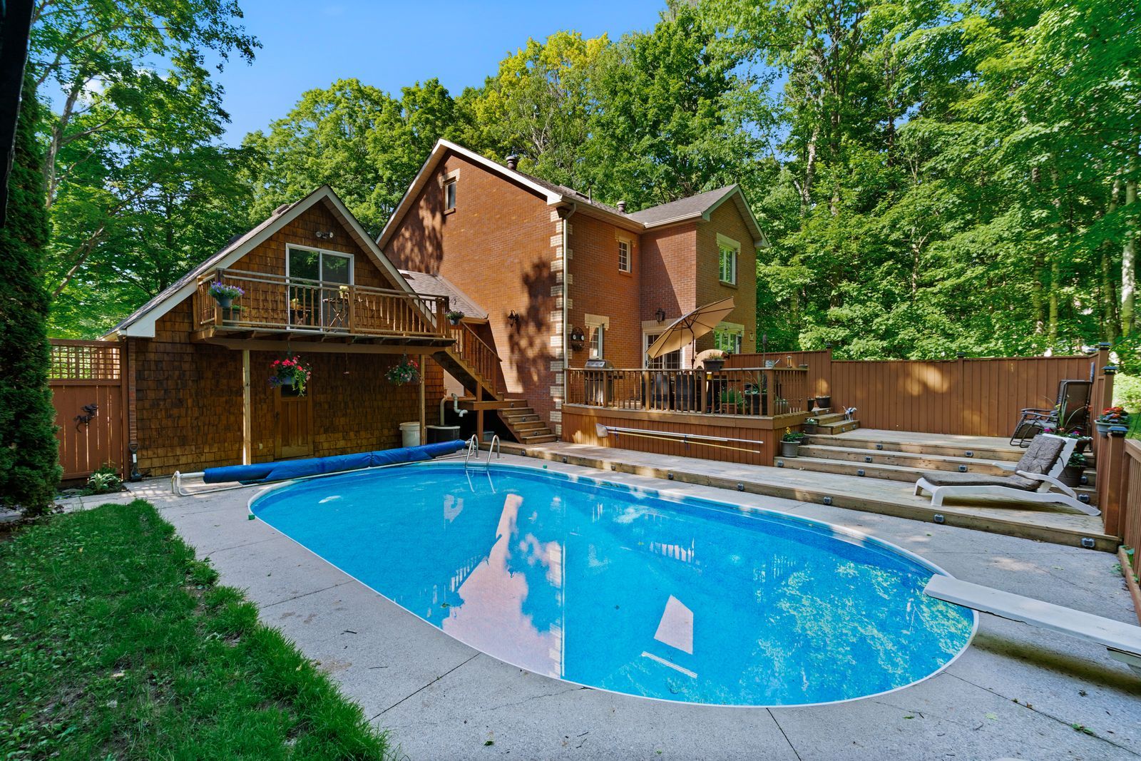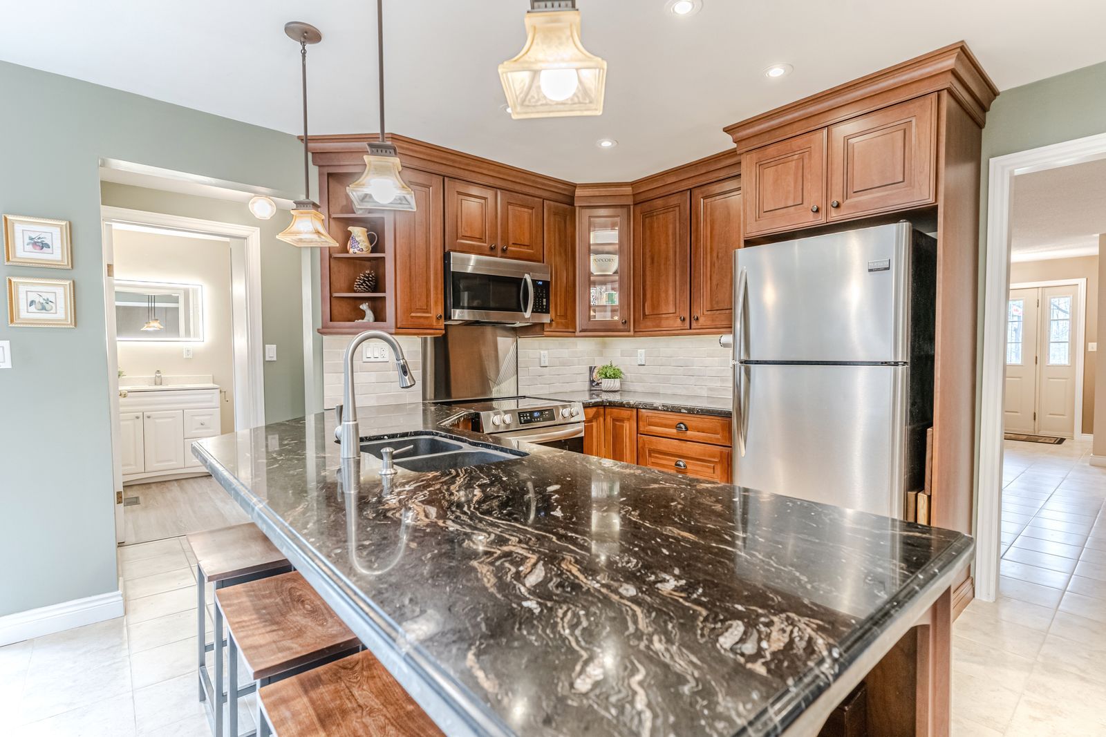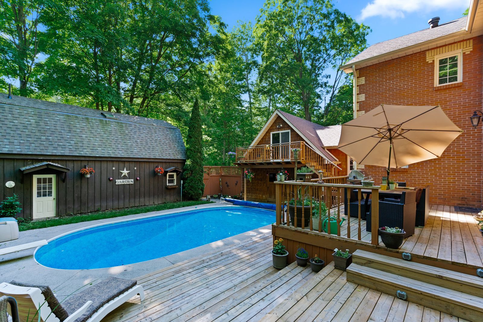 Executive midhurst estate on over 1 acre with nearly 4,700 fin sq ft, inground pool, dual garages & multi-generational living potential! Some homes have a way of making you pause and take a second look, and this is one of them. Whether you're planning for multigenerational living, welcoming guests, or carving out a private escape, the options are endless. All of this is just five minutes from barrie and moments from trails and golfing. The home has been thoughtfully cared for with notable upgrades throughout, including newer flooring, appliances, fixtures, windows, mechanical updates and pool enhancements, all contributing to a space that feels truly move-in ready. The kitchen offers a warm, welcoming feel, with granite counters featuring bevelled edges, stainless steel appliances, rich wood cabinetry with crown moulding, a subway tile backsplash, a breakfast bar, and a bright breakfast area with a walkout to the deck. The family room offers comfort with its bamboo flooring, wood stove and large windows, while the separate living and dining rooms easily transition from casual gatherings to special celebrations. Upstairs, four spacious bedrooms include a standout primary suite with double-door entry, a walk-in closet, an additional closet, and a four-piece ensuite with a jetted tub and separate shower. The finished lower level features an oversized recreation room perfect for movie nights or games, a private bedroom and generous storage spaces that keep life organized. The backyard delivers an oasis-like escape, wrapped in calm and quiet. Warm summer days drift by beside the heated inground pool. Early hours are best enjoyed with coffee on the deck. As the sun sets, the space transforms into the ultimate peaceful retreat. A standout blend of thoughtful design, flexible living arrangements and a serene setting, this #hometostay is ready to welcome its next chapter.