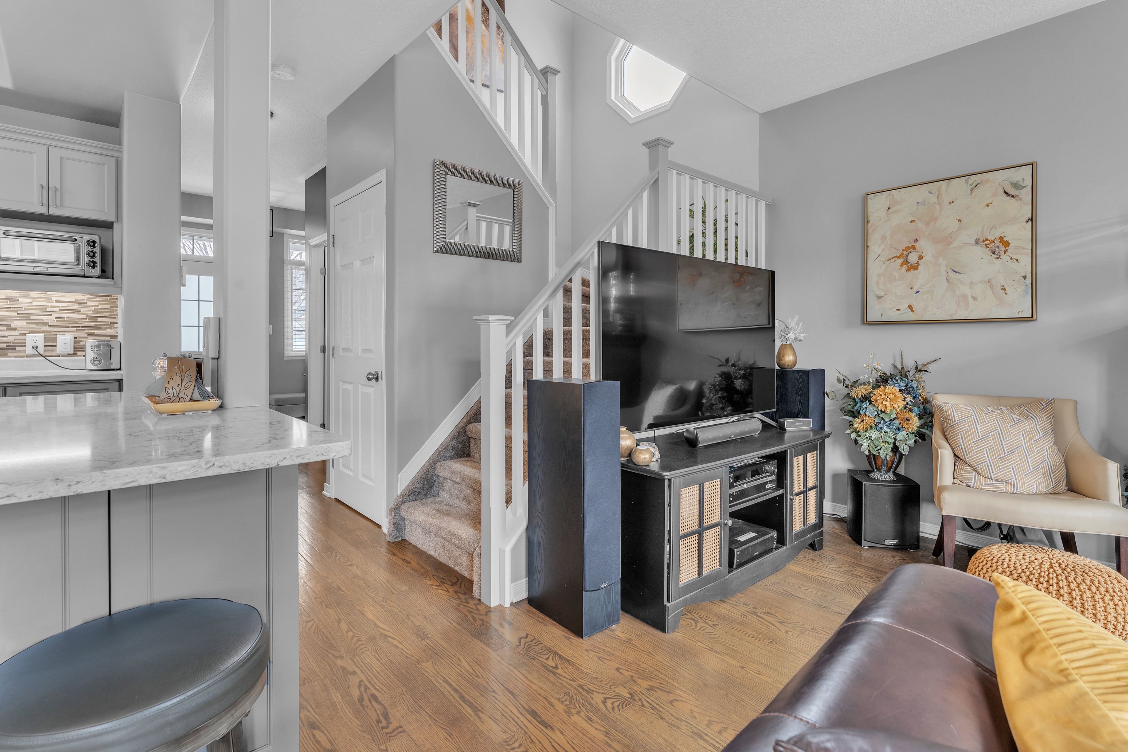• Open-concept main floor with 9-ft ceilings and hardwood floors.