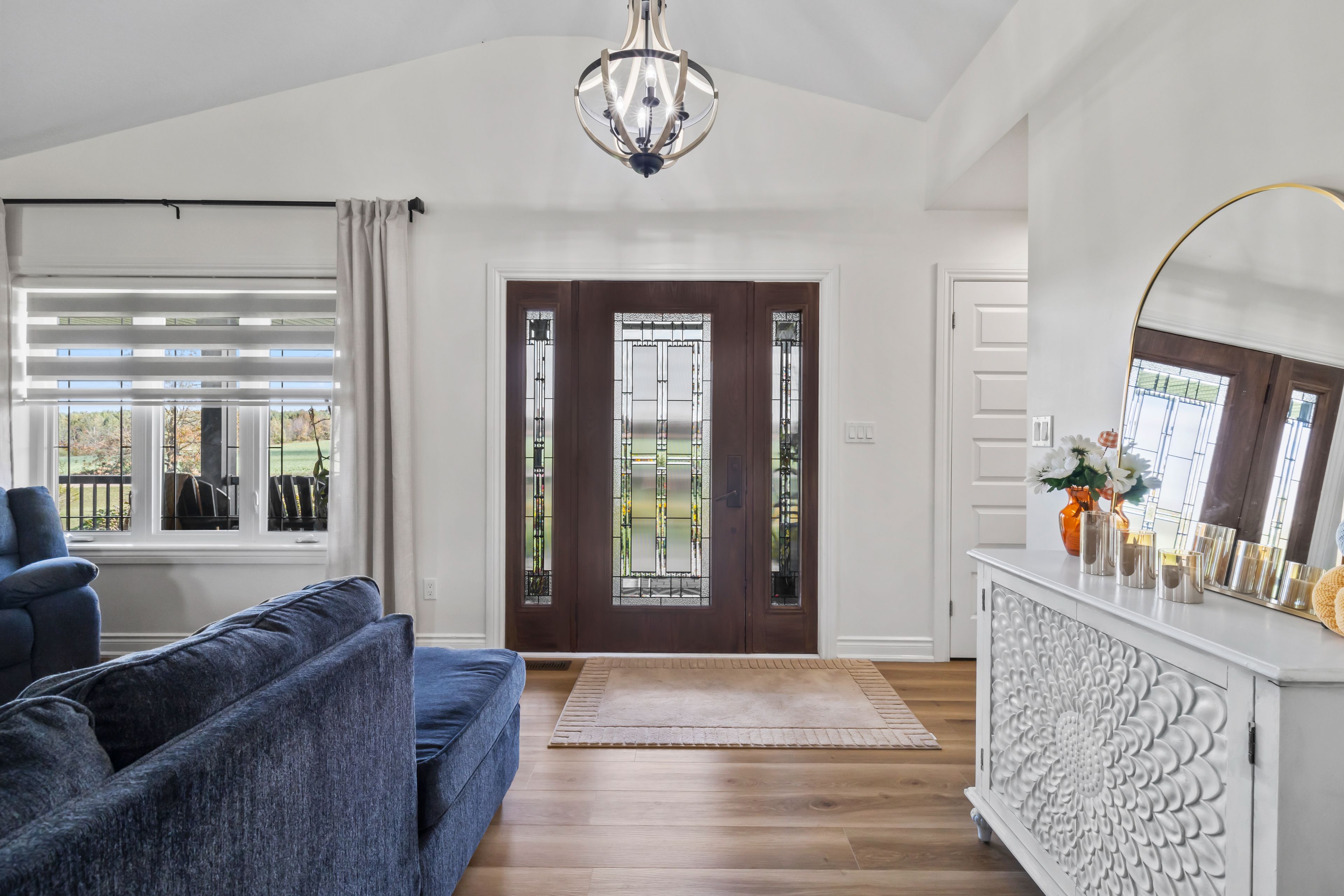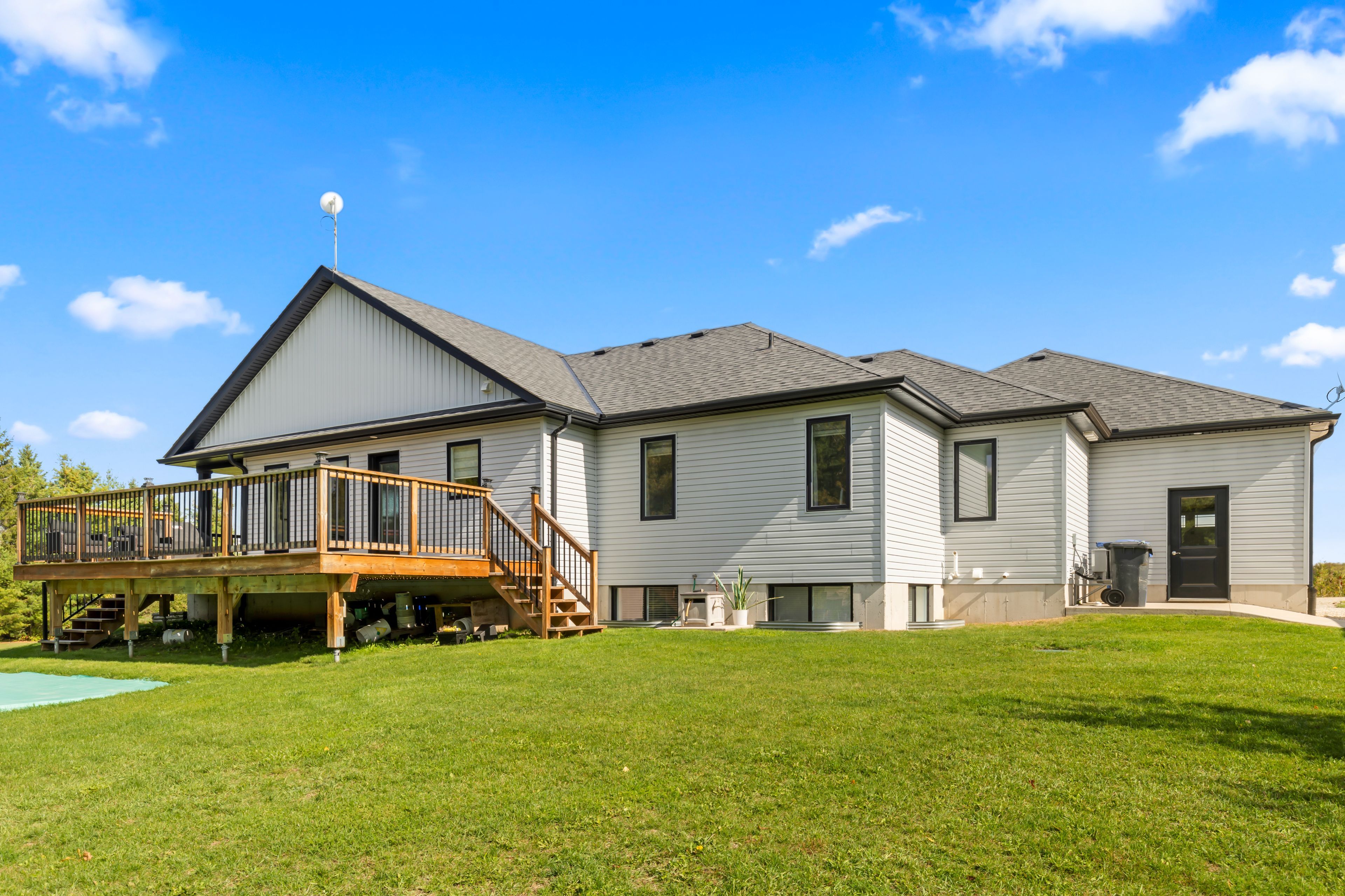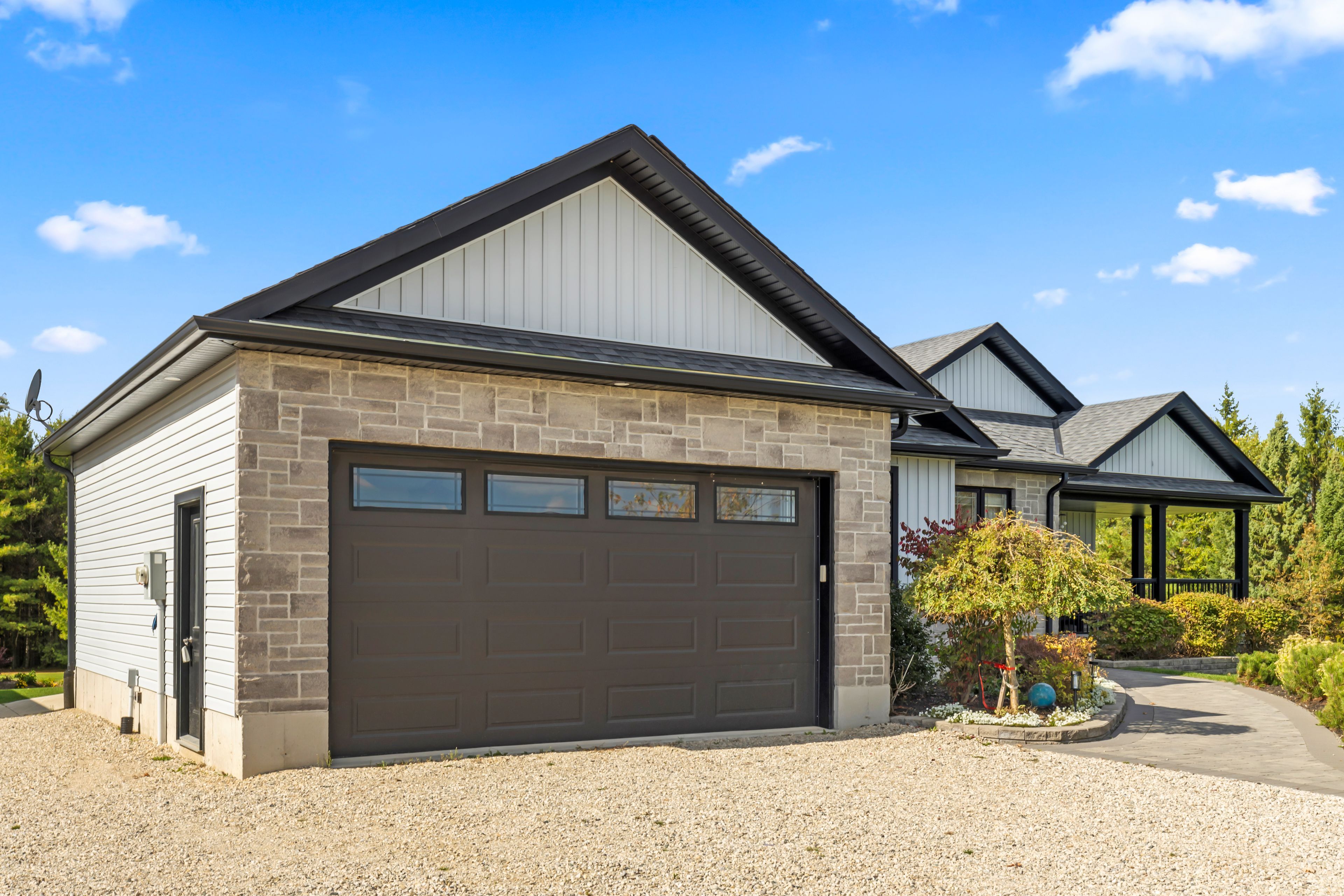 Welcome to country living at its finest. Nestled on a peaceful 10-acre treed property just outside conn, this beautifully maintained candue-built bungalow (2016) blends modern comfort with timeless charm. Surrounded by nature, this home offers the perfect balance of privacy, functionality, and warmth - ideal for families, retirees and those seeking country living. Over 2,700 sq. Ft. Of finished living space, featuring 3+1 bedrooms, 3 full bathrooms, and a bright, open-concept layout filled with natural light. The main floor living area opens to the covered porch - the perfect spot to enjoy your morning coffee while taking in peaceful views of the surrounding farmland. The fully finished lower level includes a second kitchen, a fourth bedroom, and a large family room, offering flexibility for multigenerational living, guests, or a separate suite. Outside, you'll find a detached 900 sq. Ft. Insulated shop, ideal for tradespeople, car enthusiasts, or anyone who loves to work with their hands. The attached garage, landscaped grounds, and private trails add to the appeal of this property. Built with care and craftsmanship, every detail reflects quality construction and thoughtful design from the ample storage and functional layout to the peaceful setting that surrounds you. Located in southgate, just minutes from conn and within easy reach of surrounding towns, this is a rare opportunity to own a modern, well-built country home where quality meets tranquility.