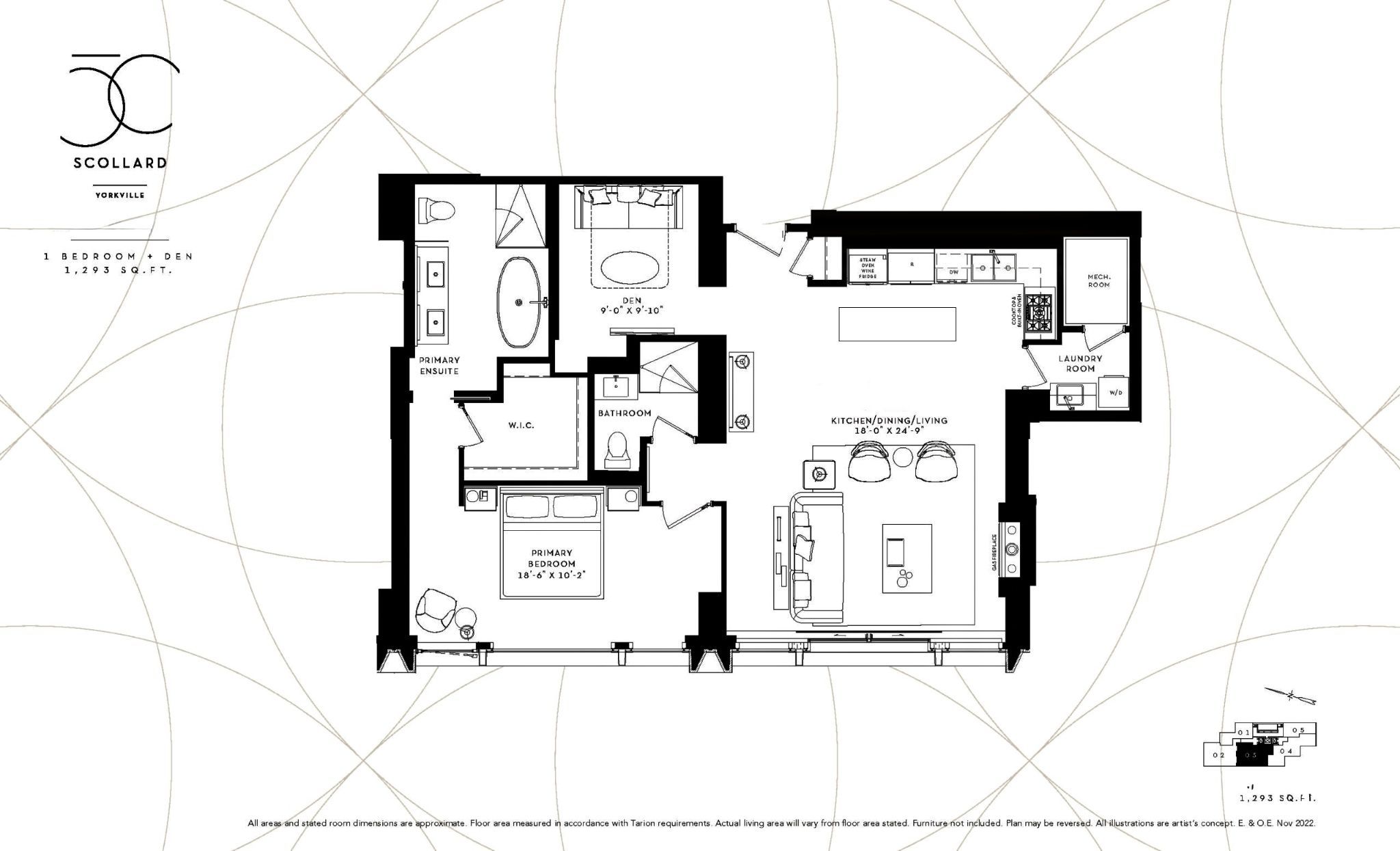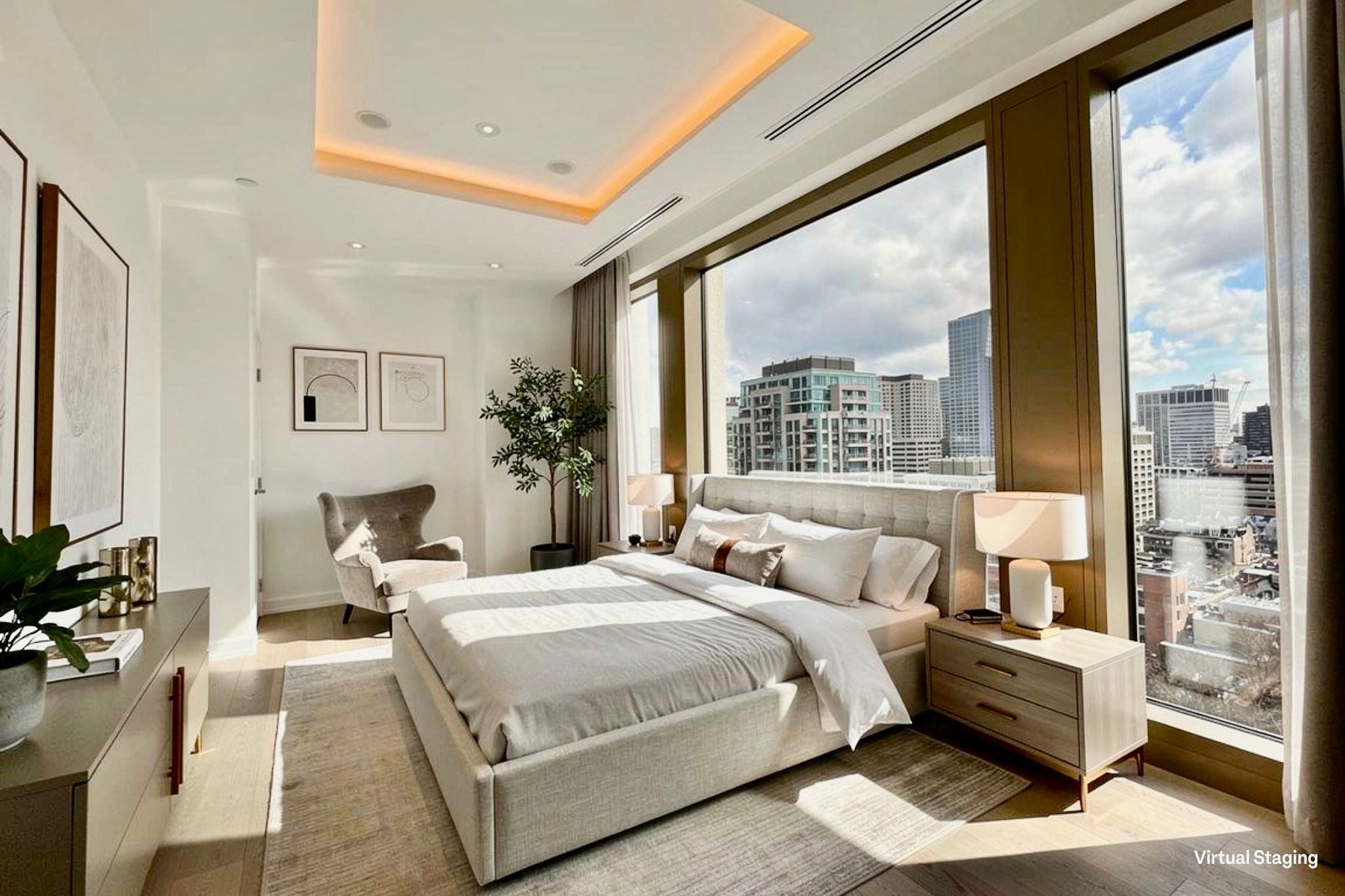 Welcome to 50 scollard, in the heart of yorkville, a prestigious 41-storey luxury residence with contemporary architecture from the pritzker prize-winning british architect, norman foster. Extraordinary interiors by toronto-based italian designer, alessandro munge. Only 129 exclusive residences for toronto's most discerning residents. This sunny west-facing one bedroom plus den suite featuring 1,293 sq. Ft., soaring 10-foot smooth ceilings and a unique one-of-a-kind layout. Brand new, never lived in and includes one valet parking space. Residents will enjoy world-class amenities currently under construction, offering a true hotel-inspired lifestyle. Grand porte-cochère entrance off bay street with 24-hour valet, porter service, chauffeured house car service, car wash facility located in the parking garage. On-site restaurant, pet spa, executive boardroom space on the second floor. State-of-the-art fitness centre overlooking bay street featuring cardio, weight equipment with dedicated yoga, stretching area. Lavish indoor/outdoor pool, dry sauna, steam room, treatment room. Elegant residents' lounge with fireplace, private dining area with adjacent working kitchen and an exclusively stocked private wine room club. Unbeatable yorkville location, steps to world-class dining, designer boutiques, transit, parks. Toronto's finest urban conveniences. Luxury living in one of the city's most prestigious neighbourhoods. Photos are virtually staged.
