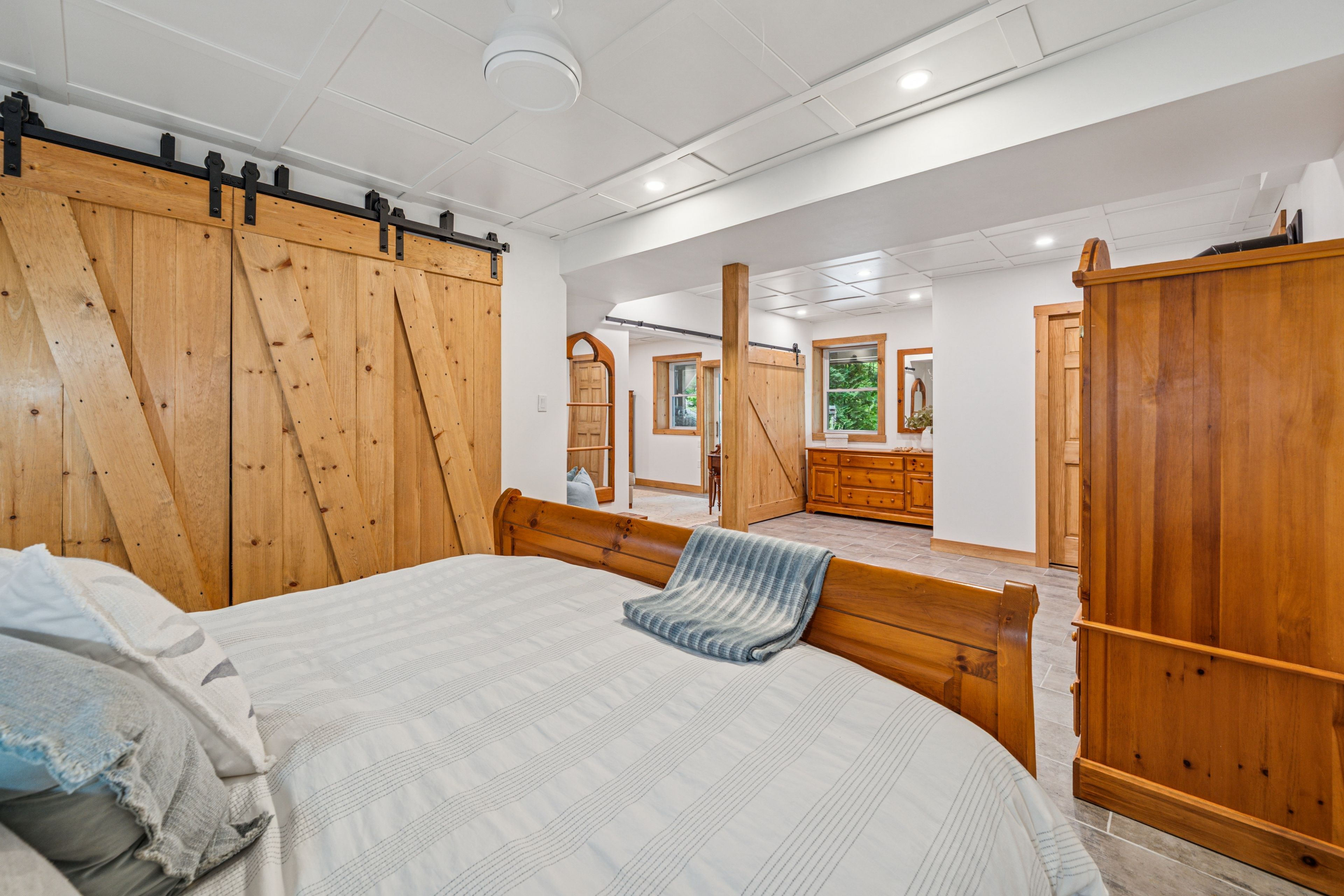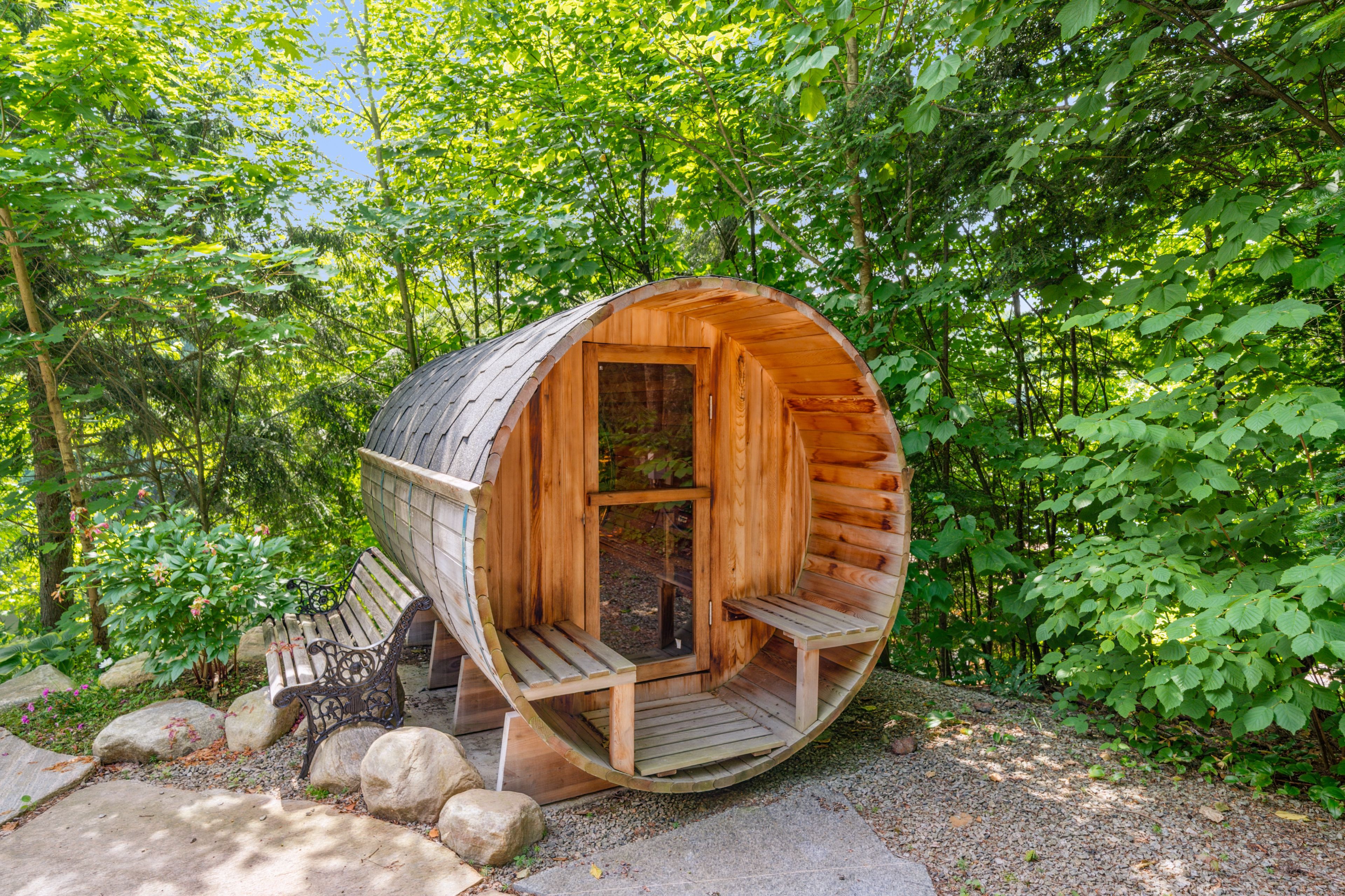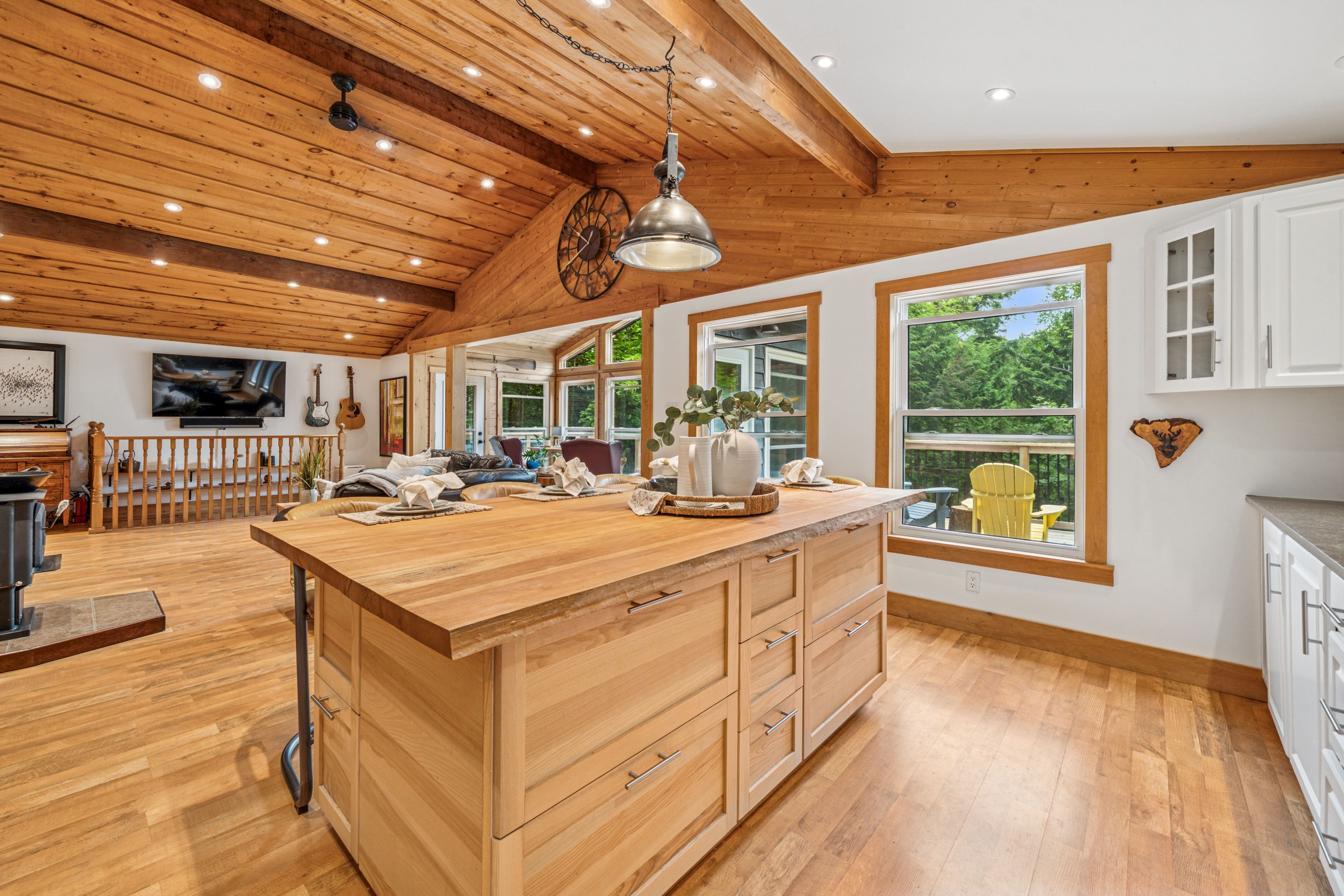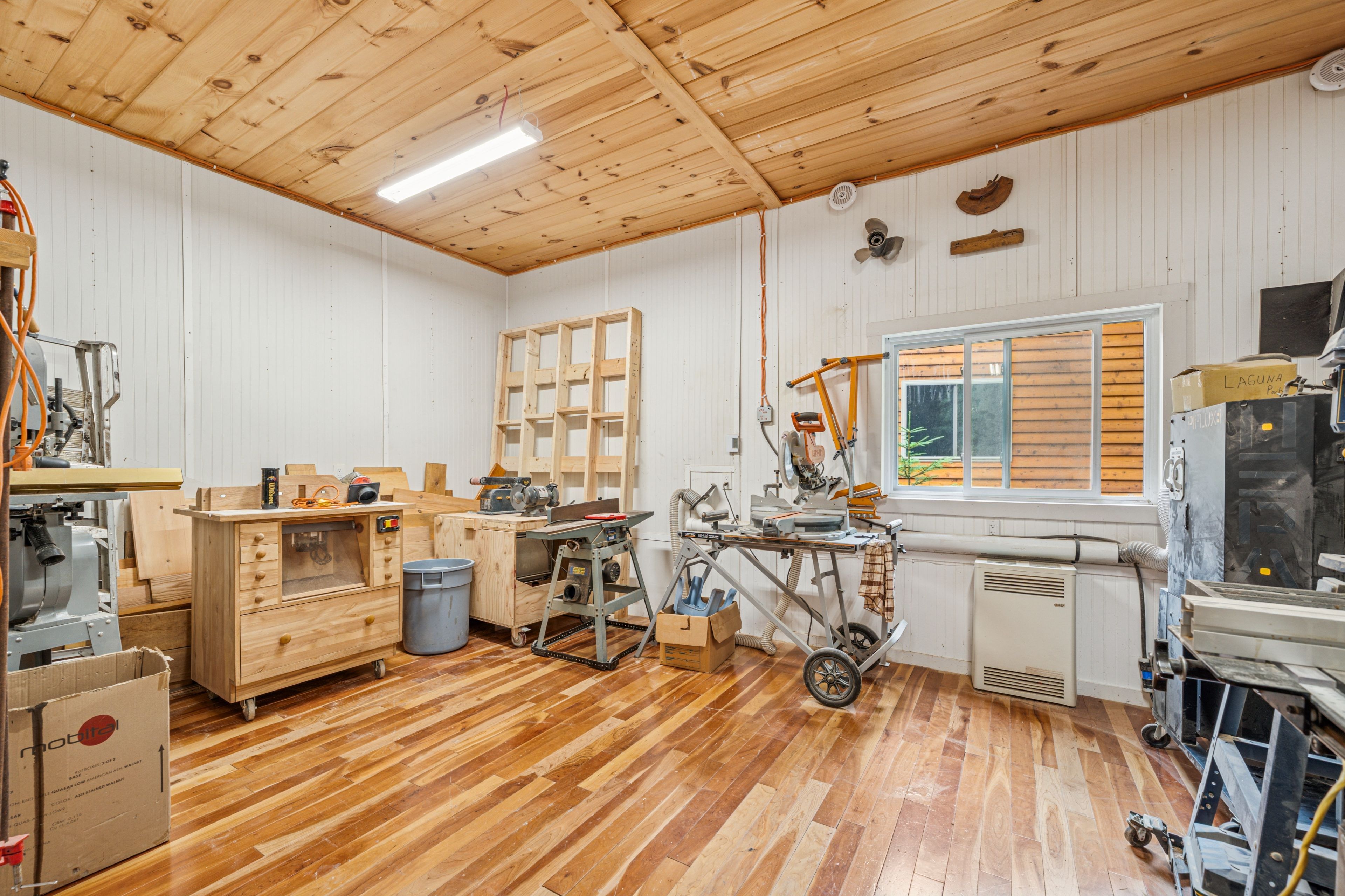 A peaceful year round retreat on a privately maintained road just 15 minutes from dorset. This quiet, low traffic setting is ideal for walking, biking, and safe enjoyment by children and pets. The property offers exceptional privacy, with lake views across to crown land and direct access to a 31+ acre private park-the wolf sanctuary-jointly owned by surrounding cottage owners. Ownership shares transfer with the property, providing wooded trails for walking and snowshoeing. Wolf inlet remains calm even when the main lake is windy, making it perfect for paddling, swimming, and relaxed waterfront living. The cottage/home is bright and inviting, surrounded by mature trees that create a natural, sheltered feel. The main level features an open concept layout with two bedrooms, a full bath, and a spacious sunroom that can serve as additional dining or lounging space. The lower level primary bedroom offers excellent privacy and walkout access to the gardens and lake. The landscaped areas blend seamlessly with the natural tree cover, maintaining strong privacy throughout the property. A large double garage includes a workshop, fitness area, and a loft currently used as a private office-ideal for remote work. Mechanical systems are solid, with a drilled well, forced air propane furnace, airtight woodstove, gas fireplace in the primary bedroom, and a fully automatic 17 kw generac generator. At the shoreline, enjoy quality docking with both shallow entry and deeper water for secure boat mooring. A rare combination of privacy, community, and year round comfort on beautiful kawagama lake.