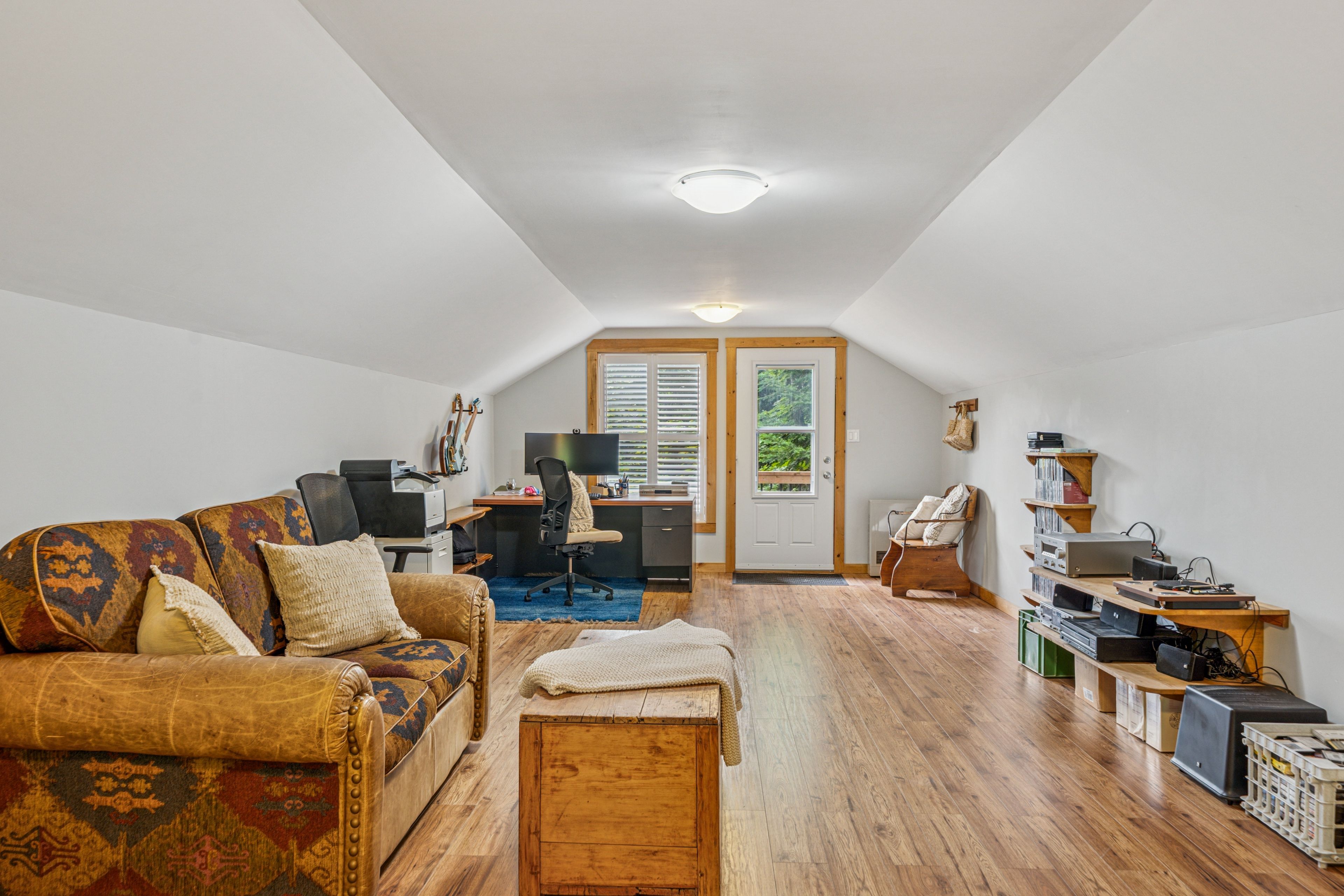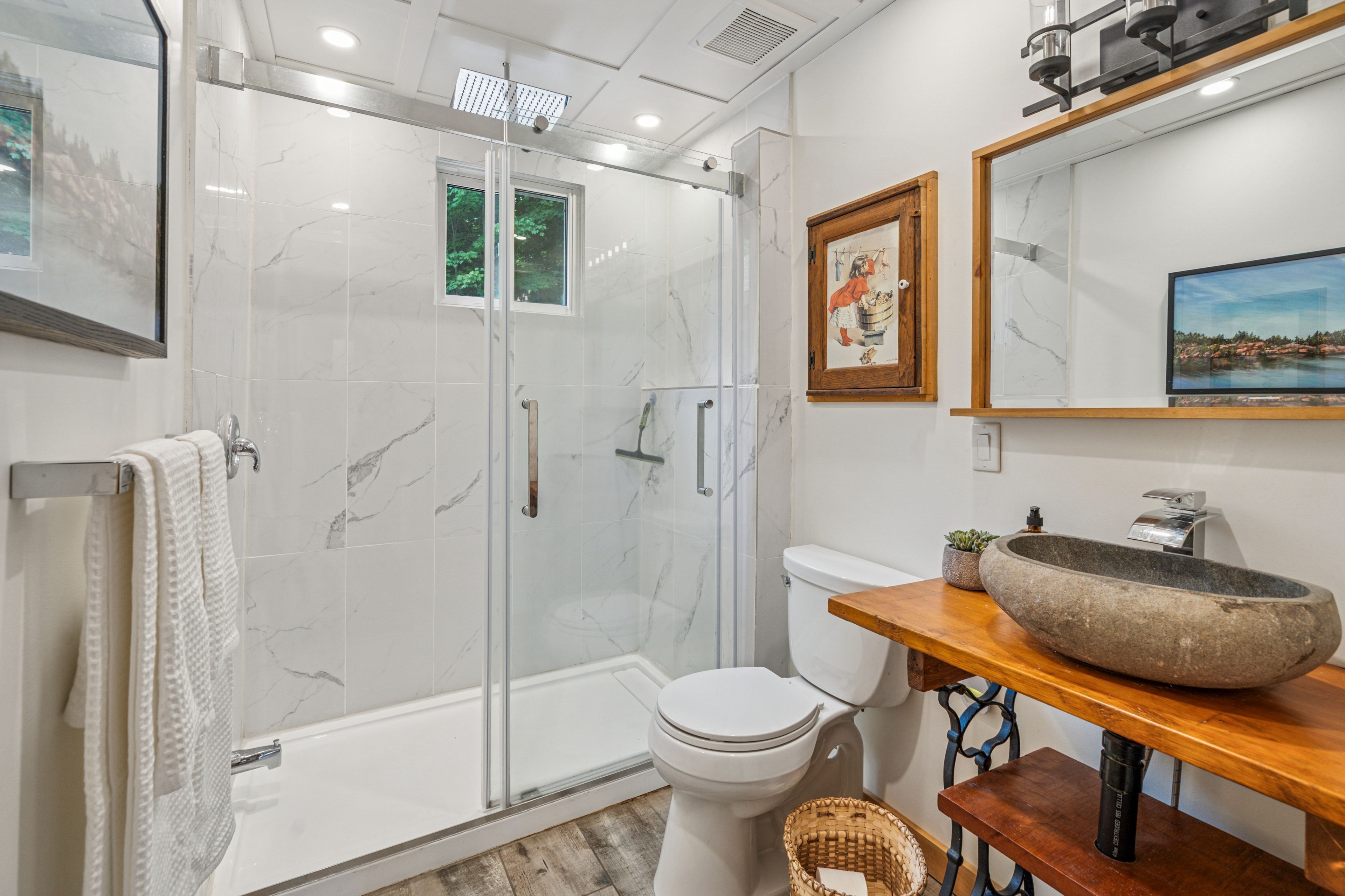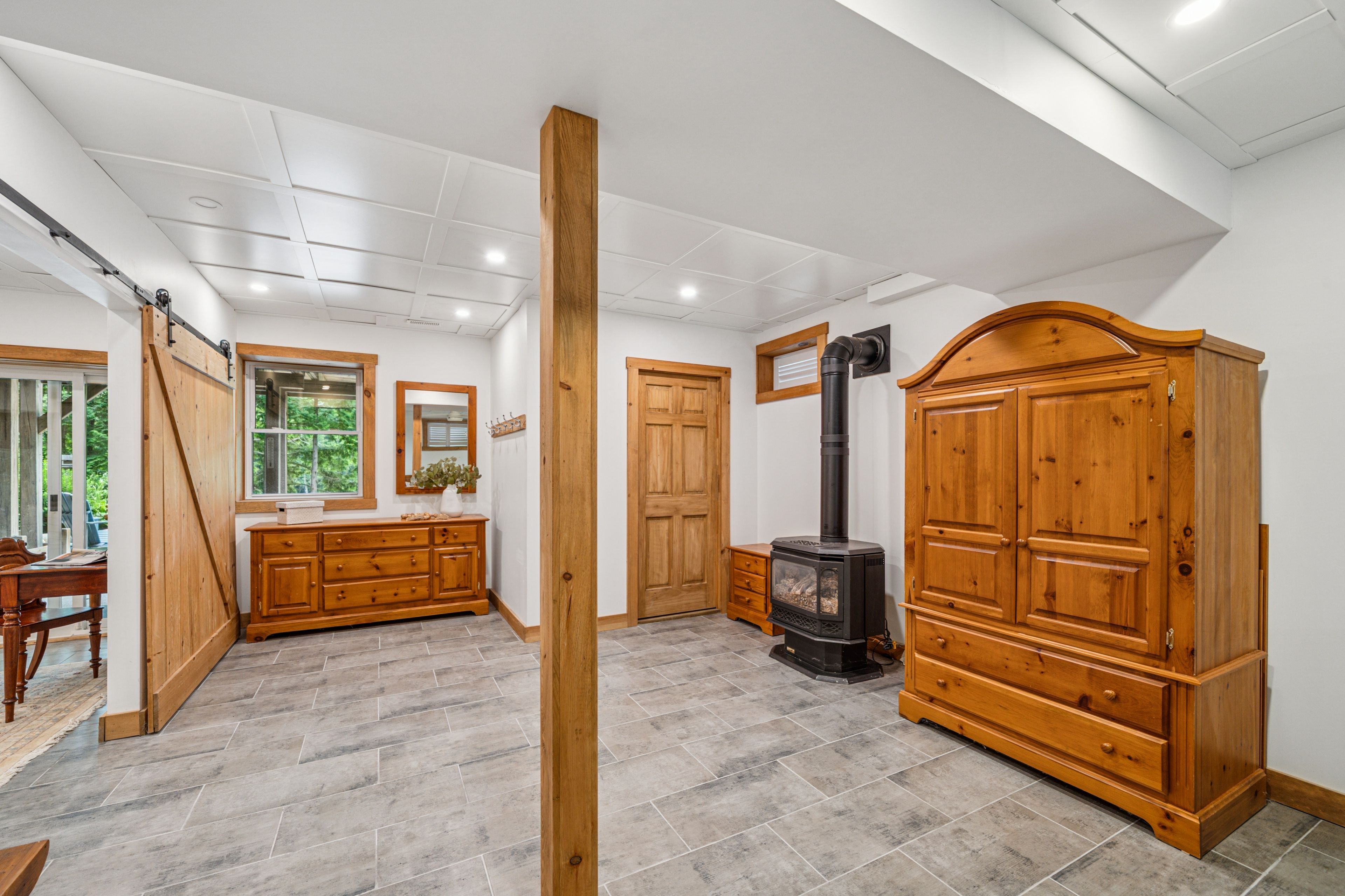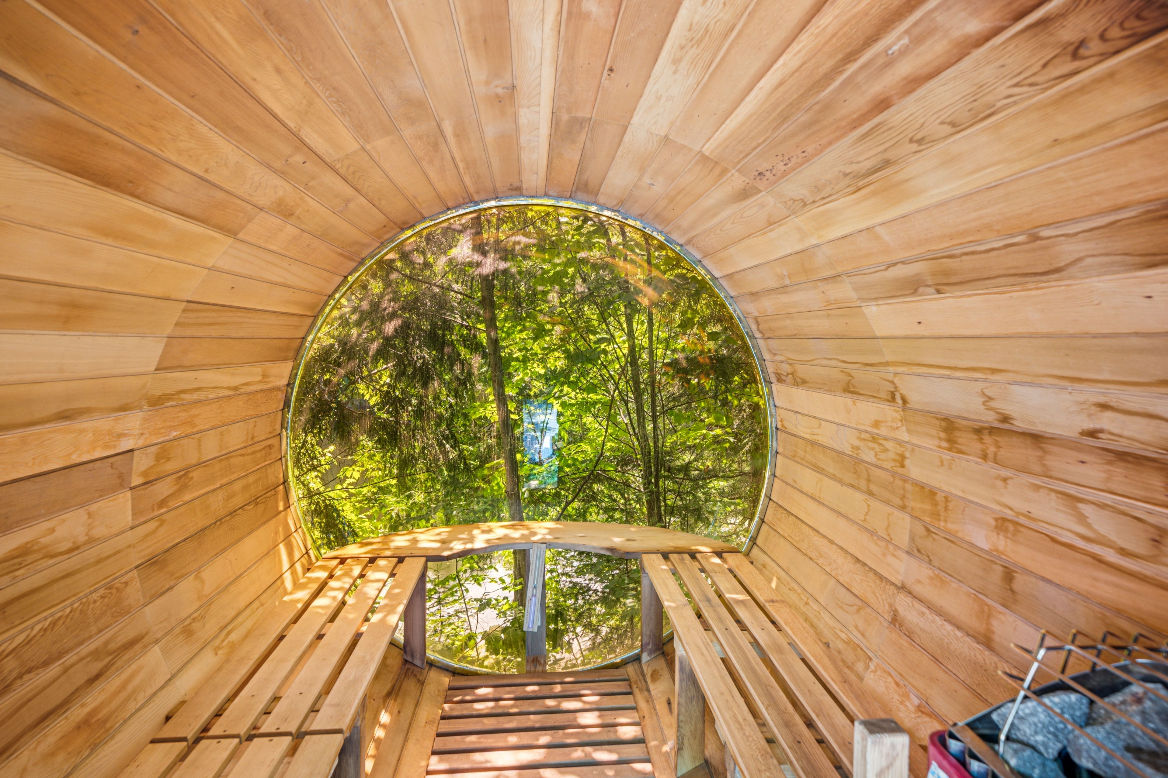 A peaceful year round retreat on a privately maintained road just 15 minutes from dorset. This quiet, low traffic setting is ideal for walking, biking, and safe enjoyment by children and pets. The property offers exceptional privacy, with lake views across to crown land and direct access to a 31+ acre private park-the wolf sanctuary-jointly owned by surrounding cottage owners. Ownership shares transfer with the property, providing wooded trails for walking and snowshoeing. Wolf inlet remains calm even when the main lake is windy, making it perfect for paddling, swimming, and relaxed waterfront living. The cottage/home is bright and inviting, surrounded by mature trees that create a natural, sheltered feel. The main level features an open concept layout with two bedrooms, a full bath, and a spacious sunroom that can serve as additional dining or lounging space. The lower level primary bedroom offers excellent privacy and walkout access to the gardens and lake. The landscaped areas blend seamlessly with the natural tree cover, maintaining strong privacy throughout the property. A large double garage includes a workshop, fitness area, and a loft currently used as a private office-ideal for remote work. Mechanical systems are solid, with a drilled well, forced air propane furnace, airtight woodstove, gas fireplace in the primary bedroom, and a fully automatic 17 kw generac generator. At the shoreline, enjoy quality docking with both shallow entry and deeper water for secure boat mooring. A rare combination of privacy, community, and year round comfort on beautiful kawagama lake.