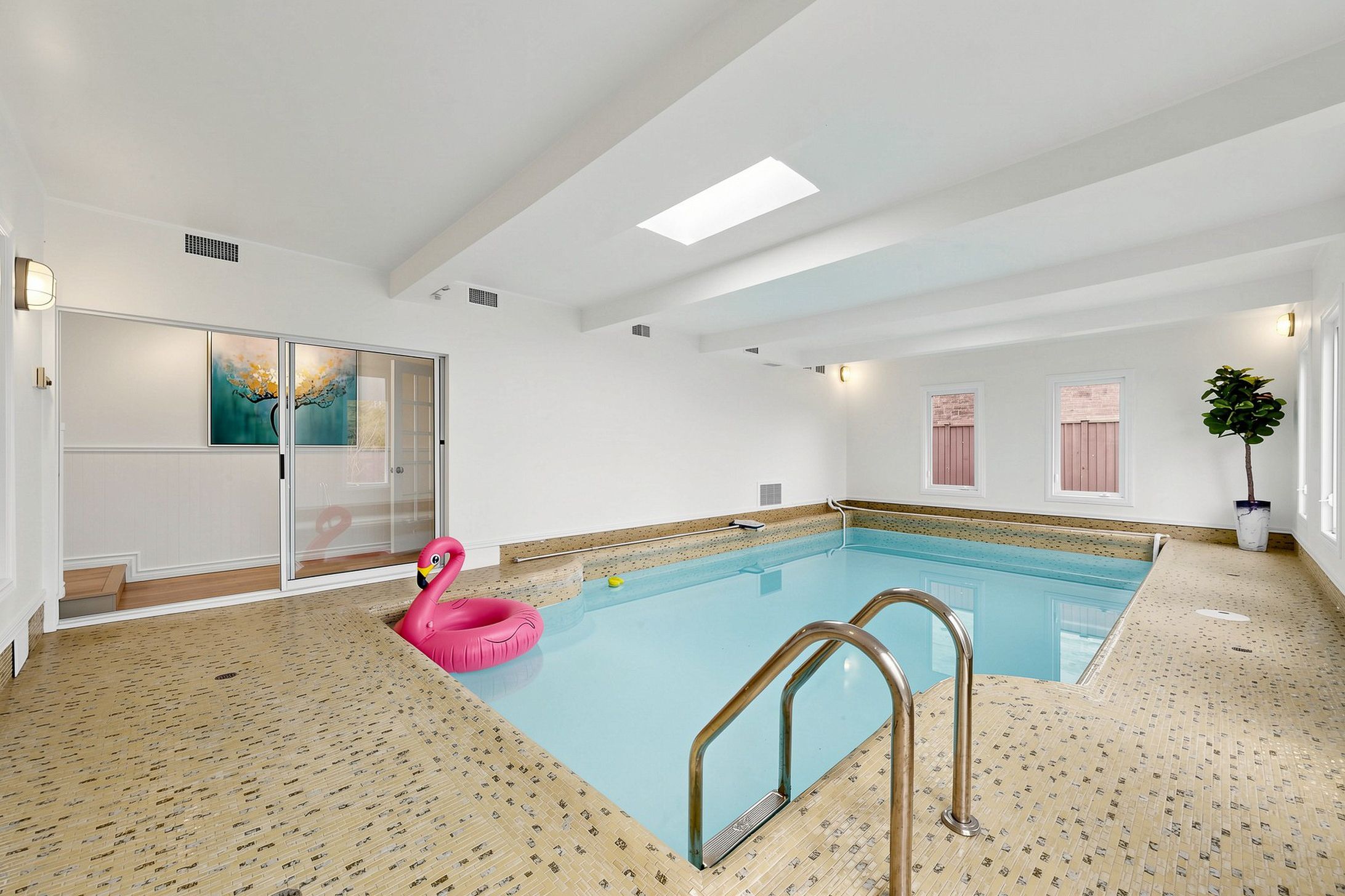 Set on a premium 102 x 154 ft lot just steps from gairloch gardens and lake ontario, this elegant colonial residence at 1316 cambridge dr offers over 5,000 sq. Ft of finished living space across three levels, in one of south east oakville's most coveted neighbourhoods. A stately columned façade and interlock driveway create a strong first impression. Inside, the expansive 2,500+ sq ft main floor offers exceptional versatility with multiple distinct living areas, including a formal living room with marble-surround fireplace and built-in cabinetry, a generous family room with wood-burning fireplace, a front-facing study open to the dining room, and a centrally positioned dining room. The chef's kitchen features granite countertops, a centre island with prep sink, custom cabinetry, a professional-grade cooktop, and a skylight, with sliding doors leading to the rear terrace. A spacious laundry/mudroom with exterior access and a 2-pc powder room complete the main level. A dedicated indoor pool wing with skylights offers a bright, private setting for year-round enjoyment - an increasingly rare offering in this location. Upstairs, four bedrooms include a primary suite with private ensuite, along with three additional bedrooms served by a 4-pc bath. The 1,500+ sq ft lower level provides excellent flexibility, featuring a dedicated home theatre, a large recreation room, a den, and an impressive 362 sq ft bedroom with fireplace - ideal for guests, extended family, or nanny use - supported by a 3-pc bath. A walk-up leads directly to the rear yard, where a large terrace and sweeping open lawn, framed by mature trees, offer a private backdrop for outdoor entertaining. Steps to the waterfront trail, gairloch gardens, and lake ontario, within the catchment of top-ranked oakville trafalgar high school and minutes from prestigious private institutions including appleby college. Few addresses in south east oakville command this location - and the lifestyle that comes with it.