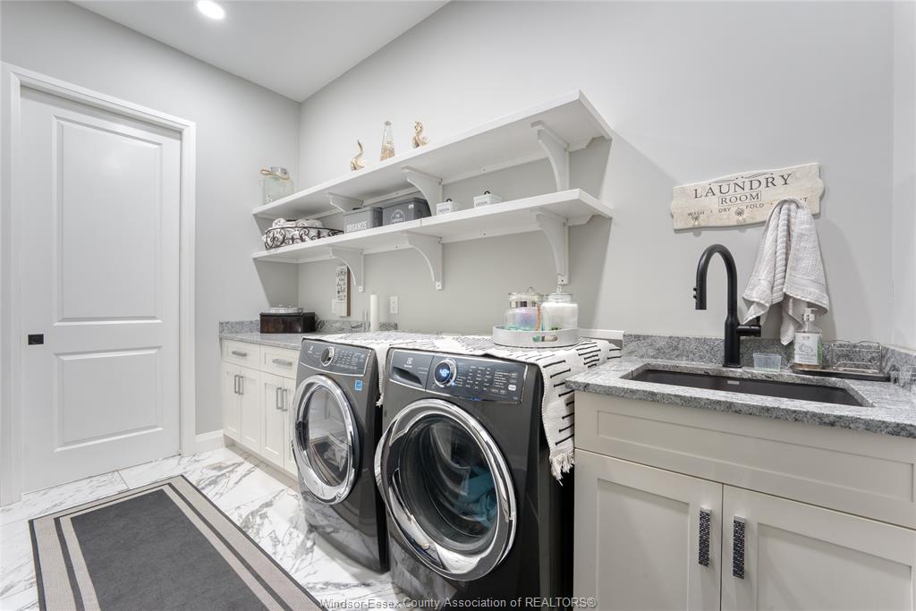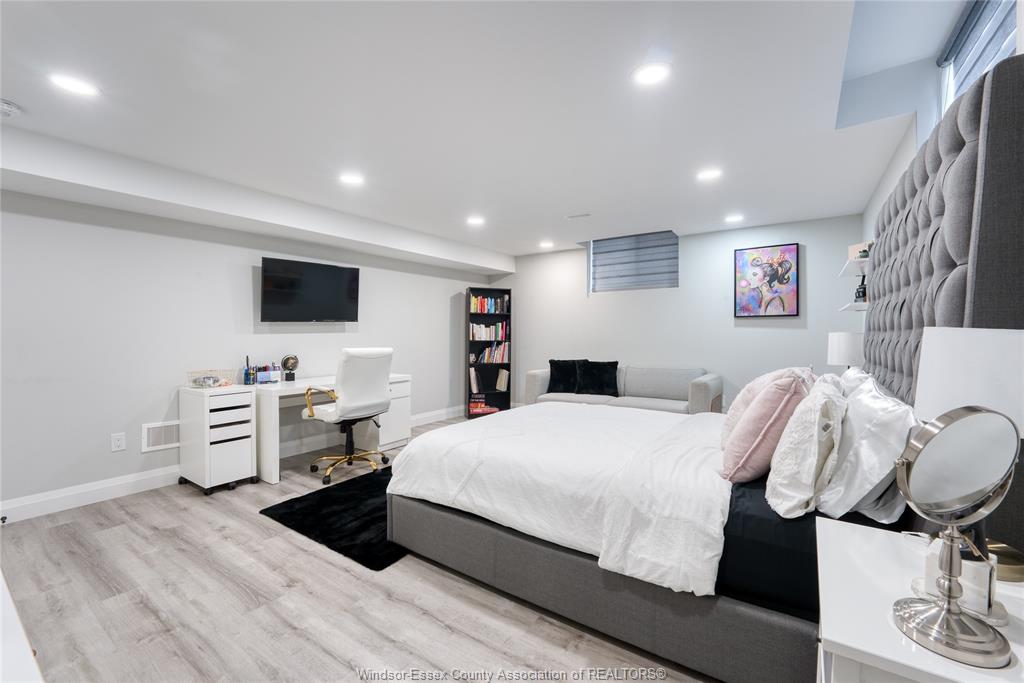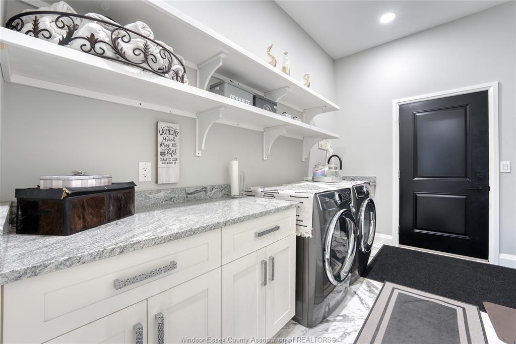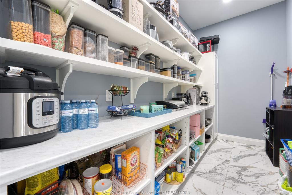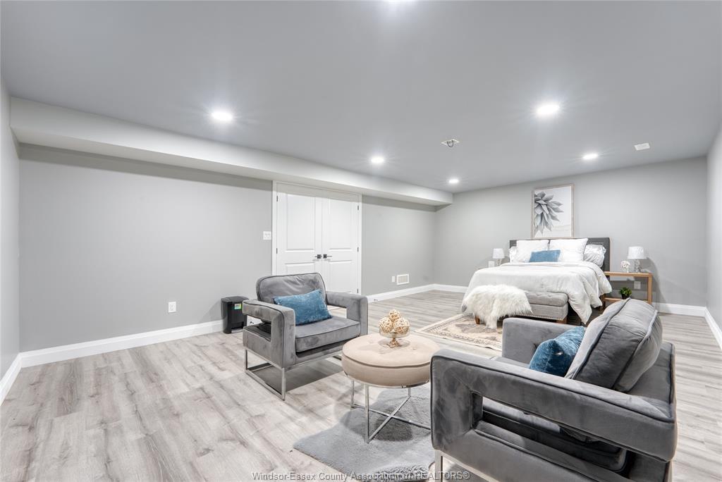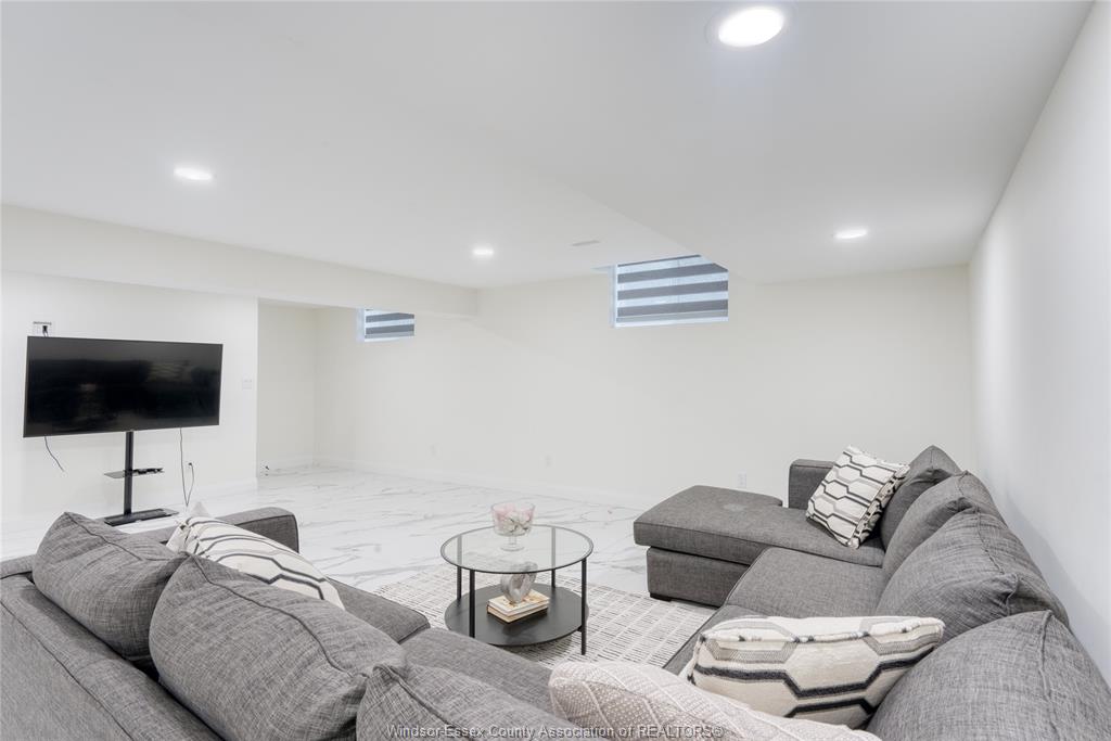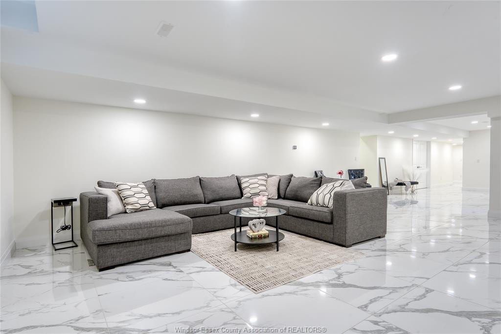 • Lower level features an in-law suite, theatre room, and roughed-in kitchen.