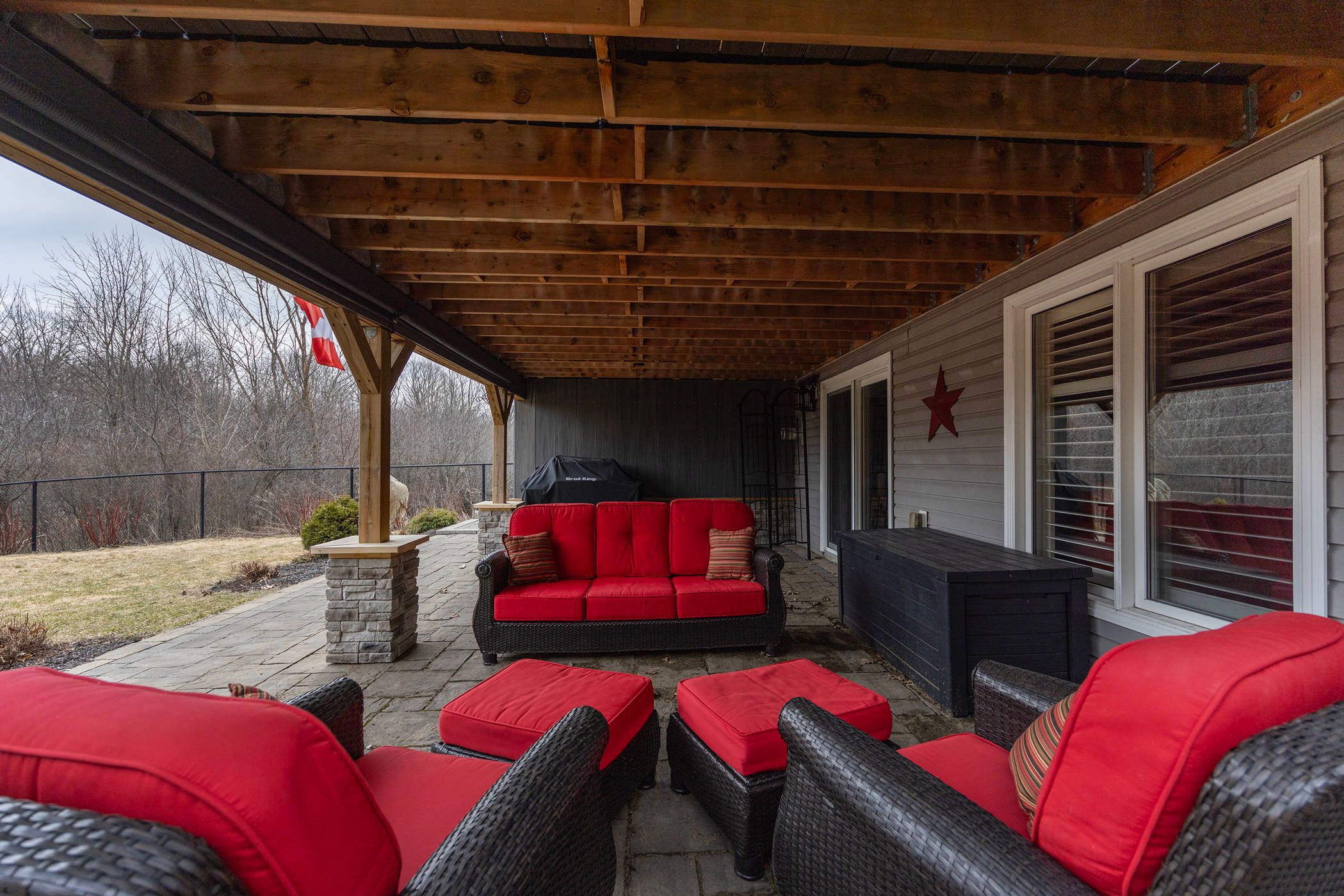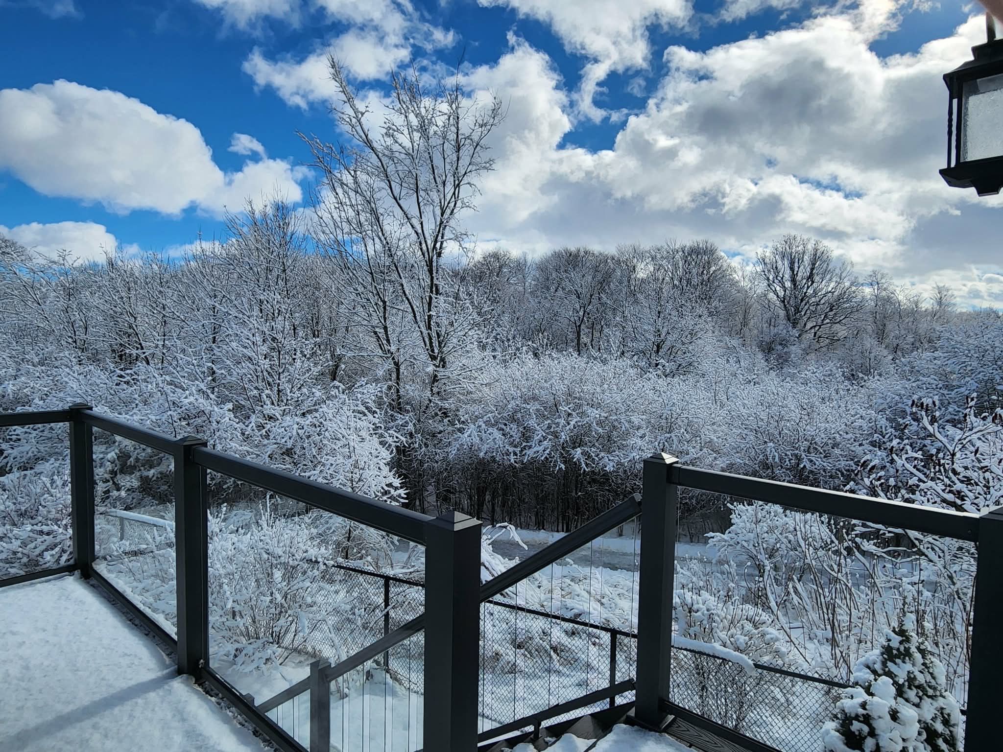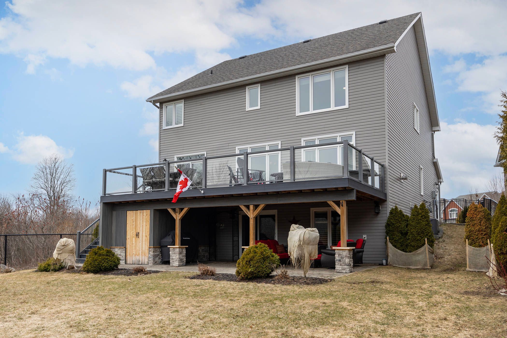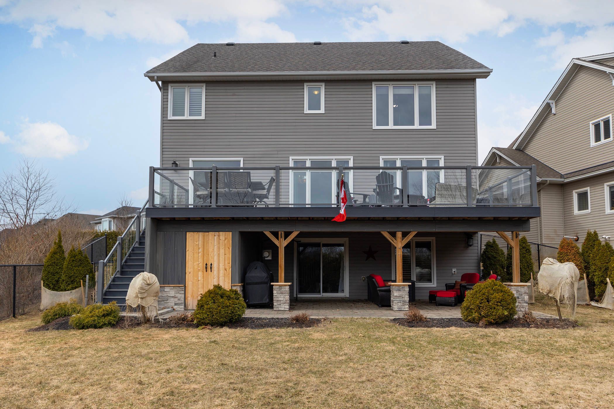 • Newly constructed elevated deck overlooking a private, fenced backyard.