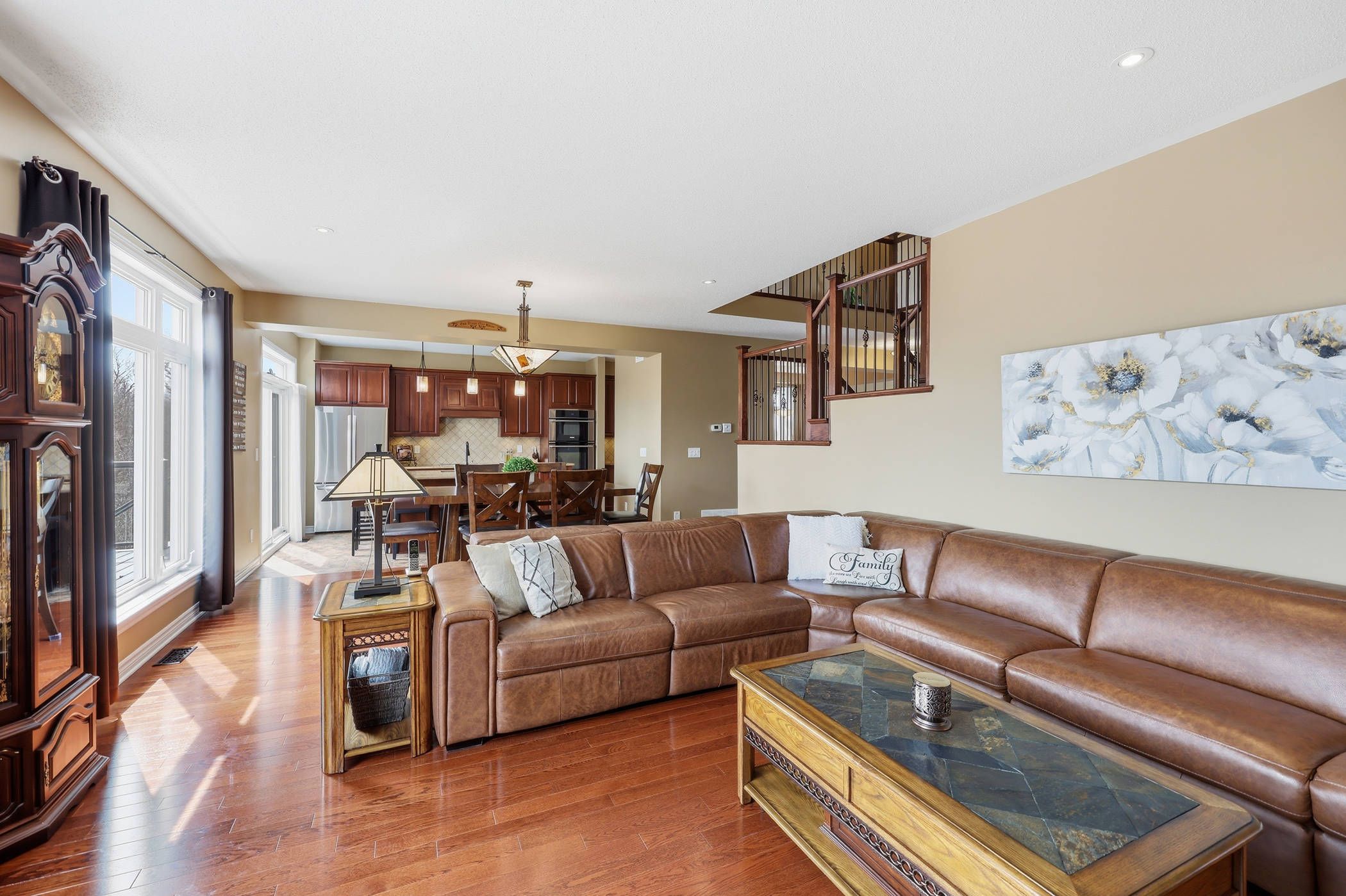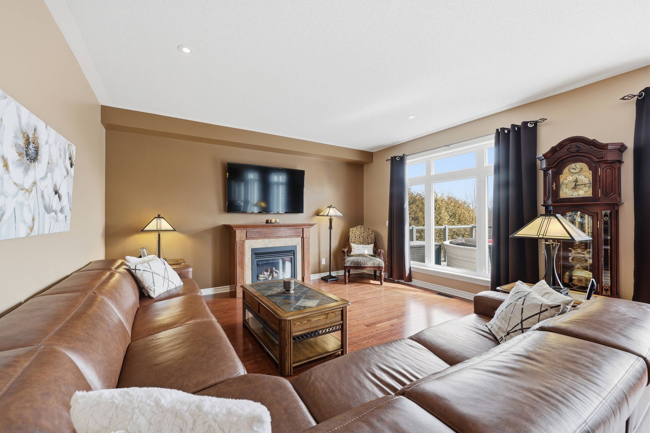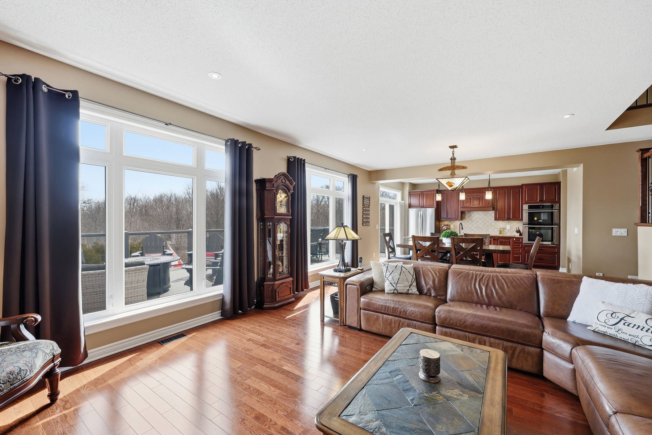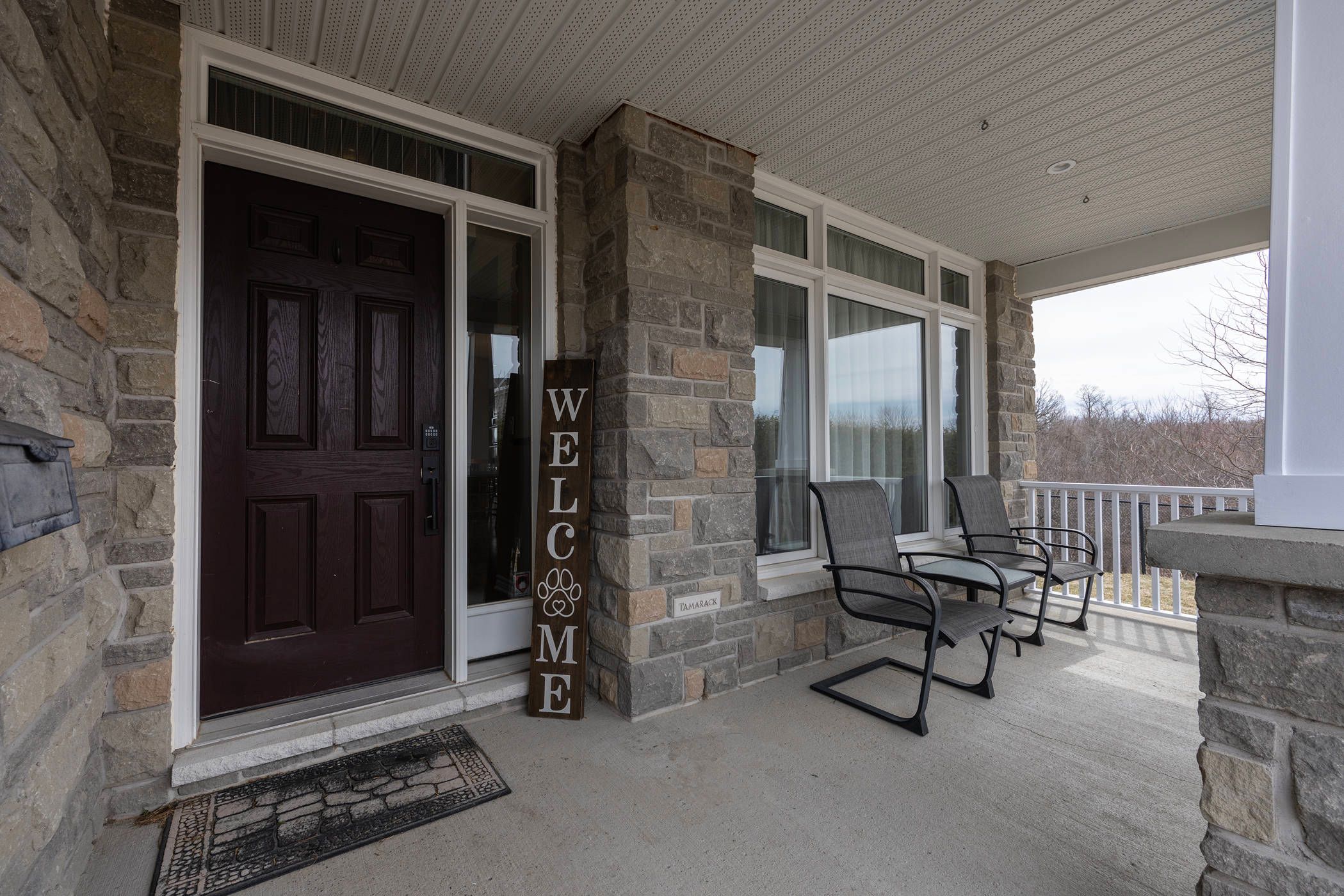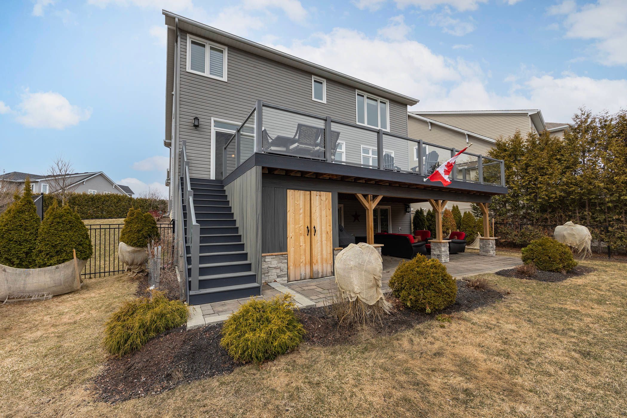 This exclusive 2,905 sq ft tamarack mayfair model located in a cul-de-sac and set on a premium deep private lot backing onto butternut creek, is offered for sale for the first time. Homes of this calibre in such a breathtaking setting are rarely available-complete with a walk-out basement and direct access to scenic trails and walking paths. A covered front porch welcomes you into a bright, inviting interior featuring 9 ft ceilings and an abundance of natural light streaming through transom windows, drawing your eye through to the walk-out patio doors. Step outside to a newly constructed 15 x 36 ft elevated composite deck overlooking a fully fenced backyard oasis framed by mature trees. The main level is designed for both comfort and entertaining, offering a formal living and dining area alongside a beautifully appointed kitchen with extensive storage and a convenient butler's pantry. A secondary dining space flows seamlessly into the spacious family room, highlighted by a cozy gas fireplace. A powder room and a generous mudroom with garage access complete this level. Upstairs, hardwood floors lead to a thoughtfully designed layout featuring a serene primary suite with views of the conservation area, a walk-in closet, and an elegant 5-piece ensuite with soaker tub and separate walk-in shower. Three additional spacious bedrooms - all with walk-in closets - a full bath, and a convenient laundry room with sink provide ideal family living. The fully finished walk-out basement impresses with a custom three-sided gas fireplace and a wet bar rough-in with electrical. With a fourth bathroom already in place, this level offers excellent potential for an in-law suite. Enjoy direct access to a covered patio, along with a cleverly designed enclosed storage area beneath the deck. Ideally located with easy access to hwy 401, cfb kingston, schools, downtown, and a wide range of amenities, this meticulously maintained home is truly exceptional and ready to impress.
