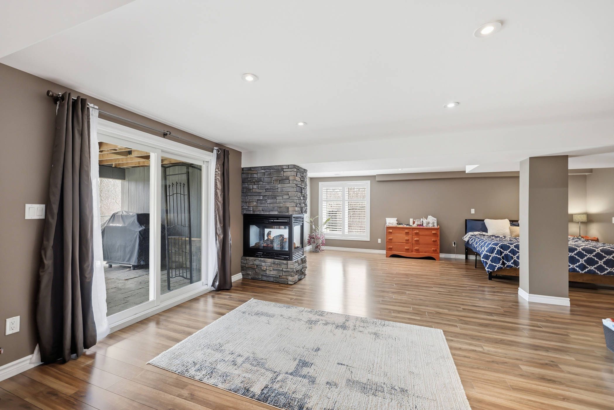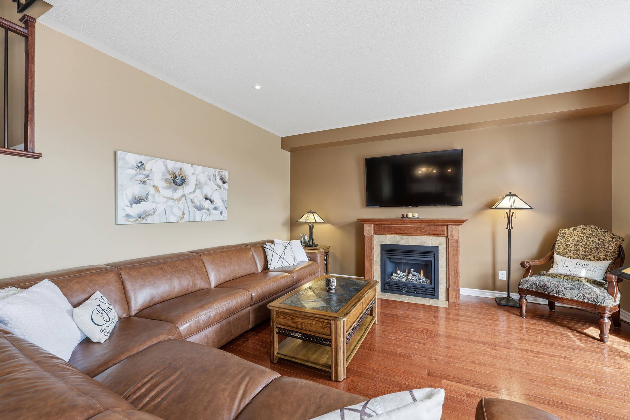 • Spacious family-friendly layout with multiple living areas and a cozy fireplace.