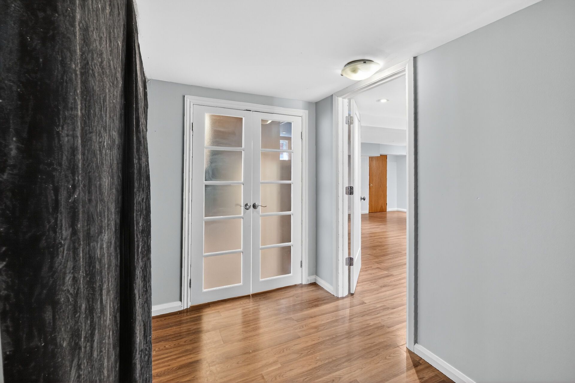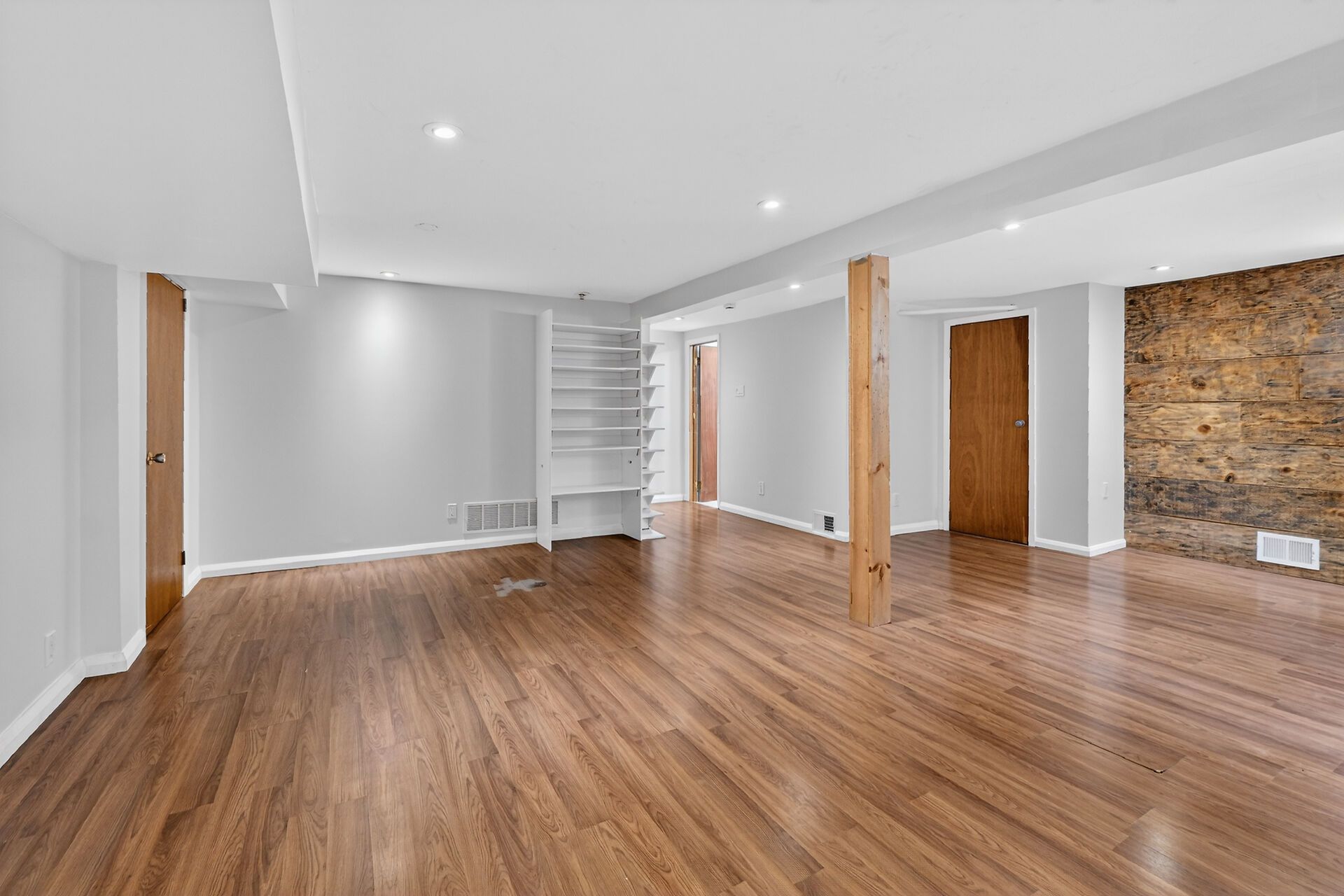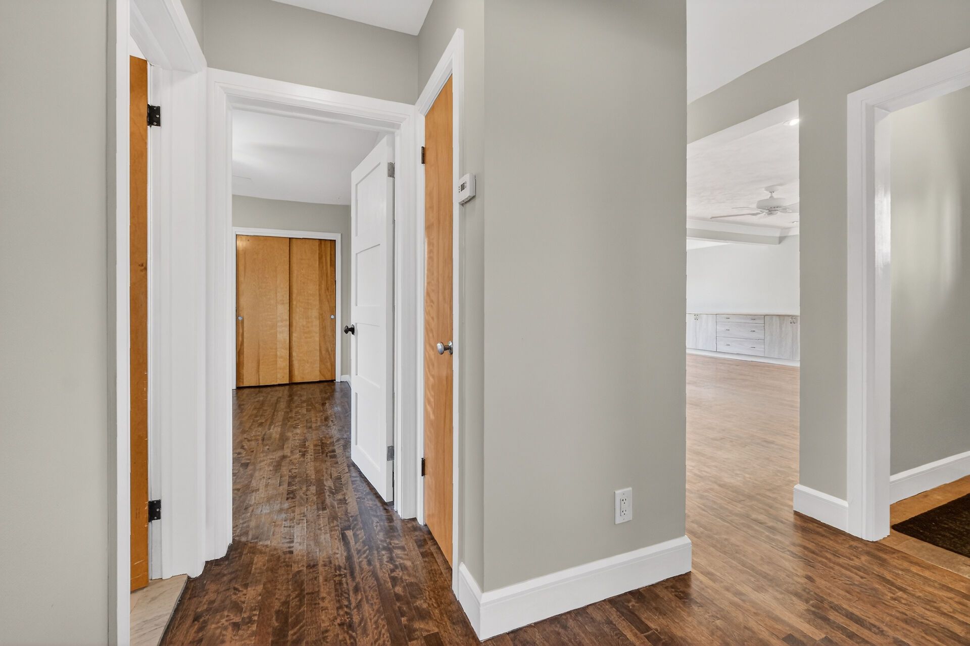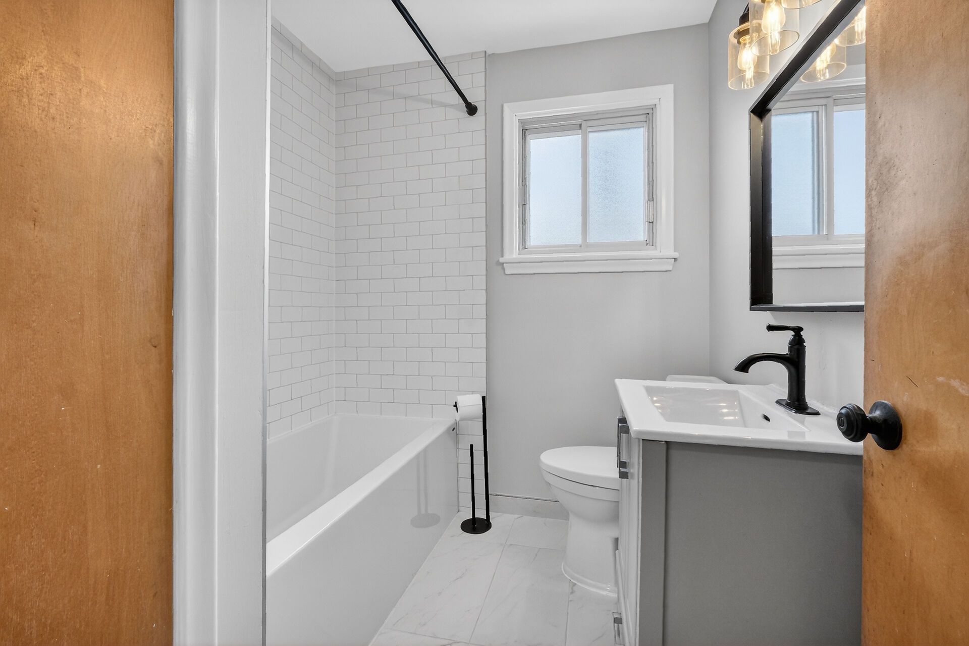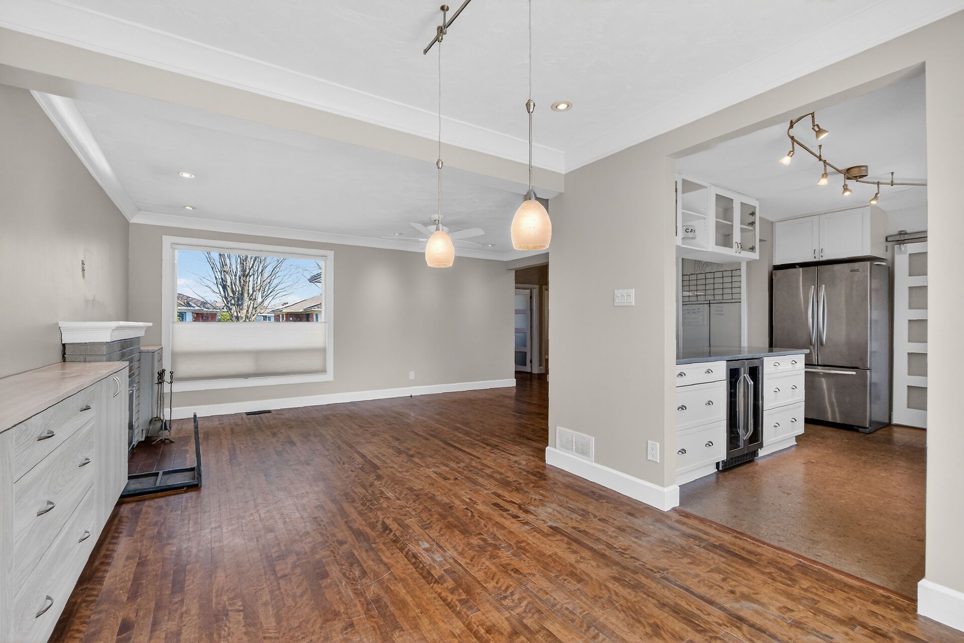 • Renovated kitchen with stainless steel appliances and a breakfast bar.