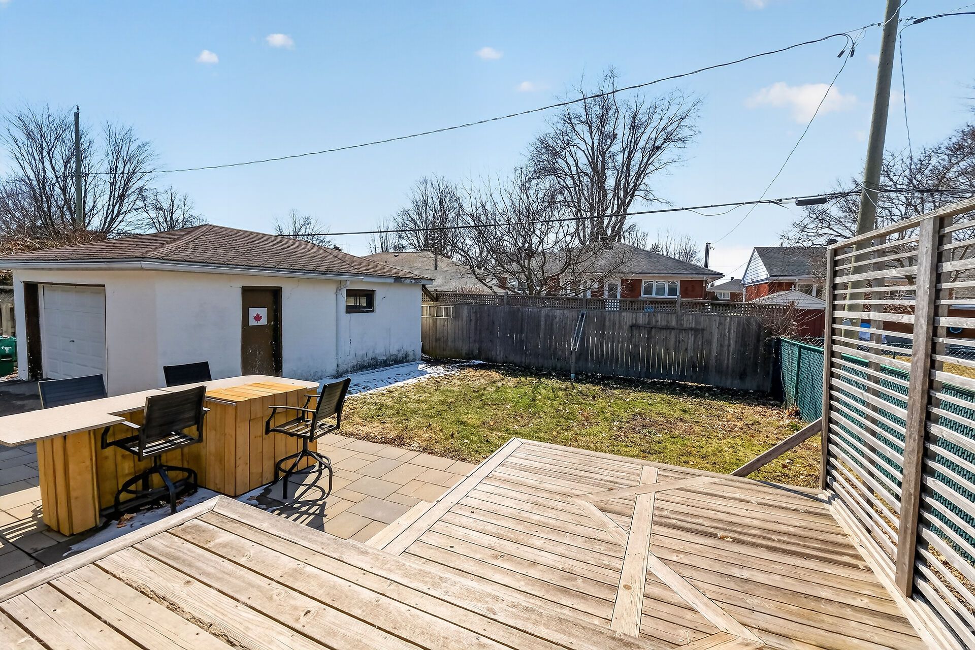 • Large lot with a garage, driveway, and backyard deck for outdoor enjoyment.
