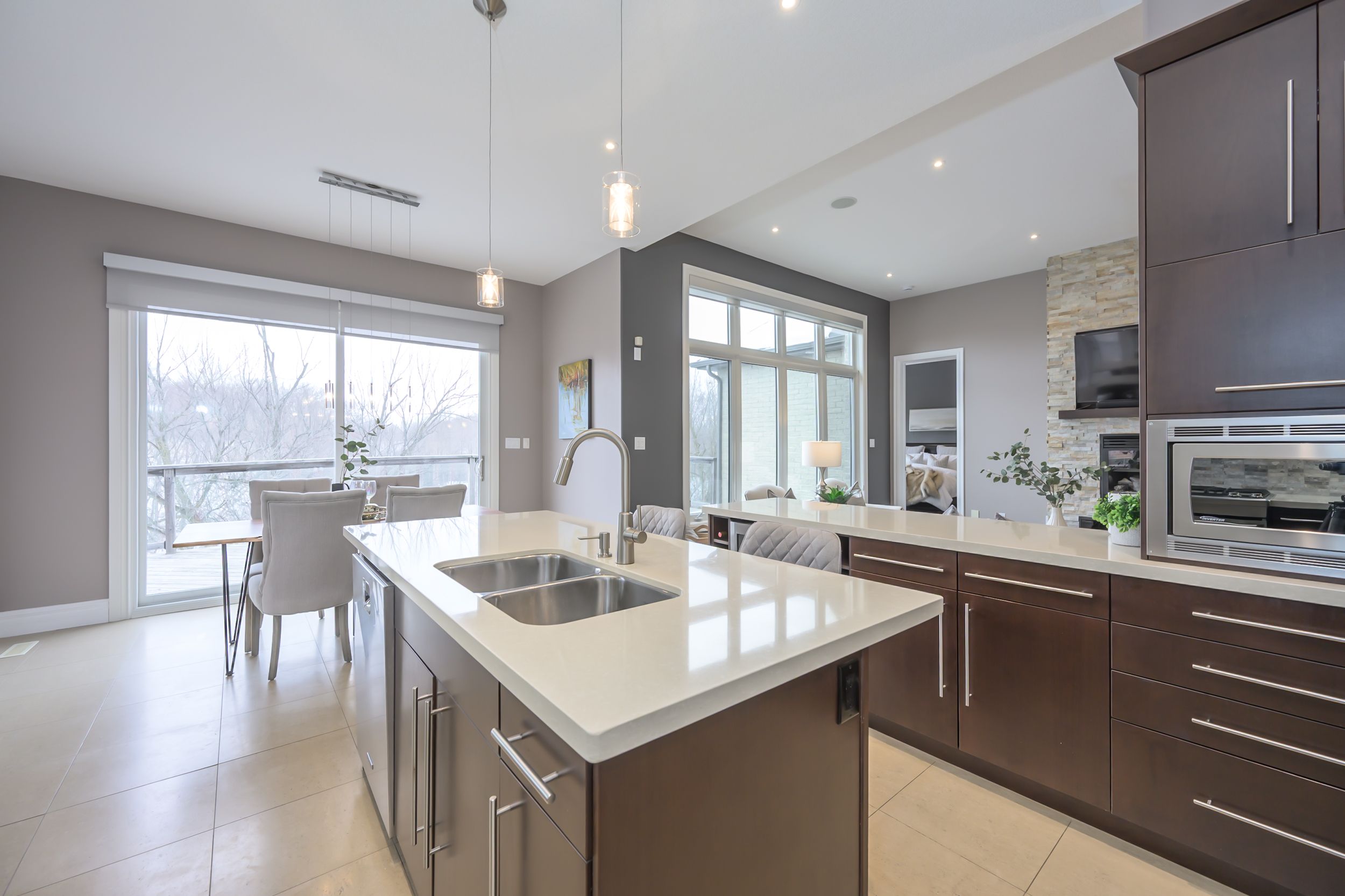 Set in one of london's most coveted executive neighbourhoods, this exceptional home is the perfect blend enjoying a setting defined by mature trees and a lovely residential atmosphere. Tucked away, the location offers seamless access to prized schools, western university, university hospital, springbank park, golf courses, trails, shopping and dining, making it an ideal balance of lifestyle, convenience, and long-term value. If you're looking for one-floor living in true move-in condition, this is it. From the moment you arrive, the concrete drive and stucco-and-stone exterior signal that something special awaits. A generous foyer draws your eye through the home to the treed backdrop beyond. Vaulted ceilings, crown mouldings, and extensive hardwood flooring elevate this home. The stunning great room features a fireplace, oversized windows and serene views of the trees, flowing seamlessly into the open-concept kitchen. Designed for both everyday living and entertaining, the kitchen is loaded with cabinetry and counter space, an island, stainless appliances and a large dining area overlooking the private yard. Three bedrooms on the main floor make this home ideal for families or empty nesters alike. The spacious primary offers a beautiful ensuite with dual sinks and separate shower, while the additional bedrooms are served by a second full bath. A large main-floor laundry/mudroom boasts built-in cabinetry and ample storage. The bright walkout lower is flooded with natural light and offers a large family room with fireplace, games area, snack/beverage cabinetry, two additional bedrooms, a bathroom, and abundant storage, perfect for guests or multi-generational living. The expansive deck and lower pressed concrete patio offers dual private outlooks to watch the sunset, and the backyard green space is perfect for pets and the avid gardener. This lovely home delivers an ideal floor plan on a stunning lot in a standout location in a neighbourhood consistently in demand.