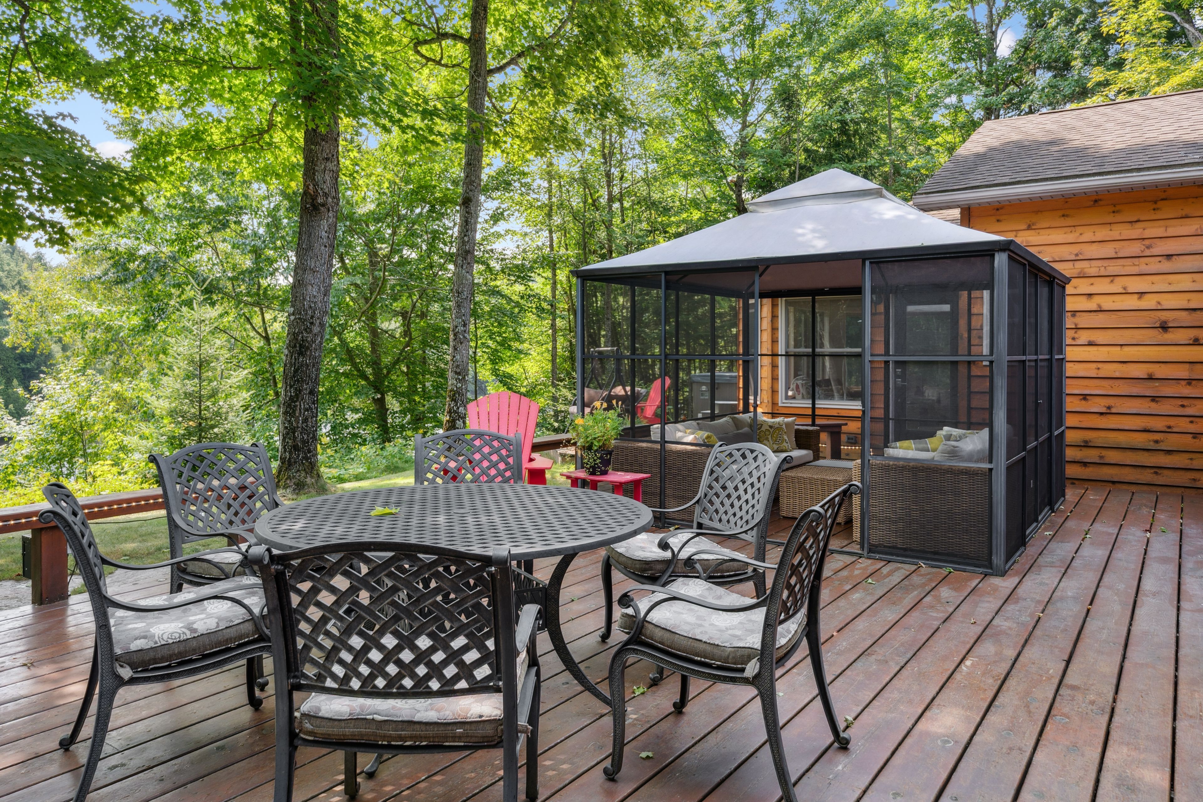 • Primary suite with ensuite, sunroom, and outdoor hot tub for relaxation.