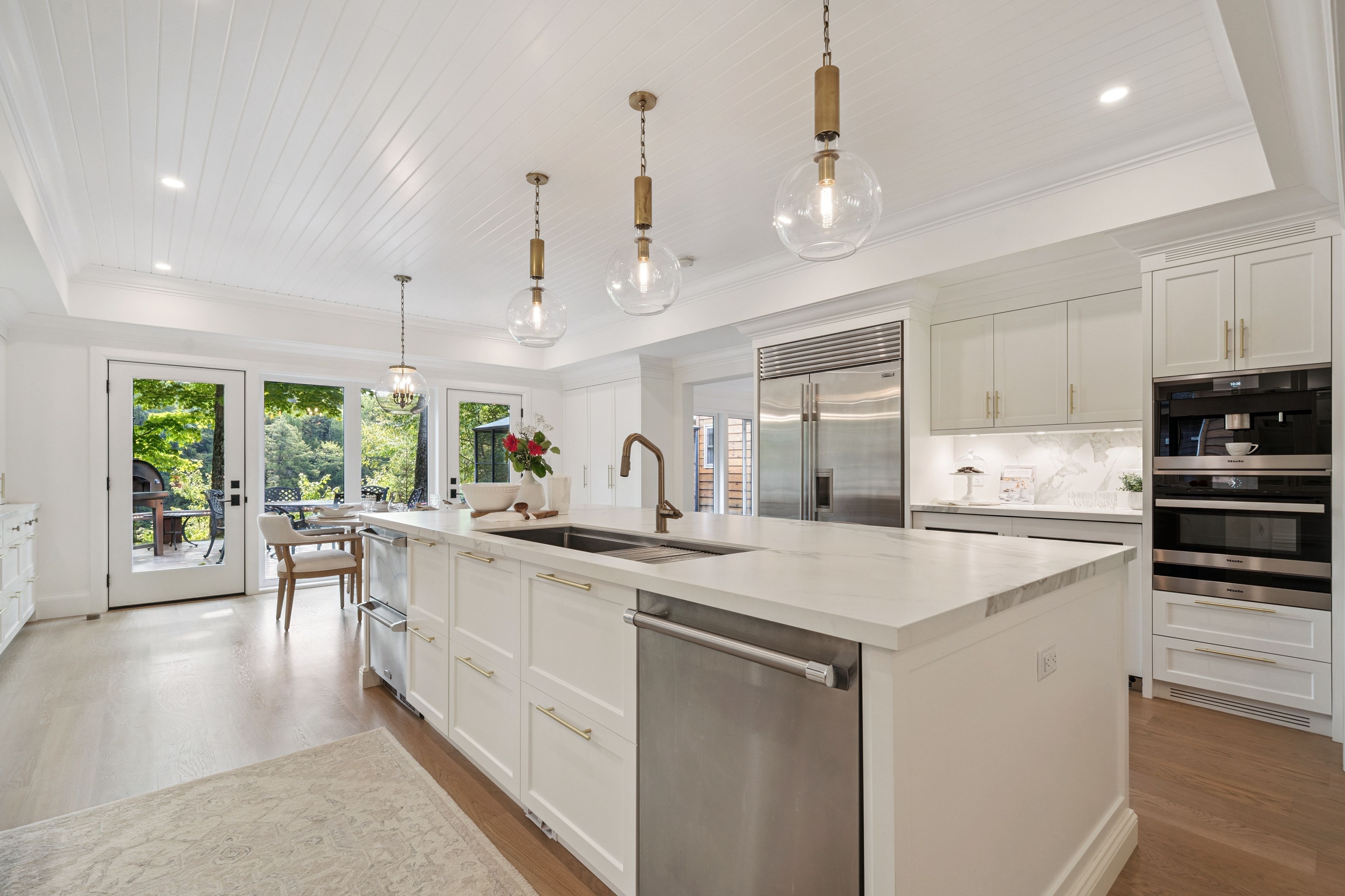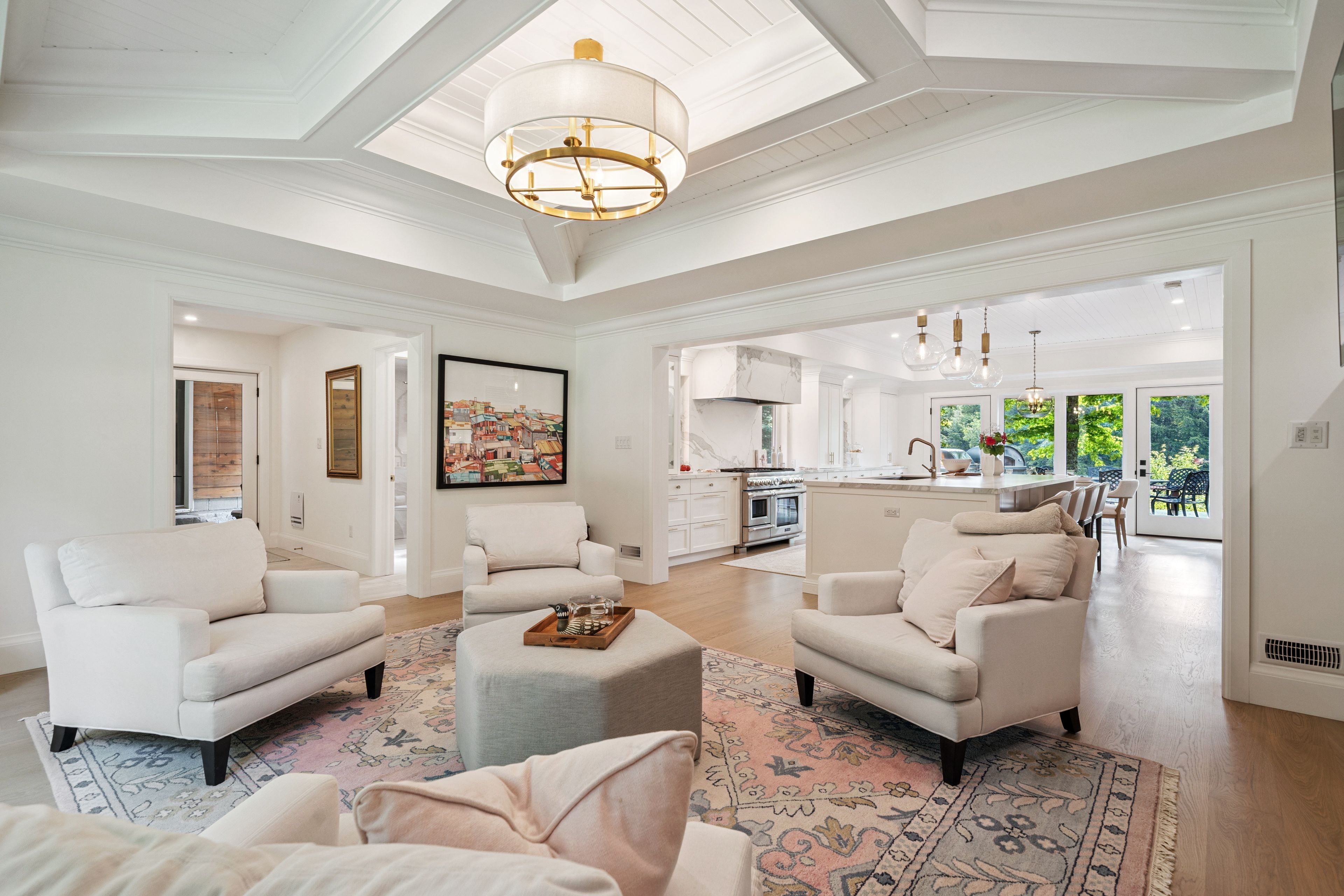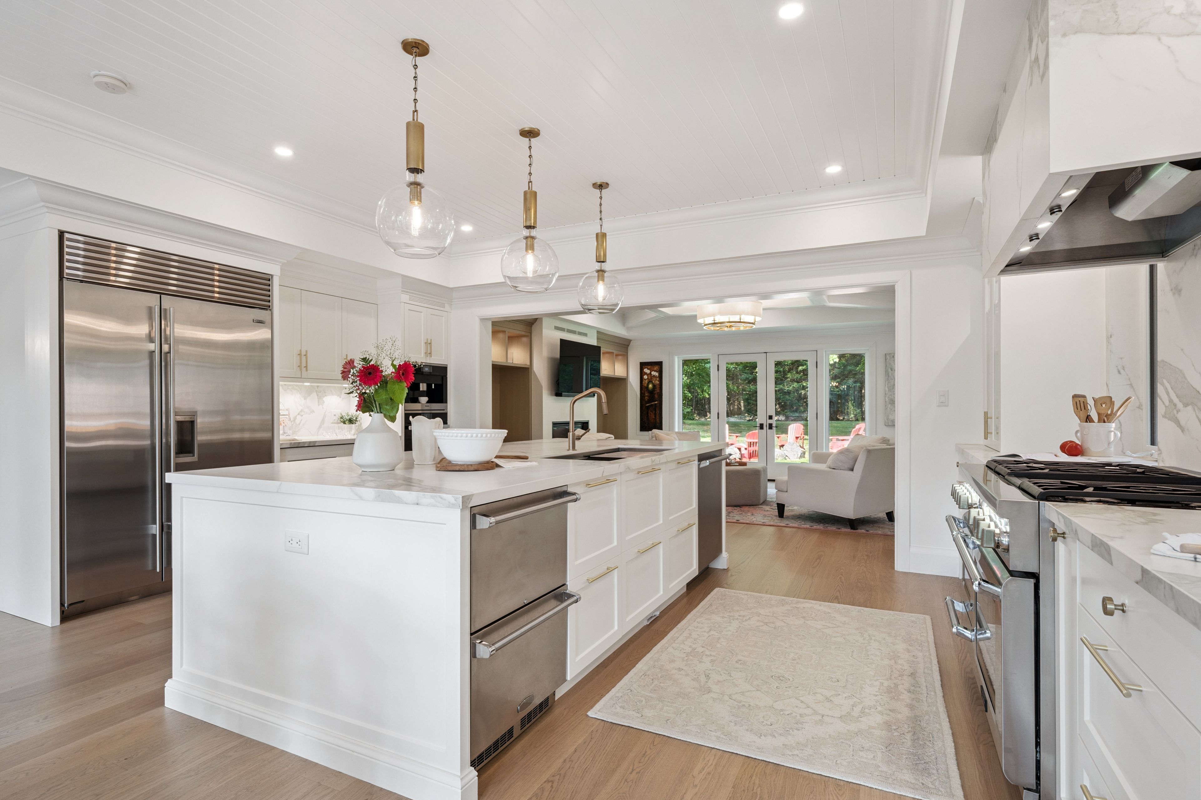 • Multiple living areas, including a kitchen with high-end appliances and large island.