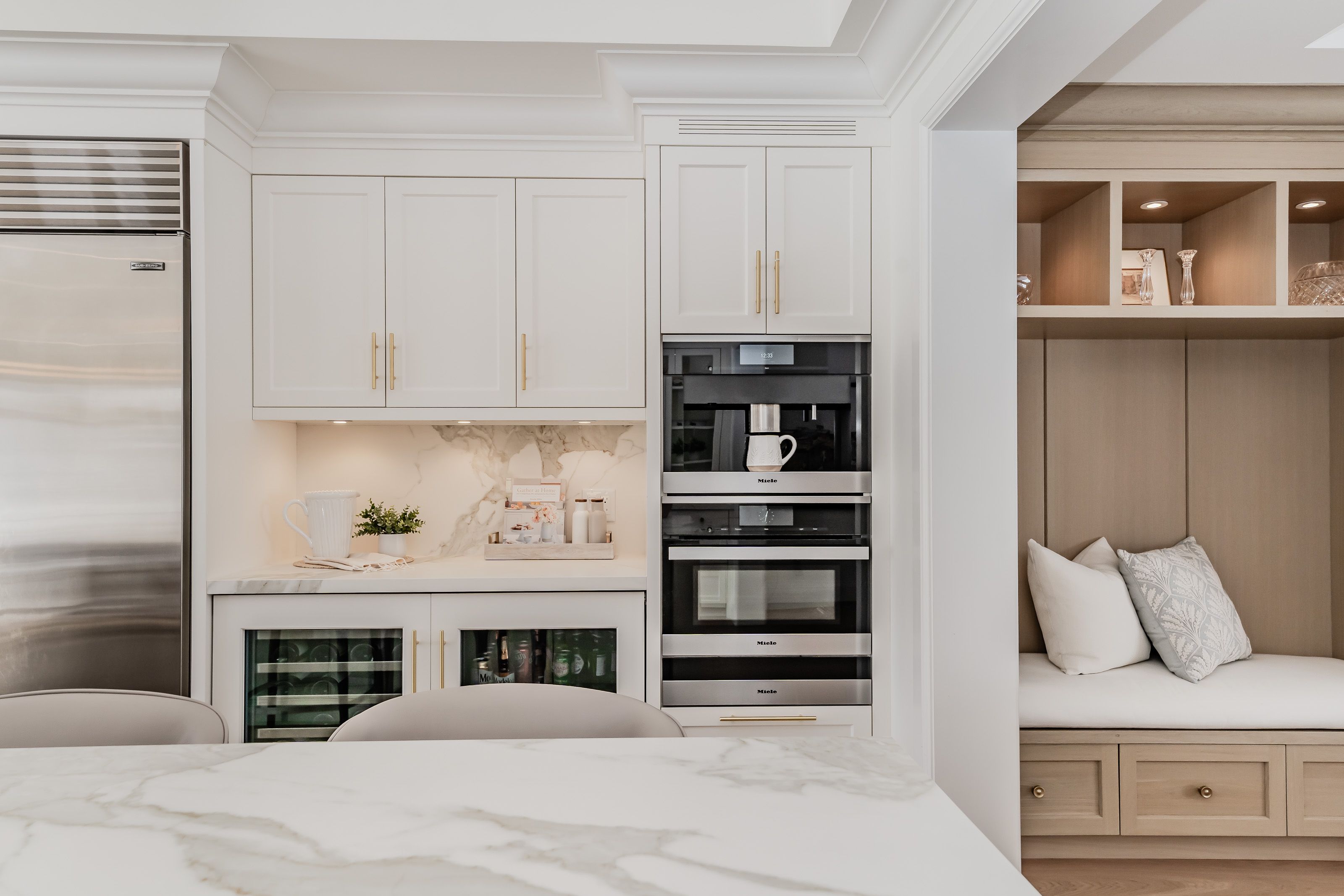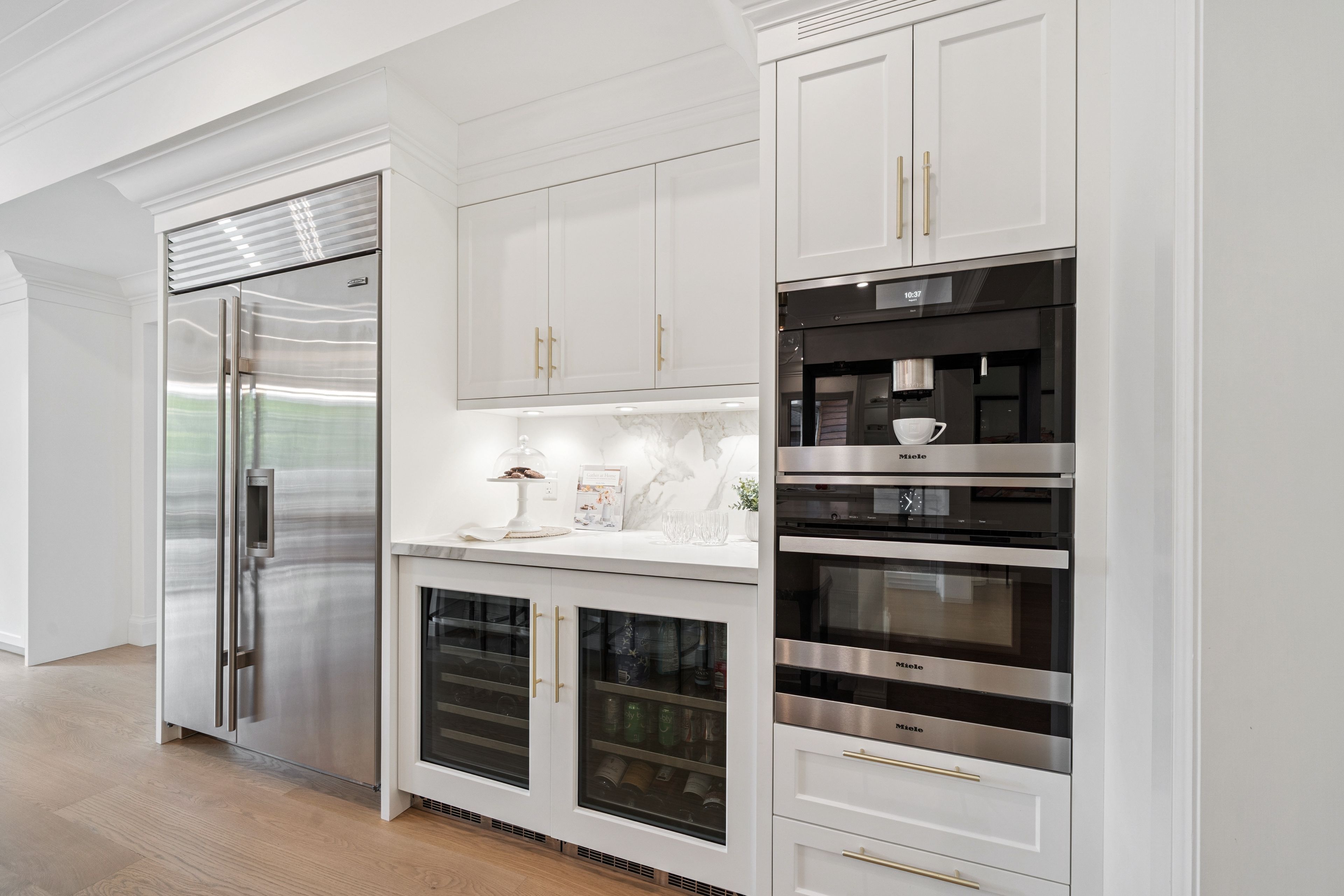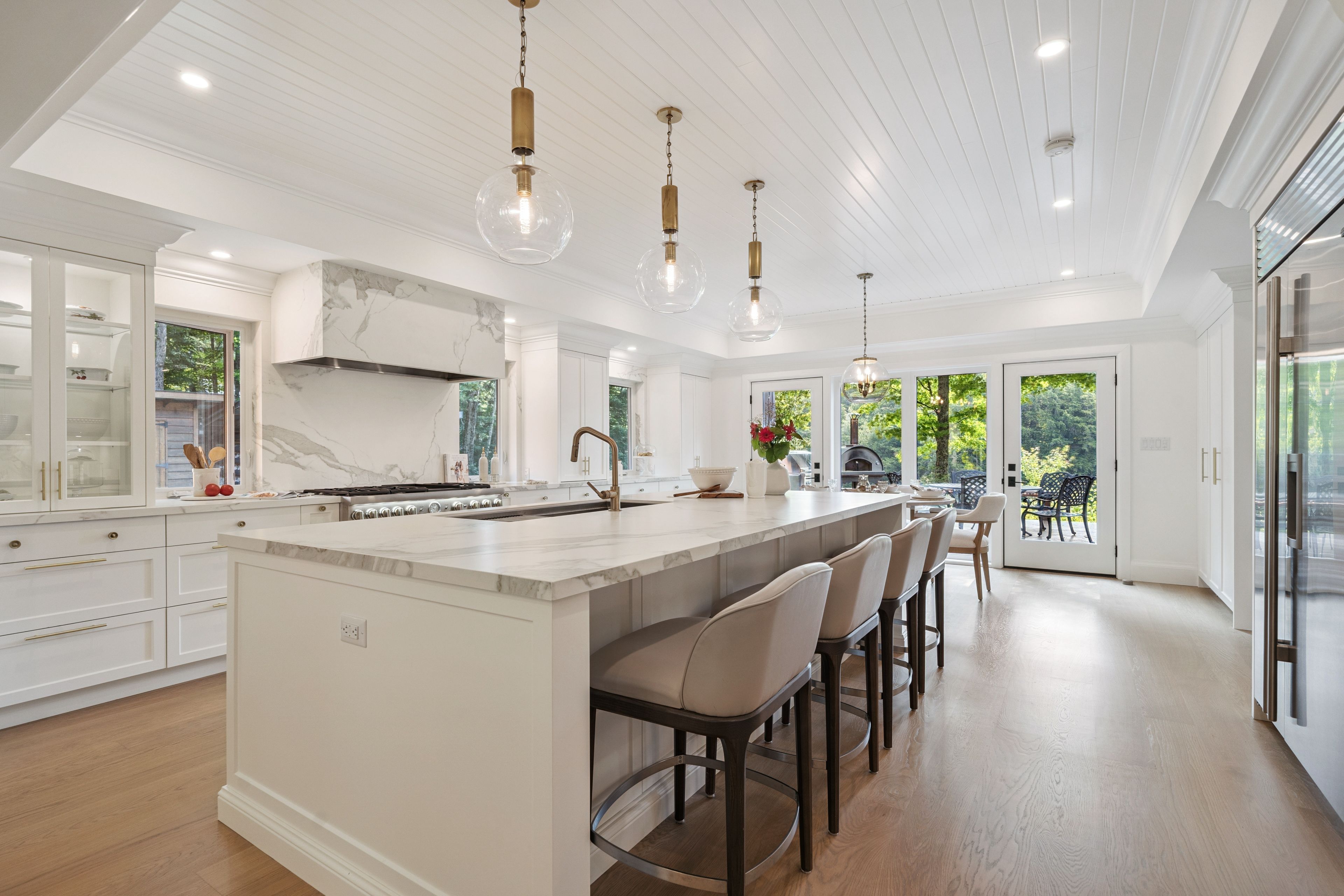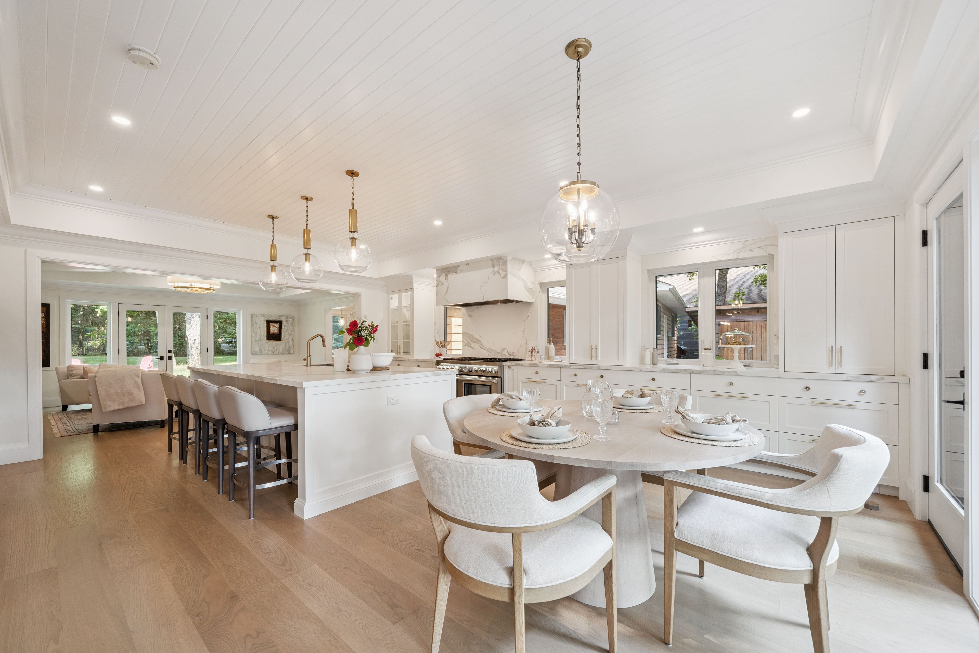 • Multiple living areas, including a kitchen with high-end appliances and large island.