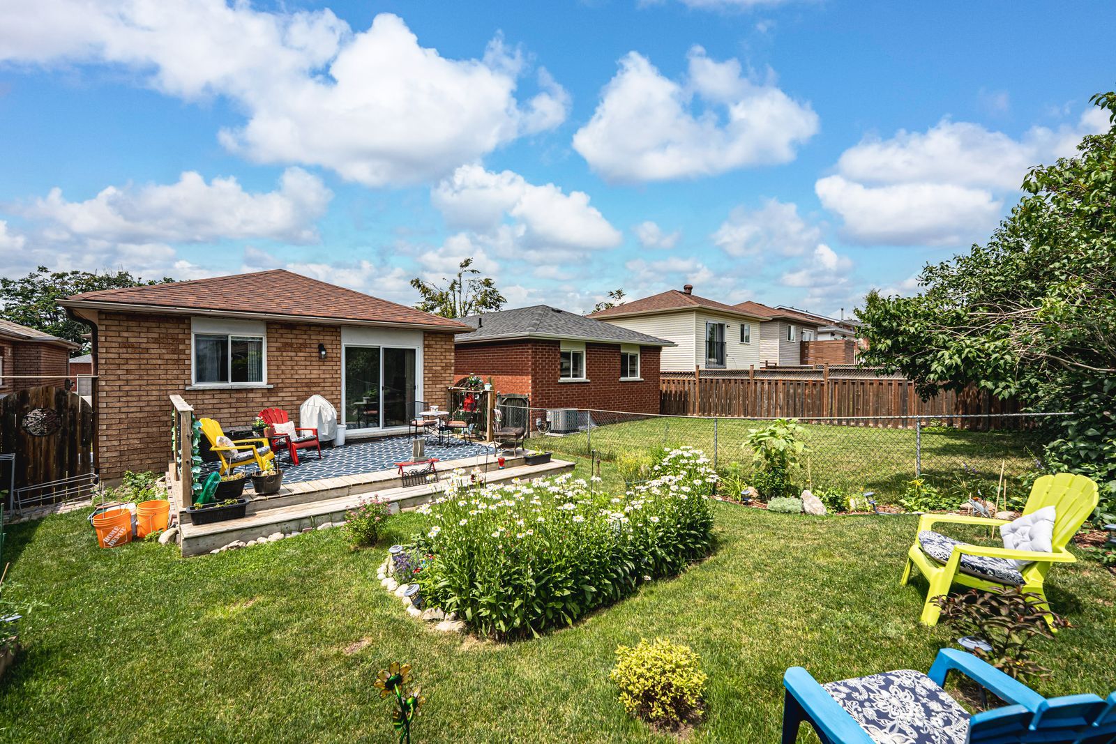 • Beautifully landscaped backyard with perennial gardens and a large deck.