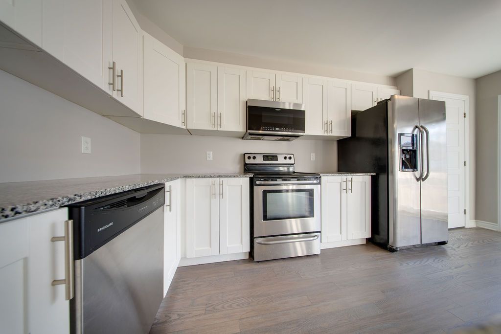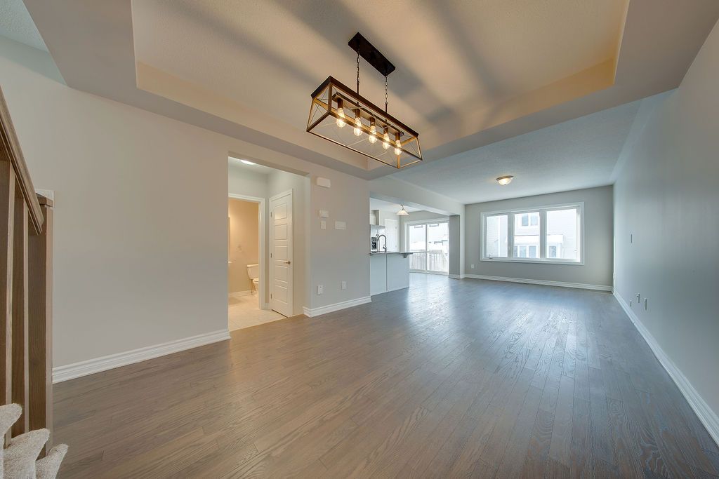 Welcome to the highly sought-after community of monahan landing in kanata! Nestled on a quiet cul-de-sac, this beautifully maintained home offers the perfect blend of comfort, style, and convenience. Just minutes to schools, parks, shopping, and steps to the rideau trail with access to over 100 km of scenic walking paths, including the trans canada trail. Step inside to a bright, inviting foyer with a functional mudroom to keep things organized. The eat-in kitchen is a true showstopper, featuring a wrap-around island with breakfast bar, stainless steel appliances, quartz countertops, and a spacious pantry, ideal for everyday living and entertaining alike. The open-concept living and dining area is flooded with natural light and showcases rich hardwood flooring, creating a warm, welcoming space for hosting guests or cozy movie nights. Upstairs, you'll find a stunning primary suite complete with a walk-in closet and spa-inspired ensuite, along with two additional spacious bedrooms and a modern 4-piece main bath. There is also a loft area, perfect for your home office and a convenient laundry room. The fully fenced backyard offers a great outdoor space for summer bbqs, entertaining, or relaxing evenings on the deck. This move-in ready townhome checks all the boxes for families, professionals, and anyone seeking a vibrant community lifestyle in one of kanata's most desirable neighbourhoods.