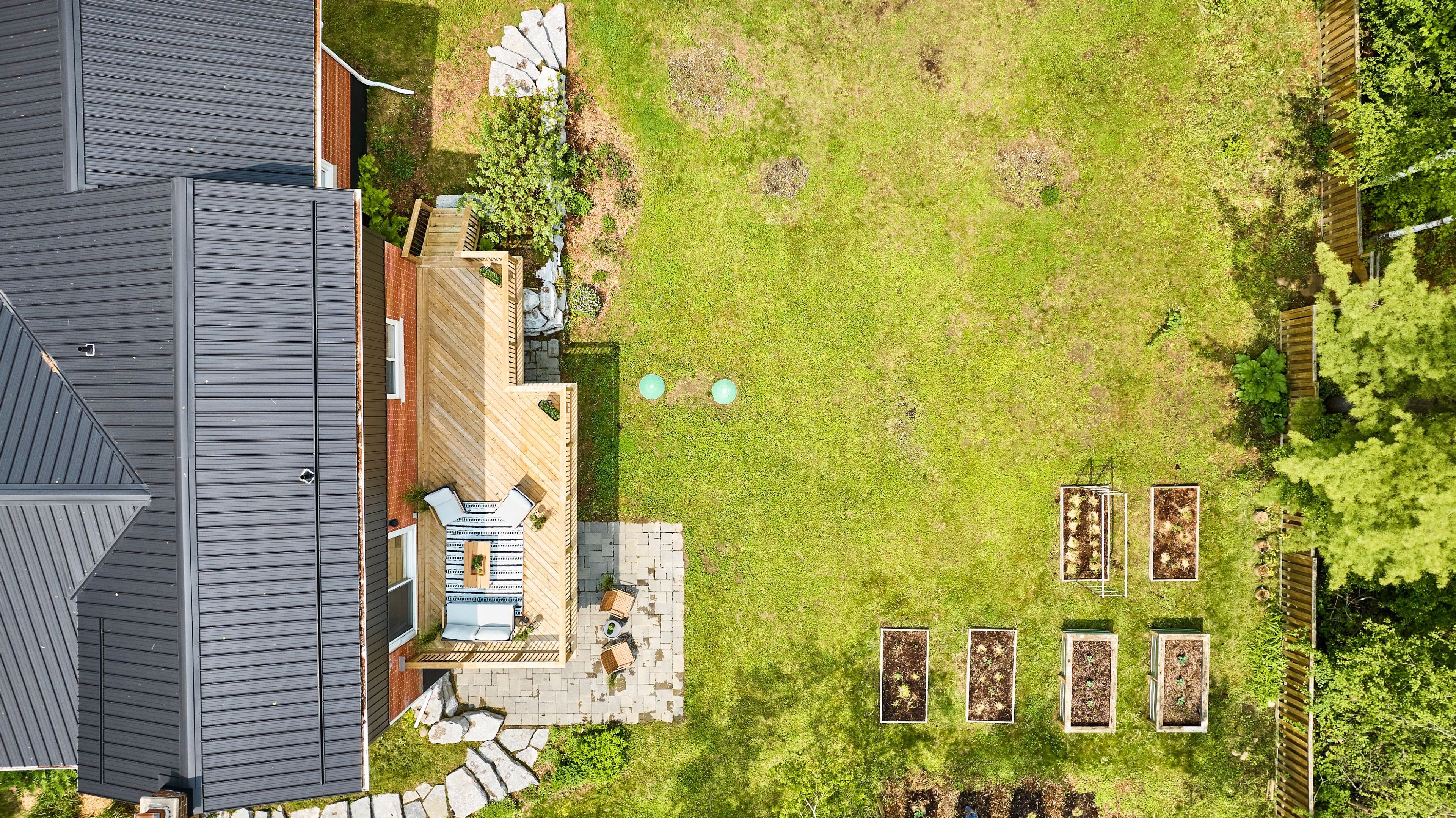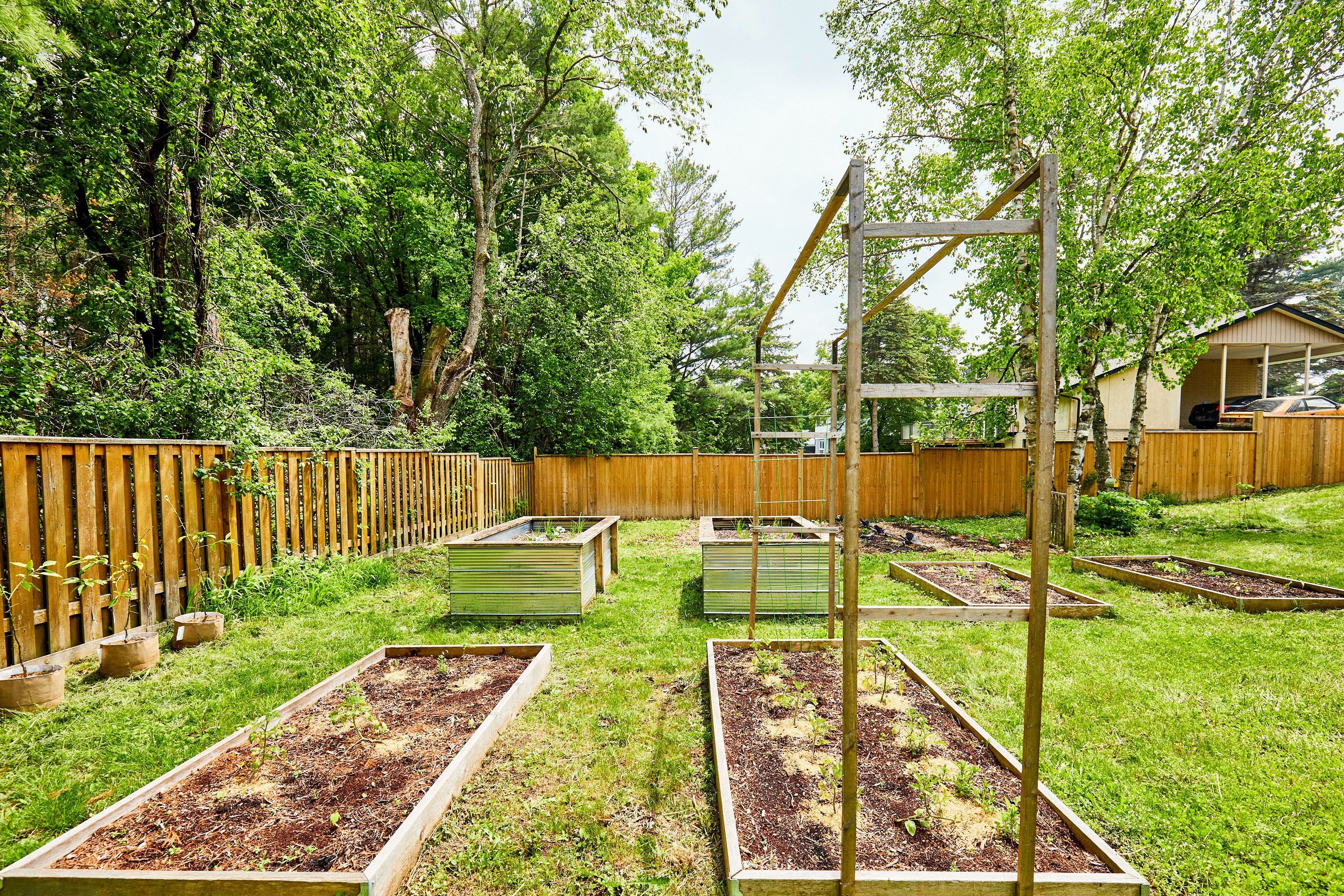 • Generous backyard with a large deck and vegetable garden for entertaining.