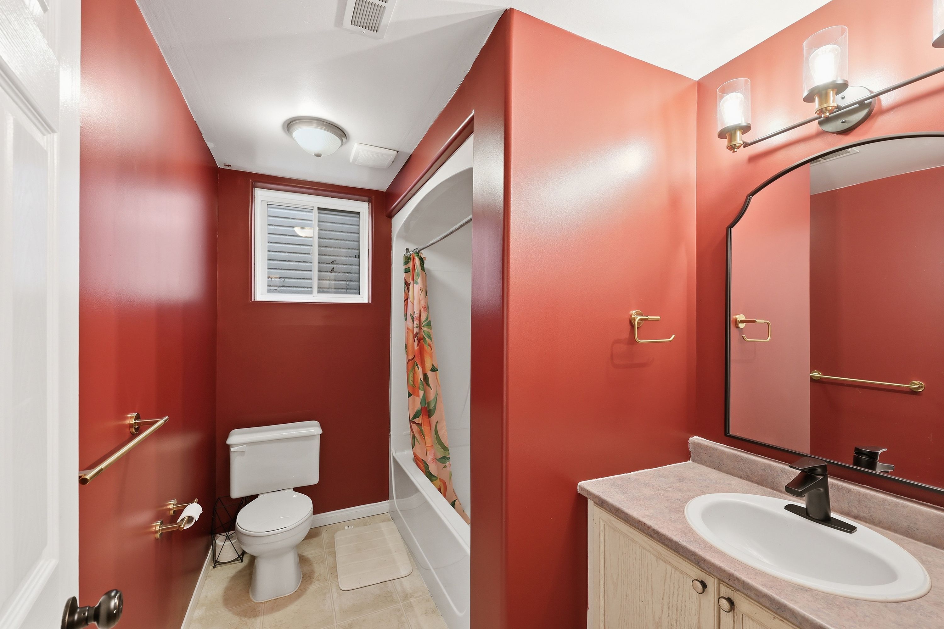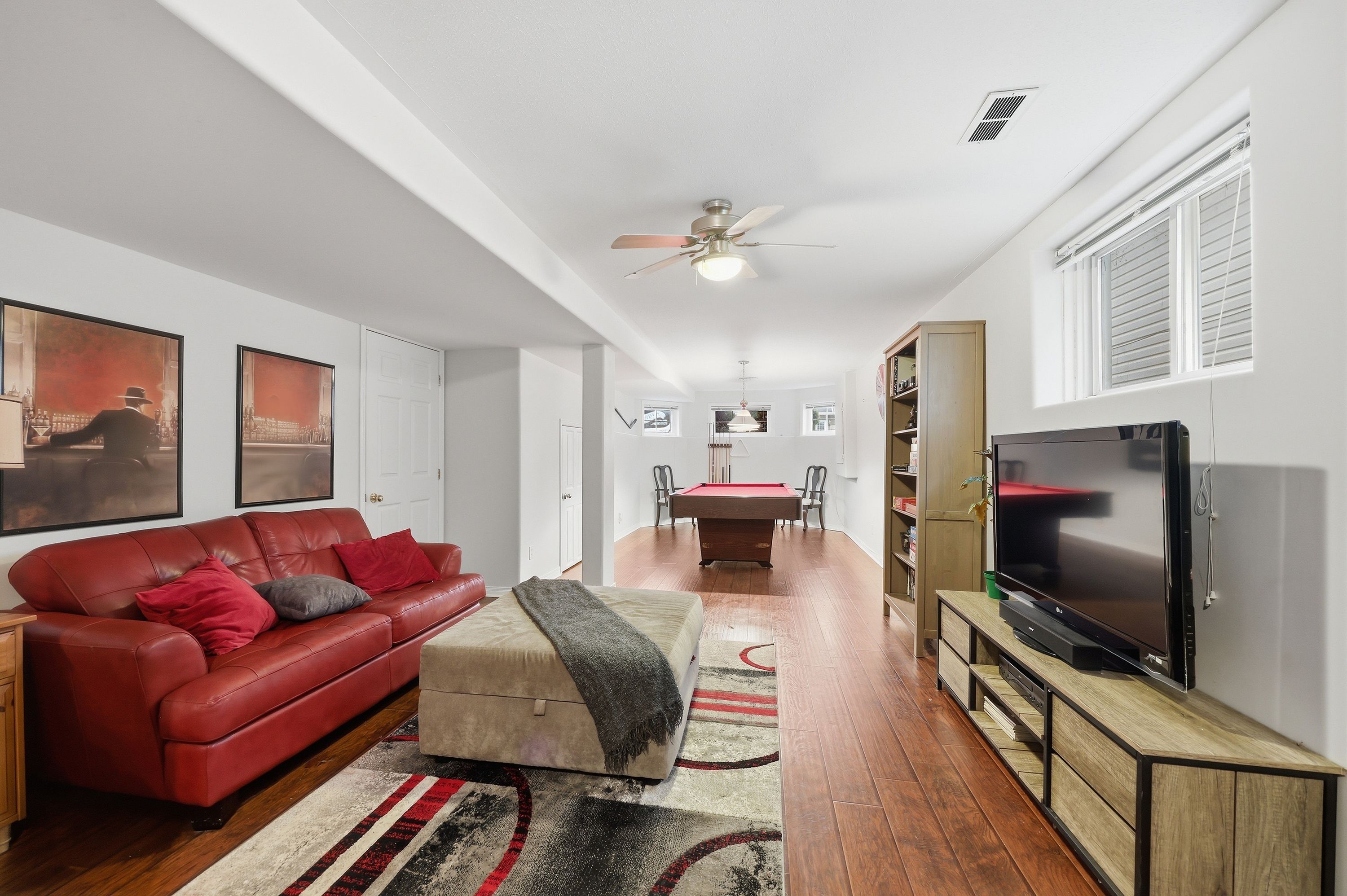 • Finished lower level with gas fireplace, perfect for guests or family activities.