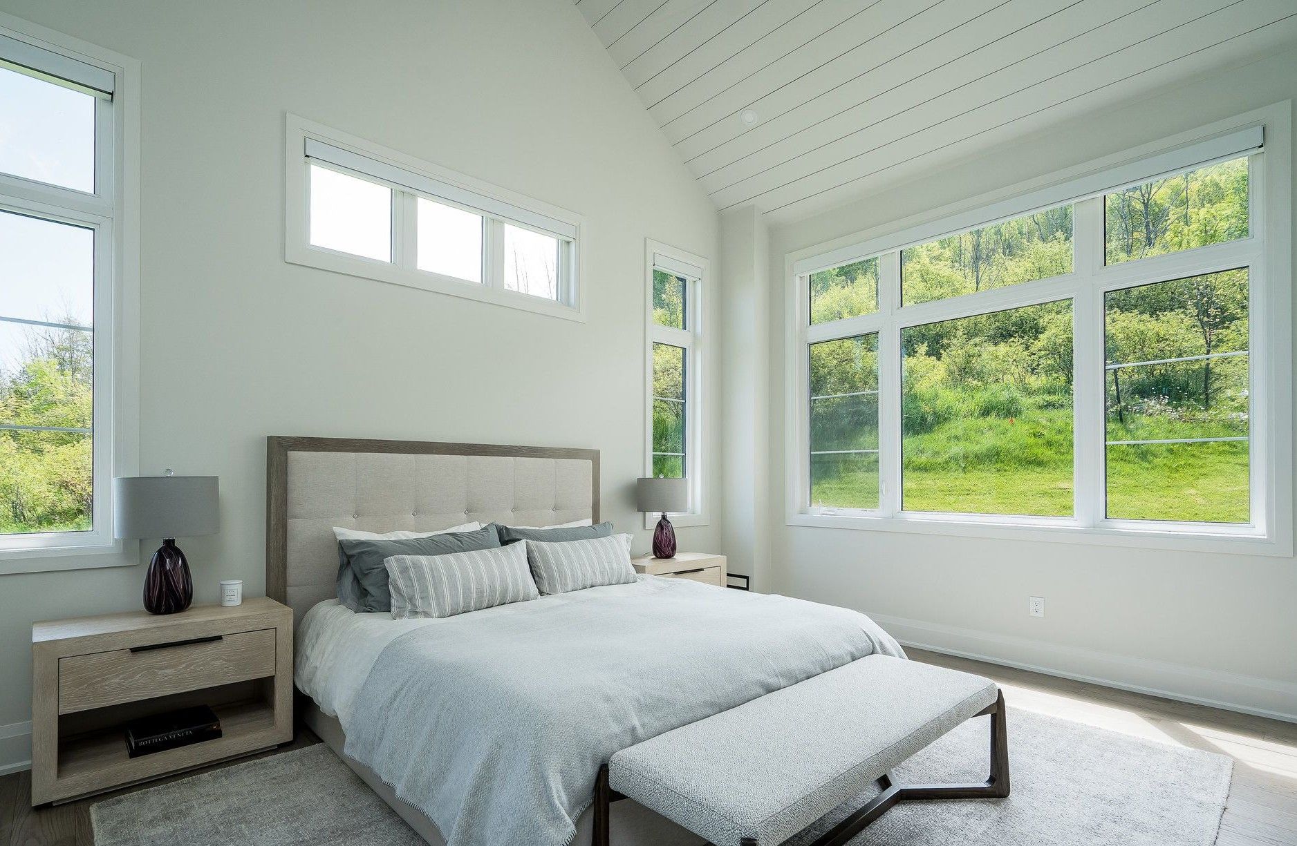 • Primary bedroom offers stunning mountain views through oversized windows.