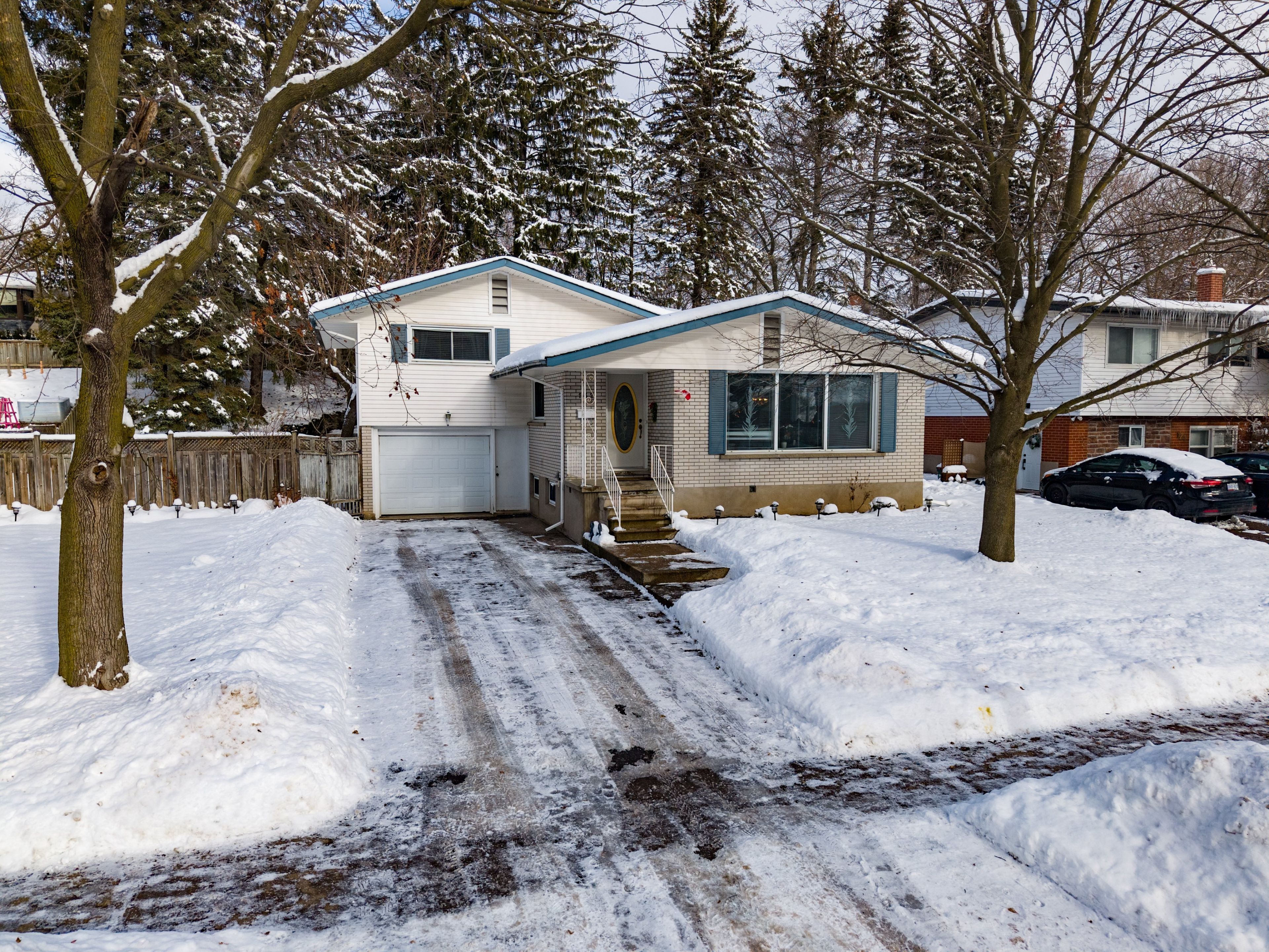 Located in desirable forest hill area of kitchener on an 80 foot wide lot on a tree lined street. Lovingly cared for home with same owner for 48 years. 3 bedrooms plus a main floor den. Deck off main floor den. Primary bedroom with two closets. Kitchen and bathroom both updated over the years. Eat-in kitchen. Furnace and a/c replaced june 2024. Windows replaced over the years (except 1 window in basement). Windows in kitchen, dining room, and front windows are oversized. Plenty of natural light. Ceramic tiled flooring in foyer, kitchen, hallway, and bathroom. Hardwood floors in living/dining areas, bedrooms, and den. Carpet free home except for in a storage room in basement. Plenty of storage space in home. Rec room. Oversized single garage with entry to inside of house and entry from front exterior. Covered front porch. Armour stone retaining wall at back. Ample space in the side yard and back yard. Beautiful quiet mature area.