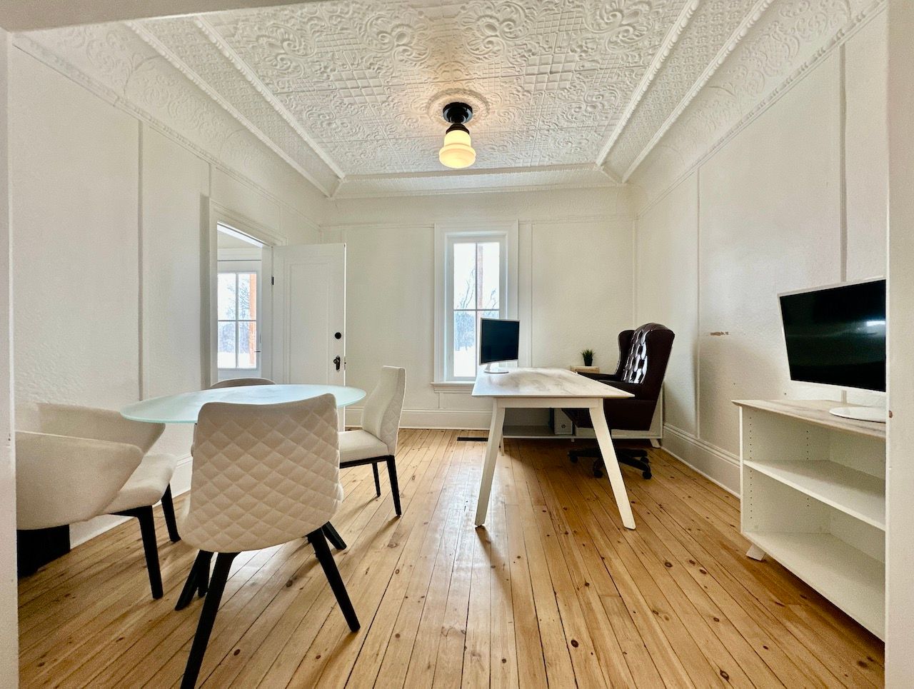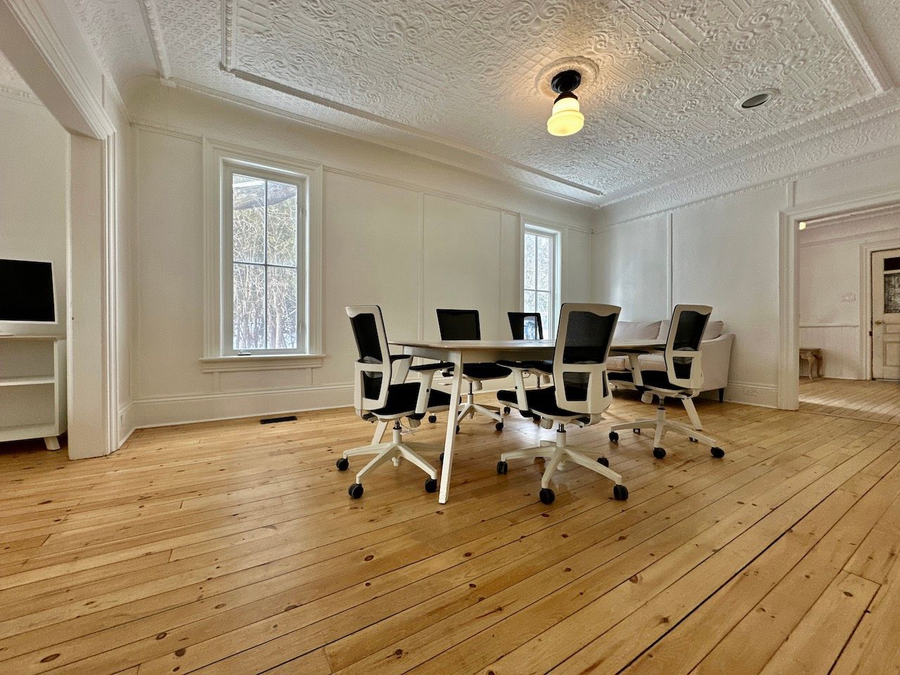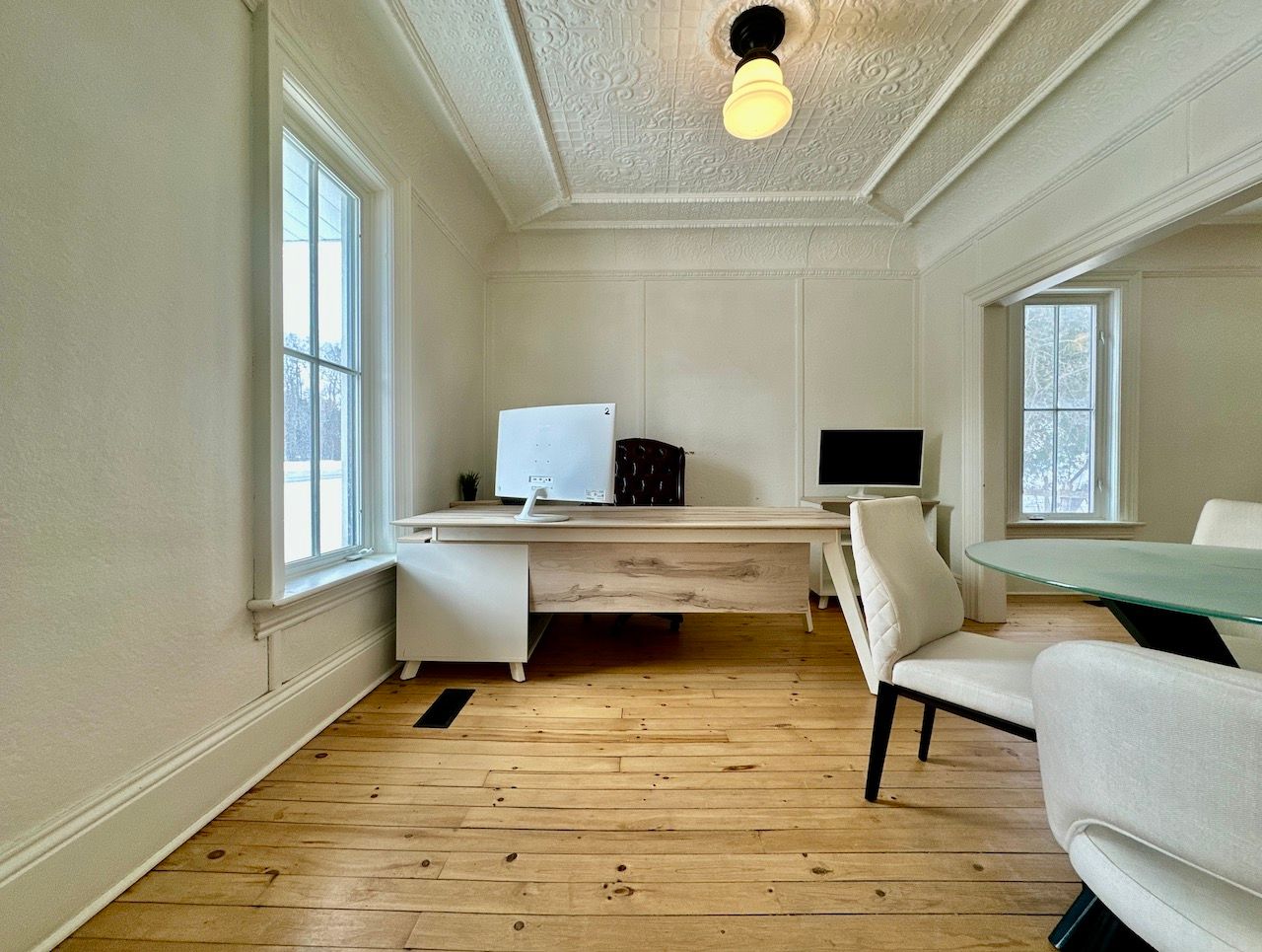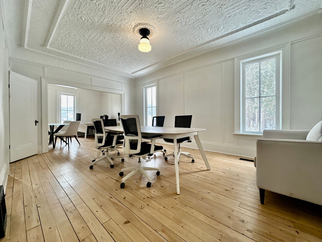 Newly renovated high exposure historic landmark building with professional tenant mix situated just east of york durham line in the quaint hamlet of green river immediately on highway 7 (formerly known as the saunders book store). Conveniently located just east of markham along the north west border of rural pickering. Ideally suited for office or similar use. Suites/ offices range from 156 - 569sf. See floor layout plan showing main and upper floors. W1, w2 (569sf) are available. W1, w2, can make for a sizeable office suite with its own boardroom and kitchenette. There are three common washrooms. Each unit comes with its own designated parking(s). Utilities (gas/ water/ hydro) are included. The interior of the building impresses with period correct materials throughout. Finishes include mosaic tilework, hardwood, high baseboards, crown mouldings, ornate trimwork, coffered/ tin ceilings, oversized vertical sliding slash styled windows that crank open, exposed wood, brickwork, and more. All office are sizeable, bright, and airy with ample separation from neighbouring suites. Office furniture can form part of the lease subject to availability.