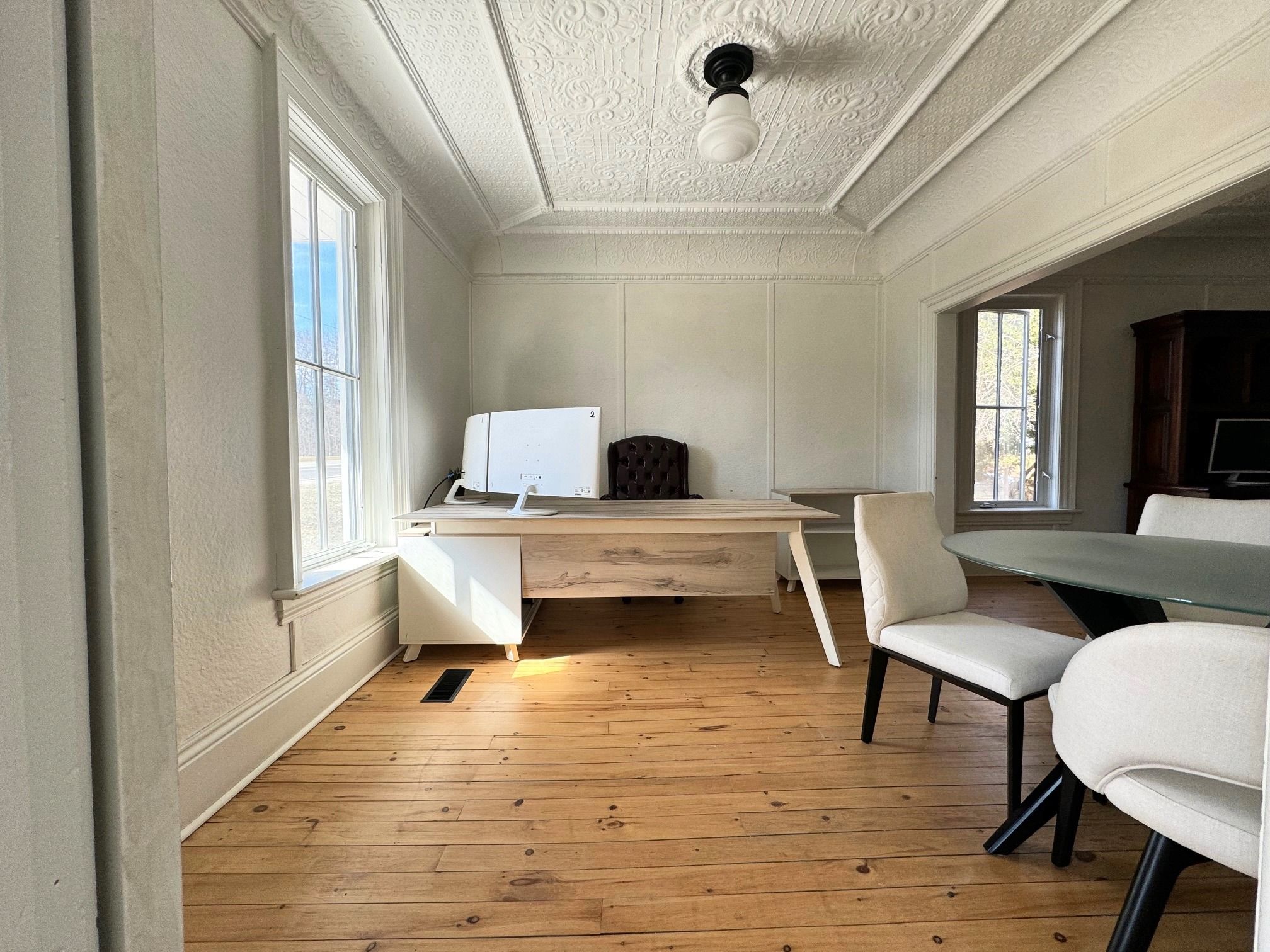 Newly renovated high exposure historic landmark building with professional tenant mix situated just east of york durham line in the quaint hamlet of green river immediately on highway 7 (formerly known as the saunders book store). Conveniently located just east of markham along the north west border of rural pickering. Ideally suited for office or similar use. Suites/ offices range from 136 - 874sf. See floor layout plan showing main and upper floors. W1, w2, w3, w4, and w7 are available. W4 offers a build to suite option. W7 has a walk-out wood deck overlooking the rear of the building. W1, and/ or w4 can make for a sizeable office suite (874sf) with its own boardroom. Two common washrooms and a kitchenette are present. Each unit comes with its own designated parking(s). Utilities (gas/ water/ hydro) are included. All suites with the exception of w4 are ready for immediate occupancy. The interior of the building impresses with period correct materials throughout. Finishes include mosaic tilework, hardwood, high baseboards, crown mouldings, ornate trimwork, coffered/ tin ceilings, oversized vertical sliding slash styled windows that crank open, exposed wood, brickwork, and more. All office are sizeable, bright, and airy with ample separation from neighbouring suites. Office furniture can form part of the lease subject to availability.