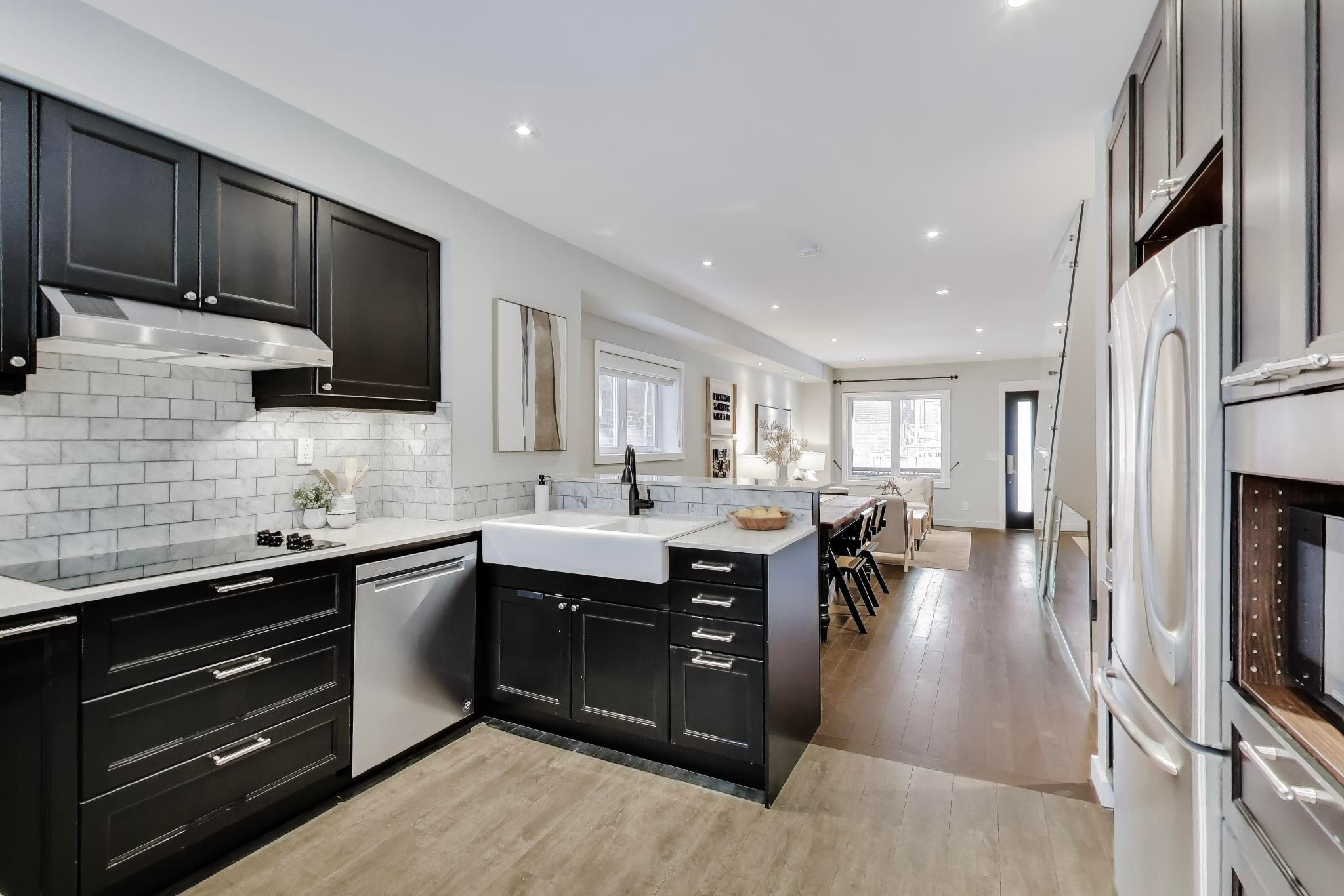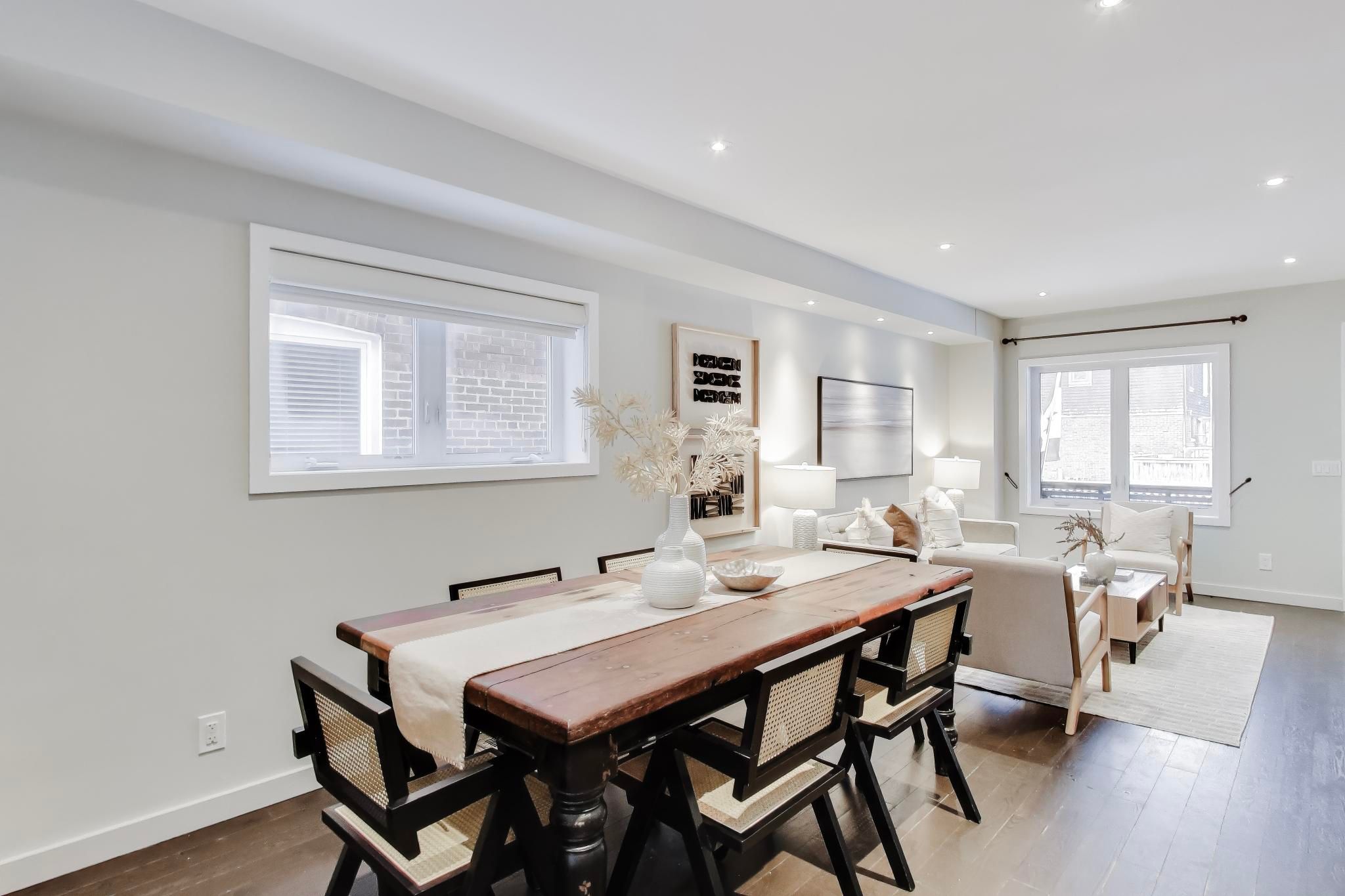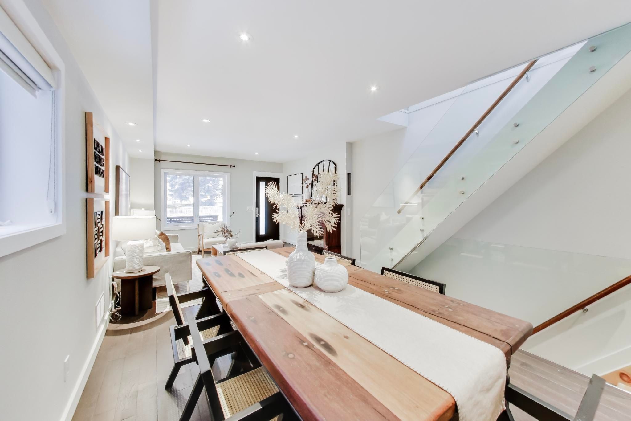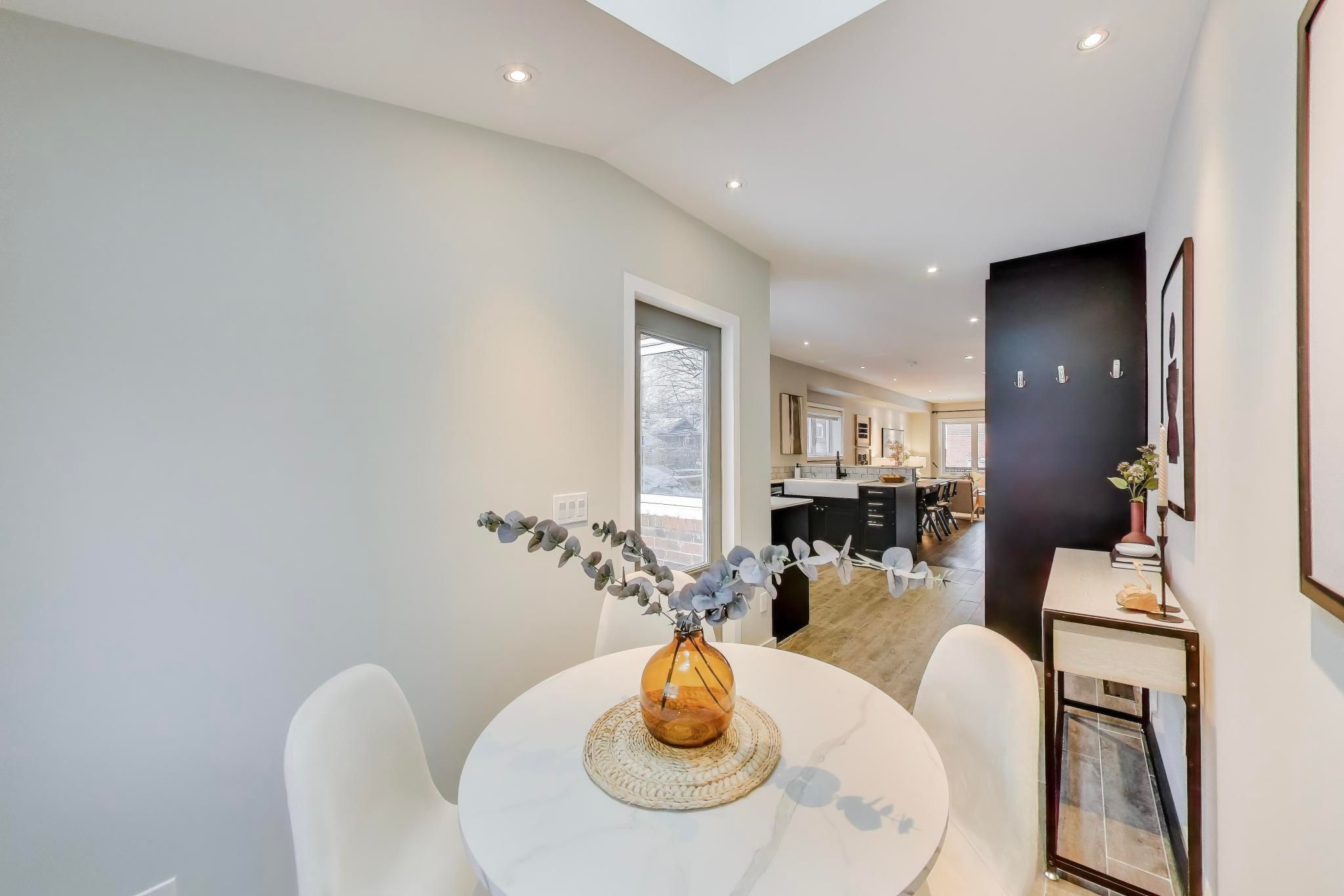 Welcome home! Turnkey and ready to impress. This light-filled semi delivers the ideal balance of function, comfort, and seamless commuting. The open concept living and dining area flows into a generous kitchen with expansive counter space and abundant cabinetry. Beyond the kitchen, a rear extension creates the perfect work from home zone, studio, or bonus family space with added versatility. The spacious primary retreat features custom built-ins and a private ensuite. Upper level laundry adds everyday convenience. The finished lower level with separate entrance offers excellent flexibility for an in-law suite, dedicated office, gym, or income potential. Legal front yard parking pad included. Step outside to a tree-canopied backyard with room to entertain, unwind, or let the kids roam, complete with a large gazebo. A short stroll to chester subway and moments to the danforth's vibrant shops, cafés, and restaurants, plus quick dvp access for effortless city connection. Flexible layout. Prime location. Move-in ready.