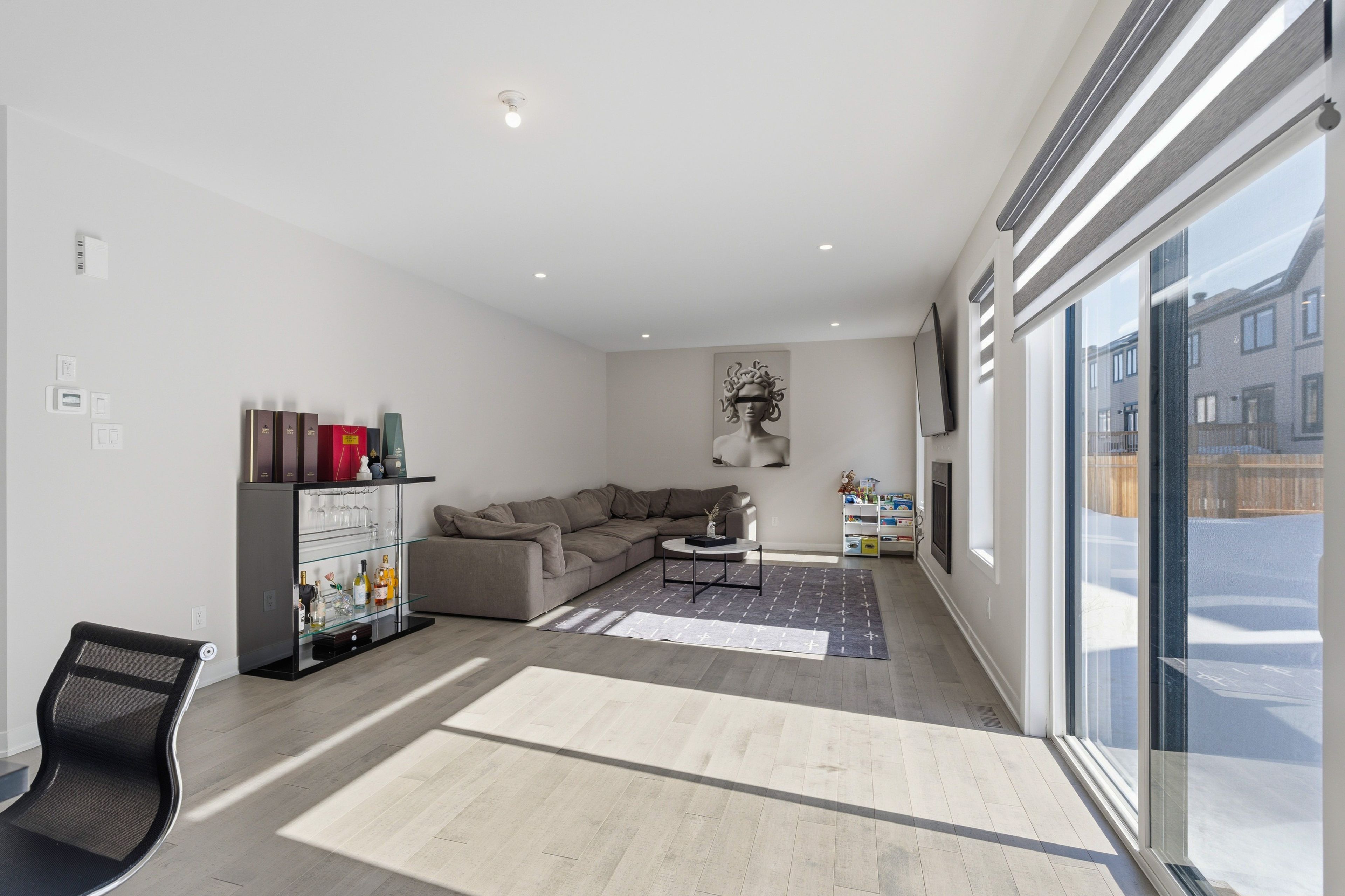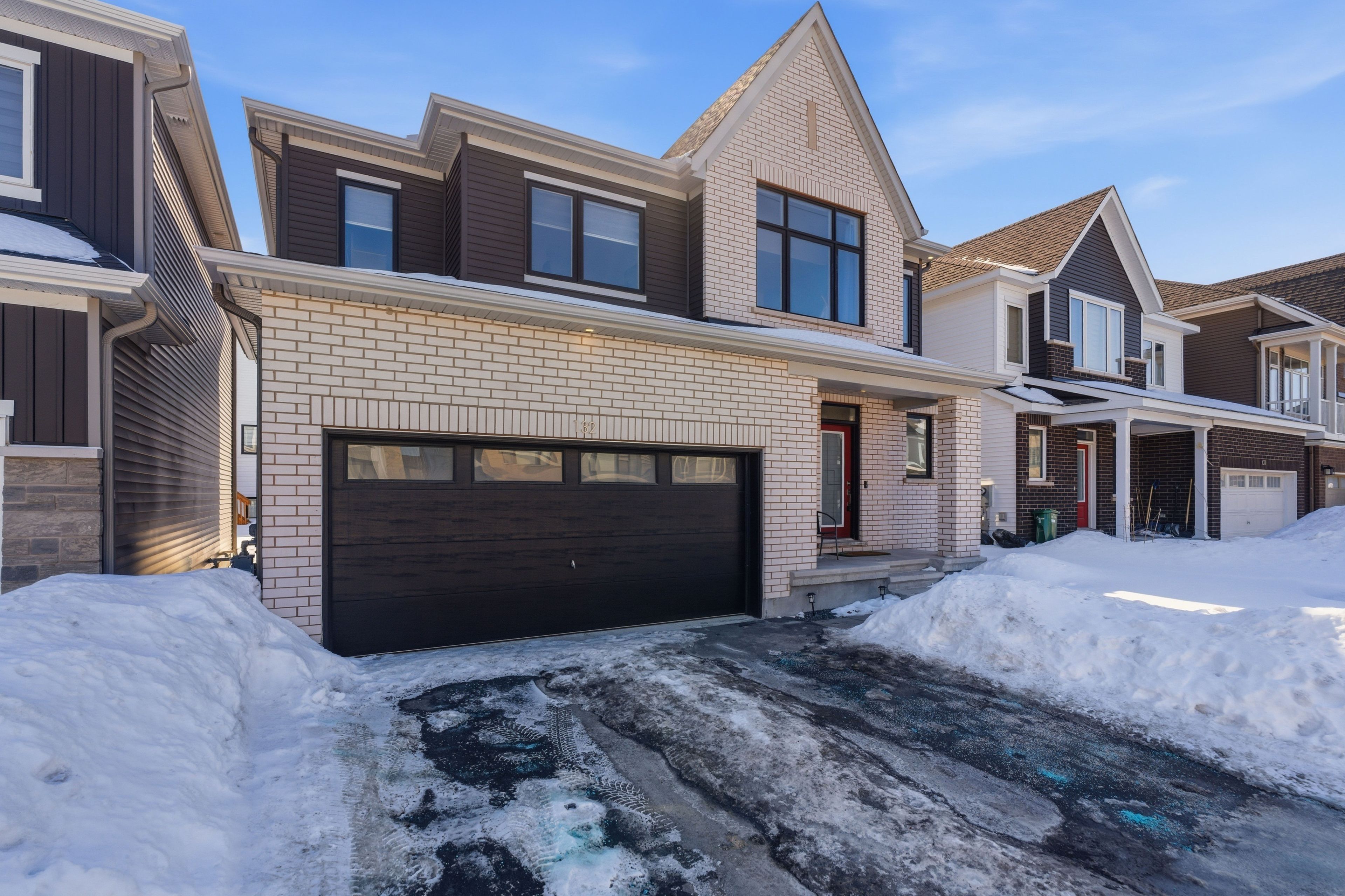 Welcome to 132 rugosa street, a caivan-built home with 4 bedrooms and 3 bathrooms in one of barrhaven's newest communities. From the moment you walk in, the quality of the finishes and the thoughtfulness of the layout make a strong first impression. The main level greets you with a welcoming foyer, a nearby powder room, and a mudroom with direct access to the double-car garage. The open-concept layout flows effortlessly from room to room, with hardwood floors underfoot and light pouring in from every angle. The kitchen is the true centrepiece, featuring floor-to-ceiling cabinetry in a striking dark finish, a scalloped tile backsplash, granite countertops, a large island with bar seating, and the full cafe line appliance package including a gas stove. The living room is where this home really shines, bathed in natural sunlight throughout the day and anchored by a sleek fireplace that adds warmth and ambiance year-round. Patio doors off the dining area connect you directly to the backyard, making indoor-outdoor living easy. Upstairs, the primary suite is a true retreat with a walk-in closet and a 4-piece ensuite featuring a double vanity and glass shower. Three additional spacious bedrooms and a full bathroom complete the upper level. The fully finished basement offers a large recreation room ready to adapt to your lifestyle, along with laundry and plenty of storage. Steps from parks, schools, walking trails, and everyday conveniences, this home puts you right in the heart of a thriving barrhaven community.