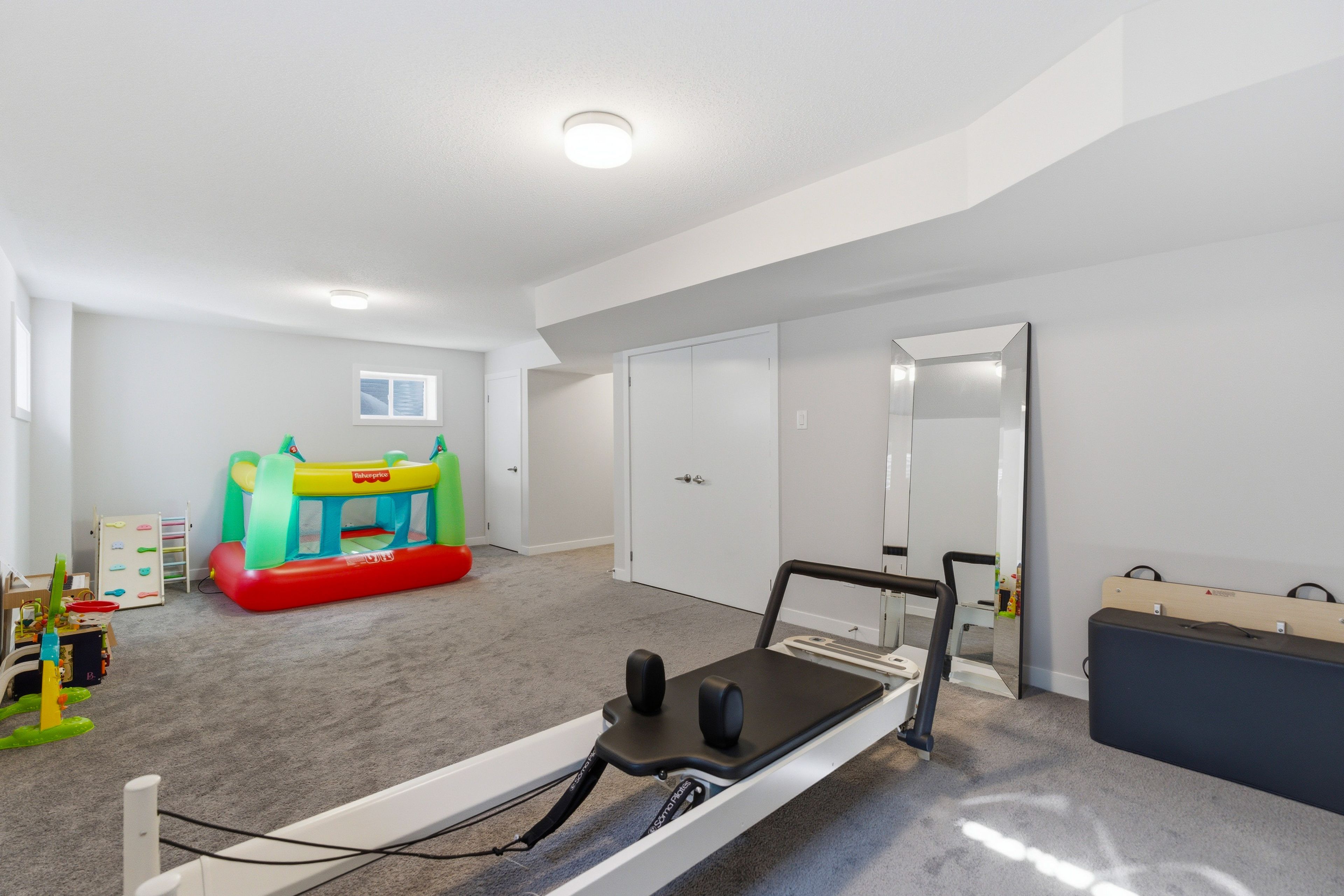 • Fully finished basement with recreation room, laundry, and ample storage.