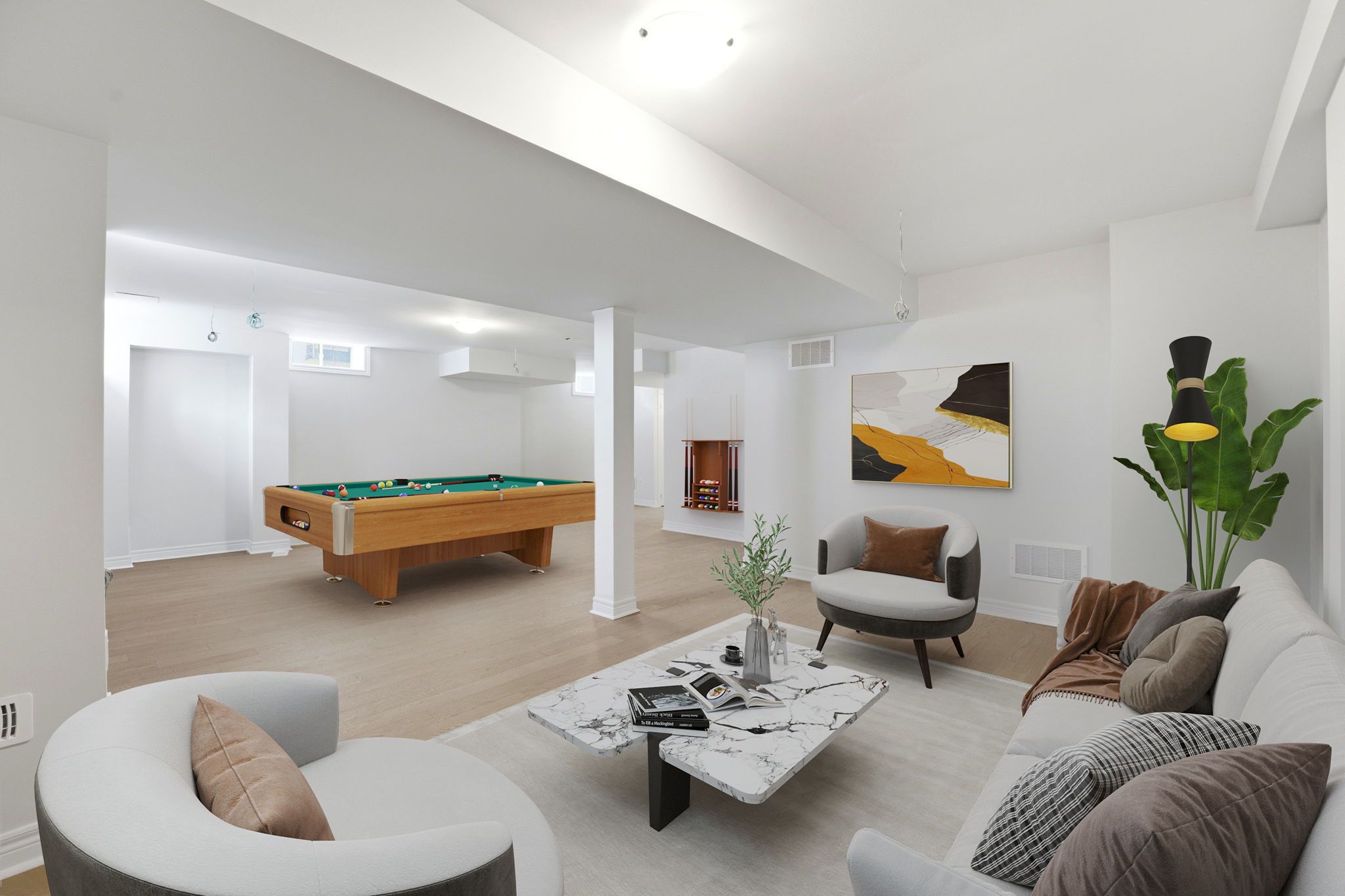 • Basement equipped with a sound system for movie nights and gatherings.