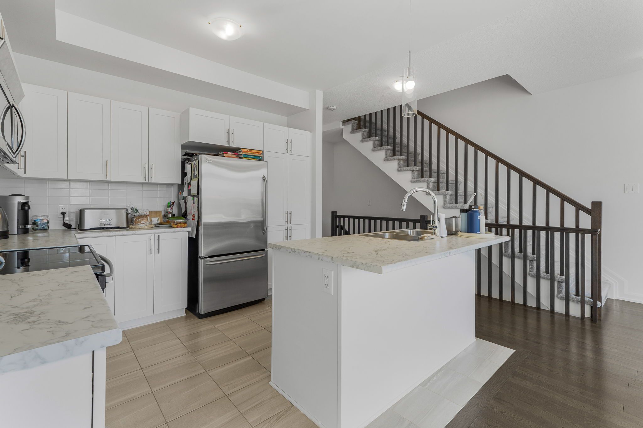 Immaculate 3 bedroom, 2. 5 bathroom 1,680 sqft longwood arbois townhome model located in the heart of rockland in morris village! Open concept main floor features hardwood & ceramic throughout, beautiful gourmet kitchen with a convenient island, lots of counter tops, modern cabinets and stainless steel appliances. Upper level features 3 spacious bedrooms, full secondary bathroom, en-suite and a convenient laundry room. Fully finished basement with large recreational room & plenty of storage space; perfect to entertain family and friends. Featuring: single garage space, a/c & air exchanger. Walking distance to parks, schools and much more. This house is extremely well maintained! You won't be disappointed! Book your private showing today!