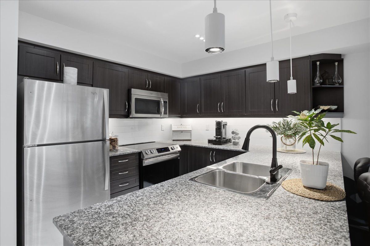 Absolutely stunning, well cared for and meticulously designed 1 bedroom/1 washroom main level stacked condo townhouse, that's very bright, open concept and absolutely loaded w/ the finest in trendy west toronto turn-key living that includes beautifully installed chestnut coloured laminate, large kitchen w/ granite countertops, complimenting white sub-tile backsplash, newer brand-name stainless steel applicances, deep basin sink, charming overhead pendant lighting, large pull-up breakfast bar w/ abilty to seat 4 guests, soft-close cabinets w/ undermount ambient lighting, led pot-lighting throughout, ensuite laundry w/ b/i shelving, combined family/dining, mounted electric fireplace w/ b/i cabinetry, a large 4pc fully upgradd bathroom, a large primary room w/ sizeable closet and multiple windows, a cozy balcony w/ b/i gas bbq and custom subfloor, simply too may upgrades to go around you simply have to see this unit. This charming stacked town is approx 632 sq ft and includes an exclusive locker and 1 underground parking spot. If that wasn't enough, the unit is unbelievably located in (arguably) the most convenient and navigable part of toronto whereby ttc & pub. Transit are basically at your doorsteps, mins. To 427/401/qew/27/407, pearson airport. Plaza w/ metro, restaurants, lcbo, banks and other conveniences are literally across the street. This unit is ideal for that working professional(s), young couple, downsizer or investor looking to crack into the real estate market and at this price, w/ this location, this unit simply won't last!! Book your showing today before it's too late!!!