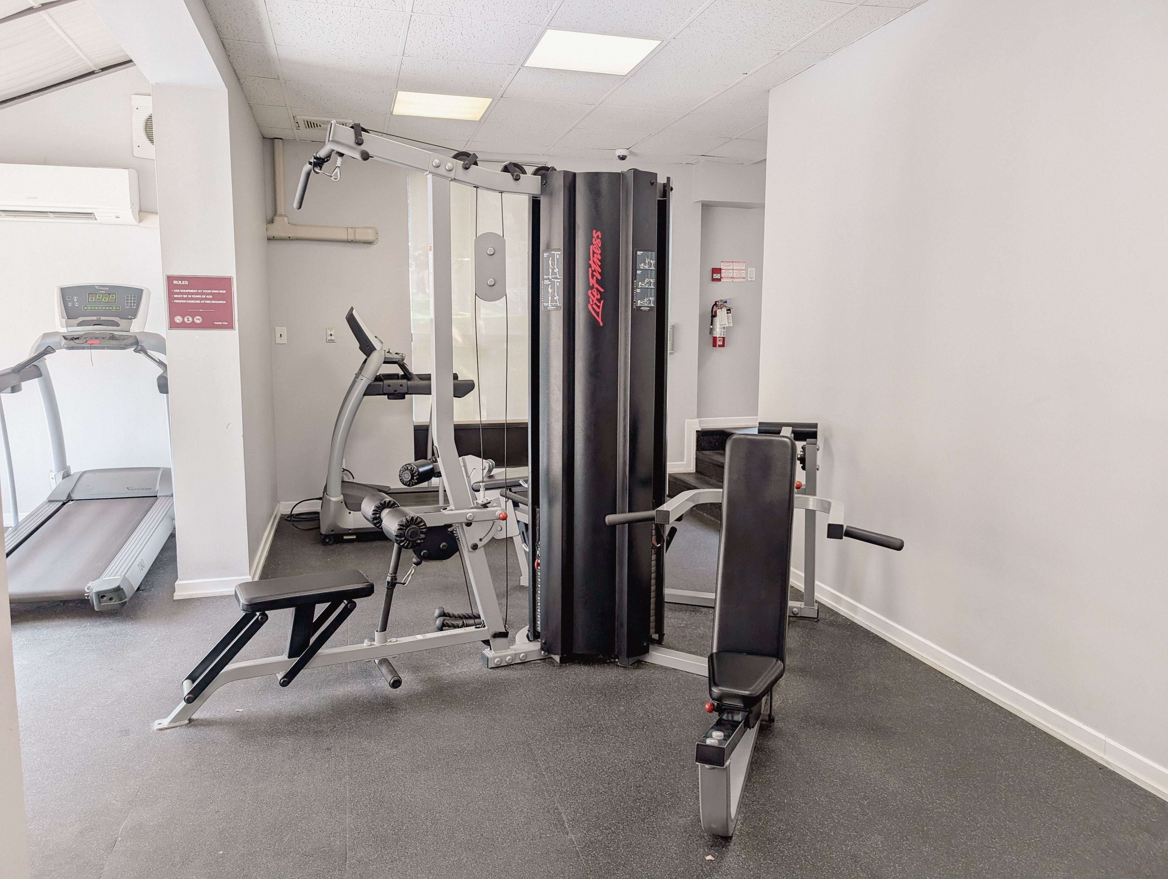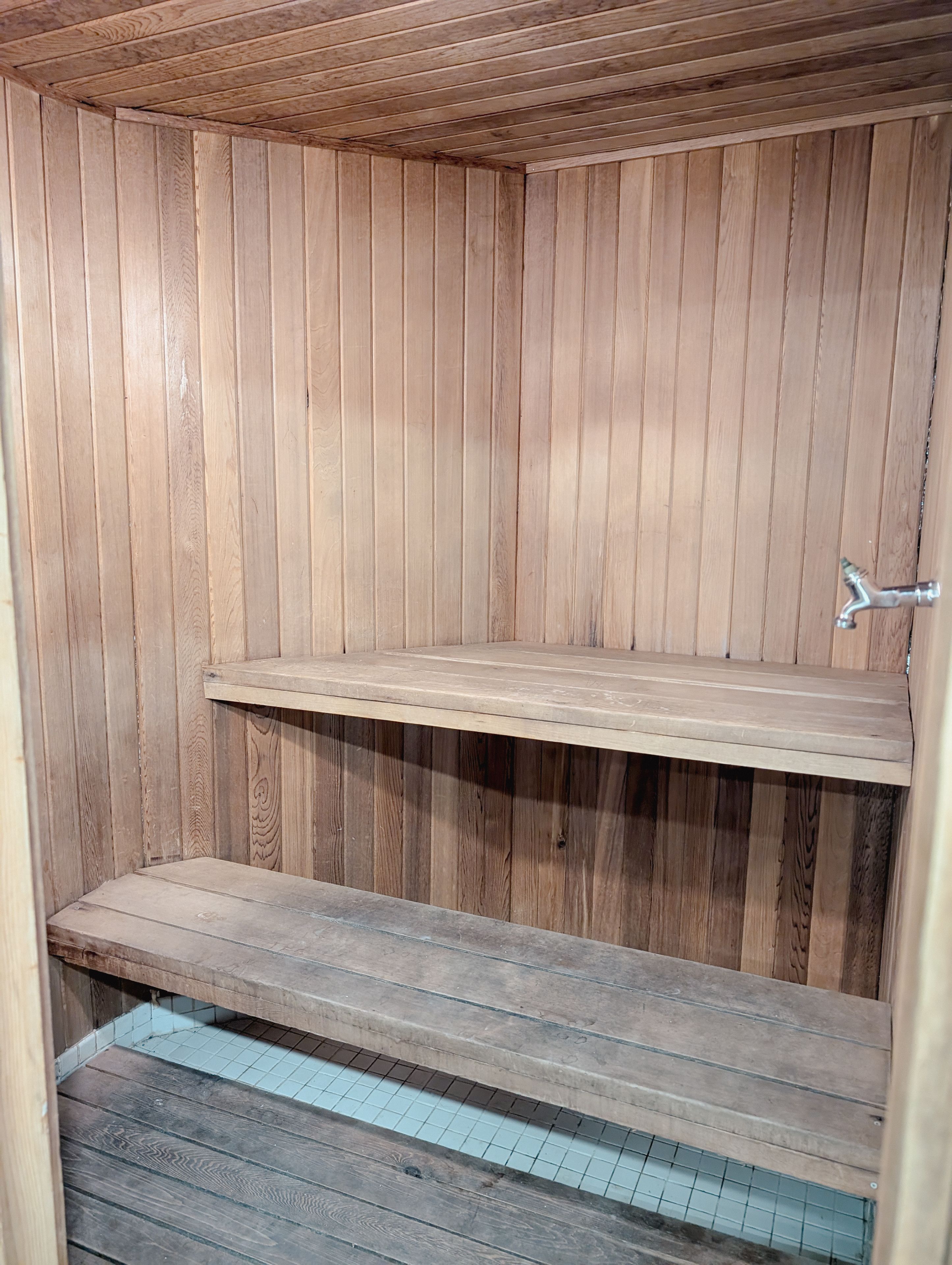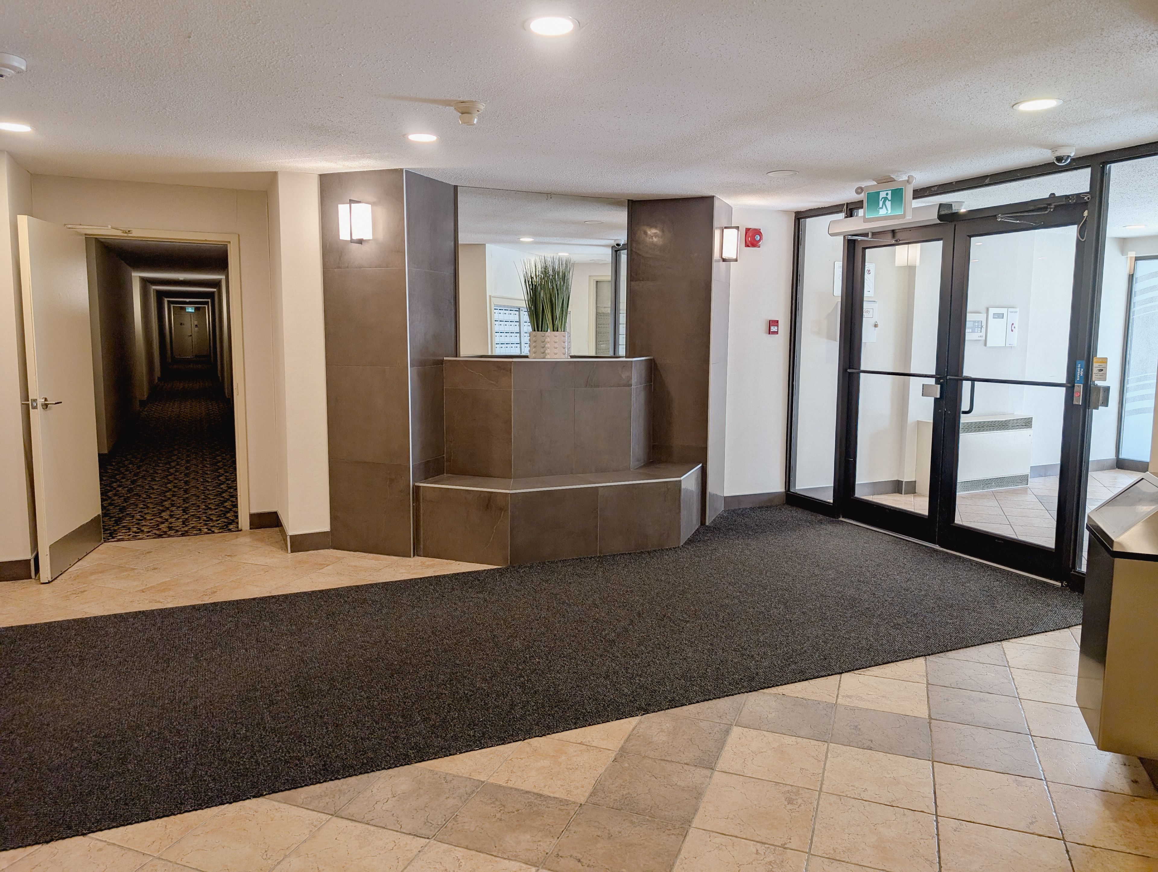 • Community amenities include an outdoor pool, fitness centre, and sauna.