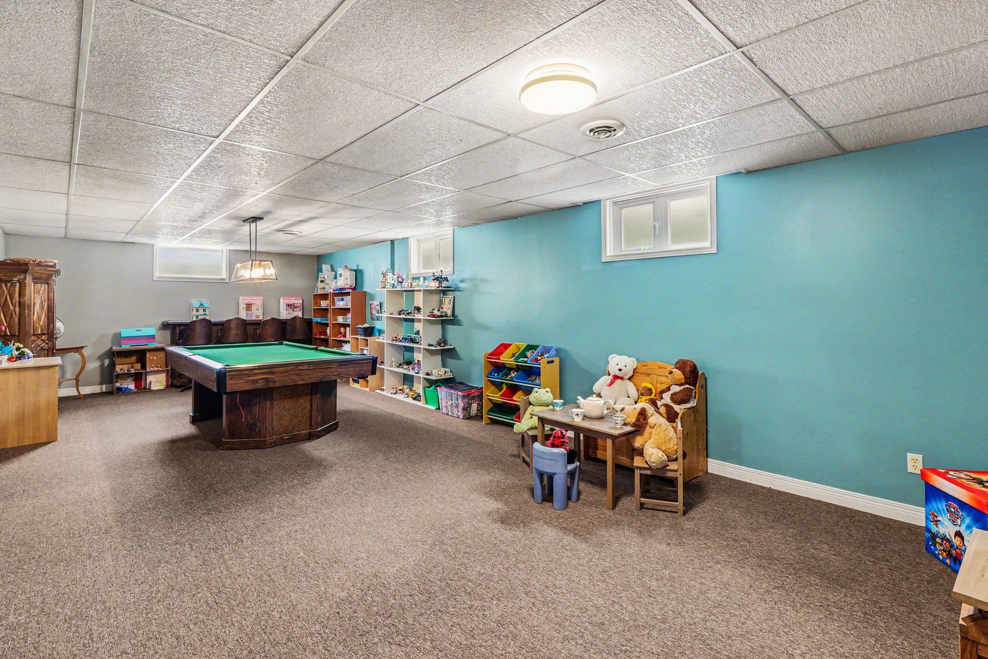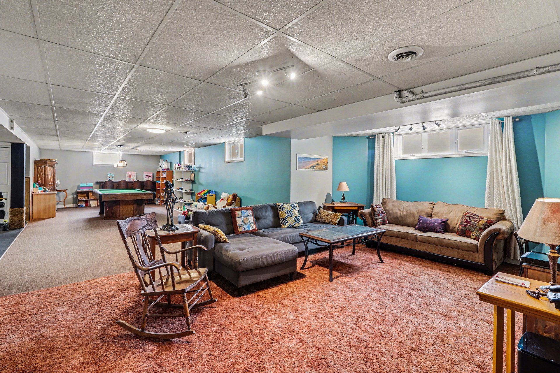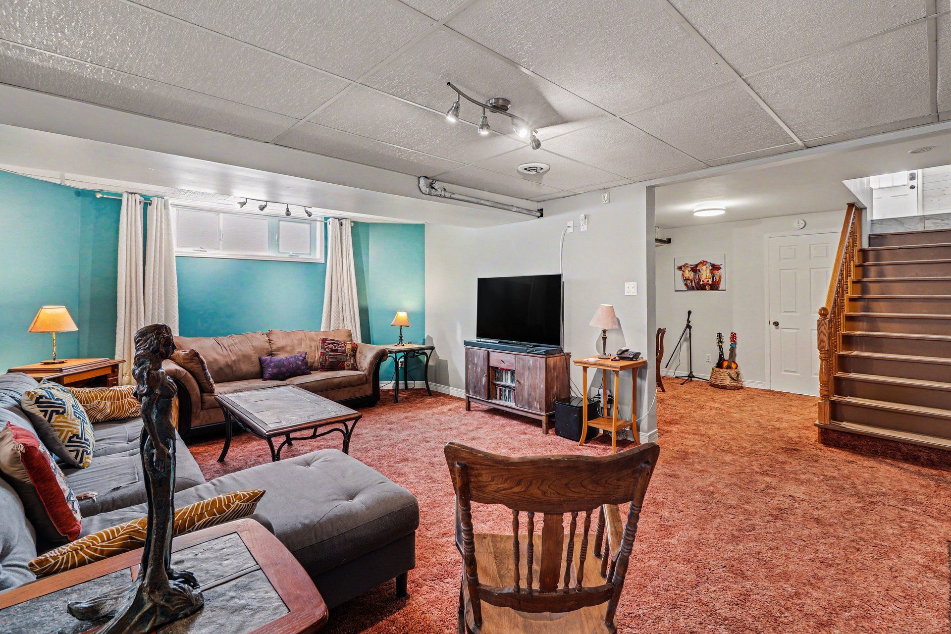 • Finished basement features a home gym, kitchenette, and soundproof bedroom.