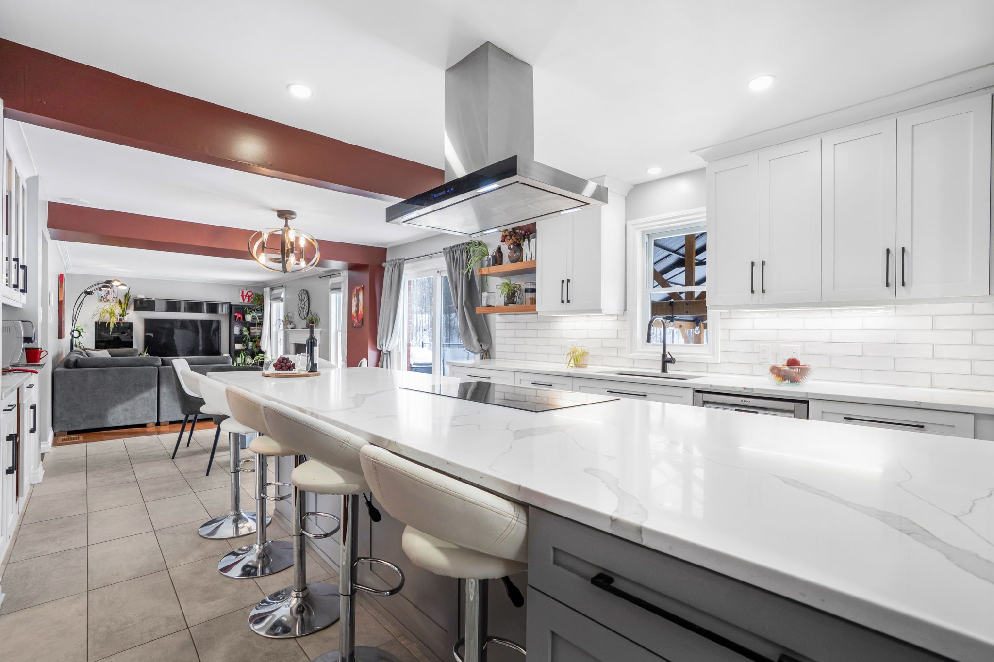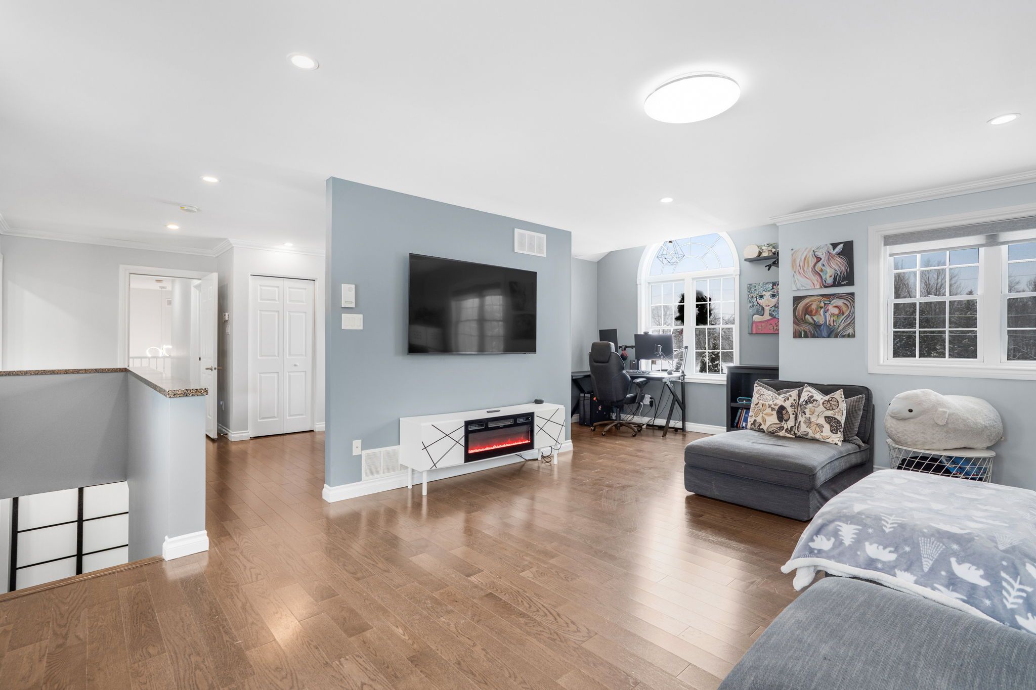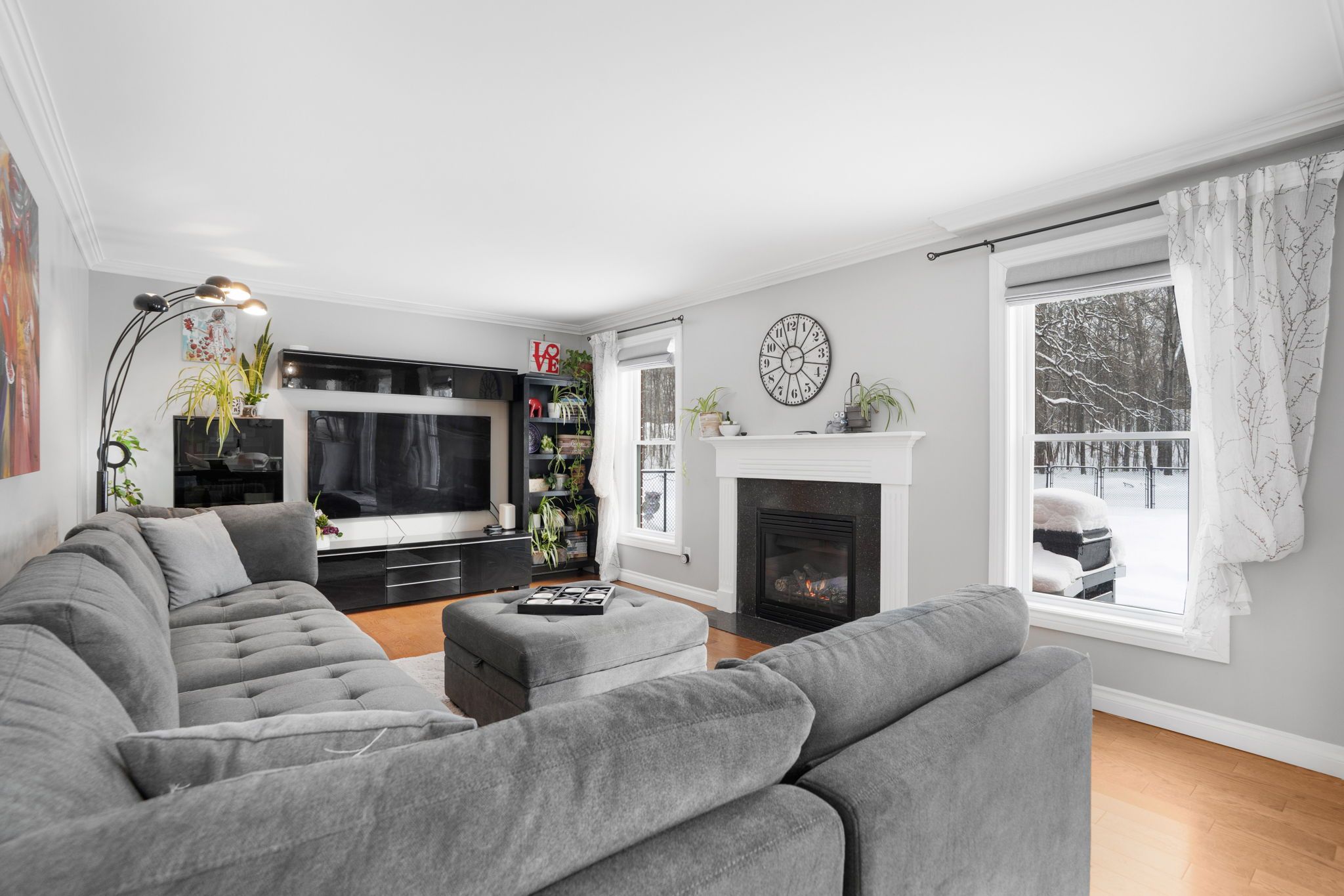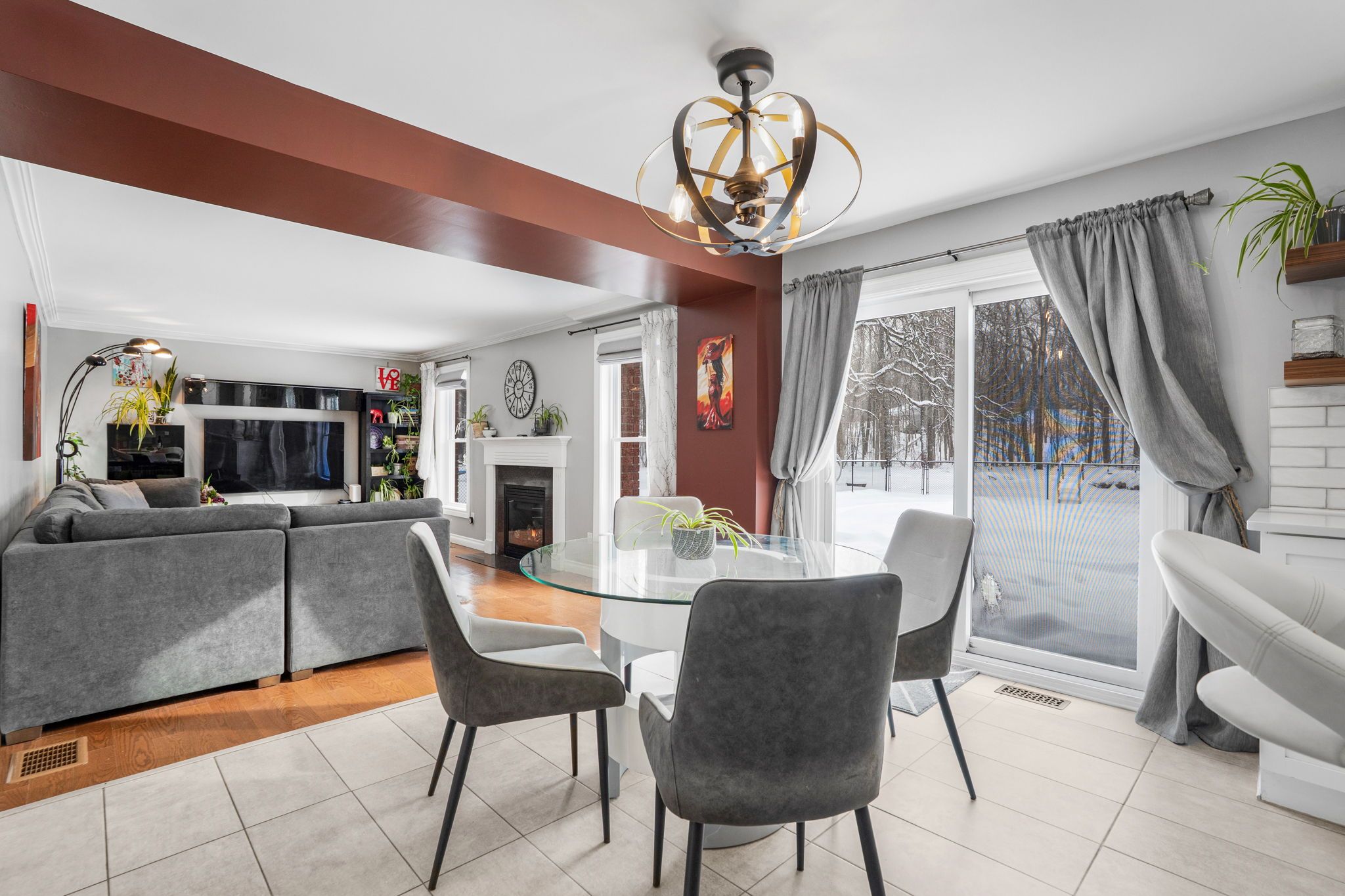 • Cozy family room with gas fireplace and multiple inviting living spaces.