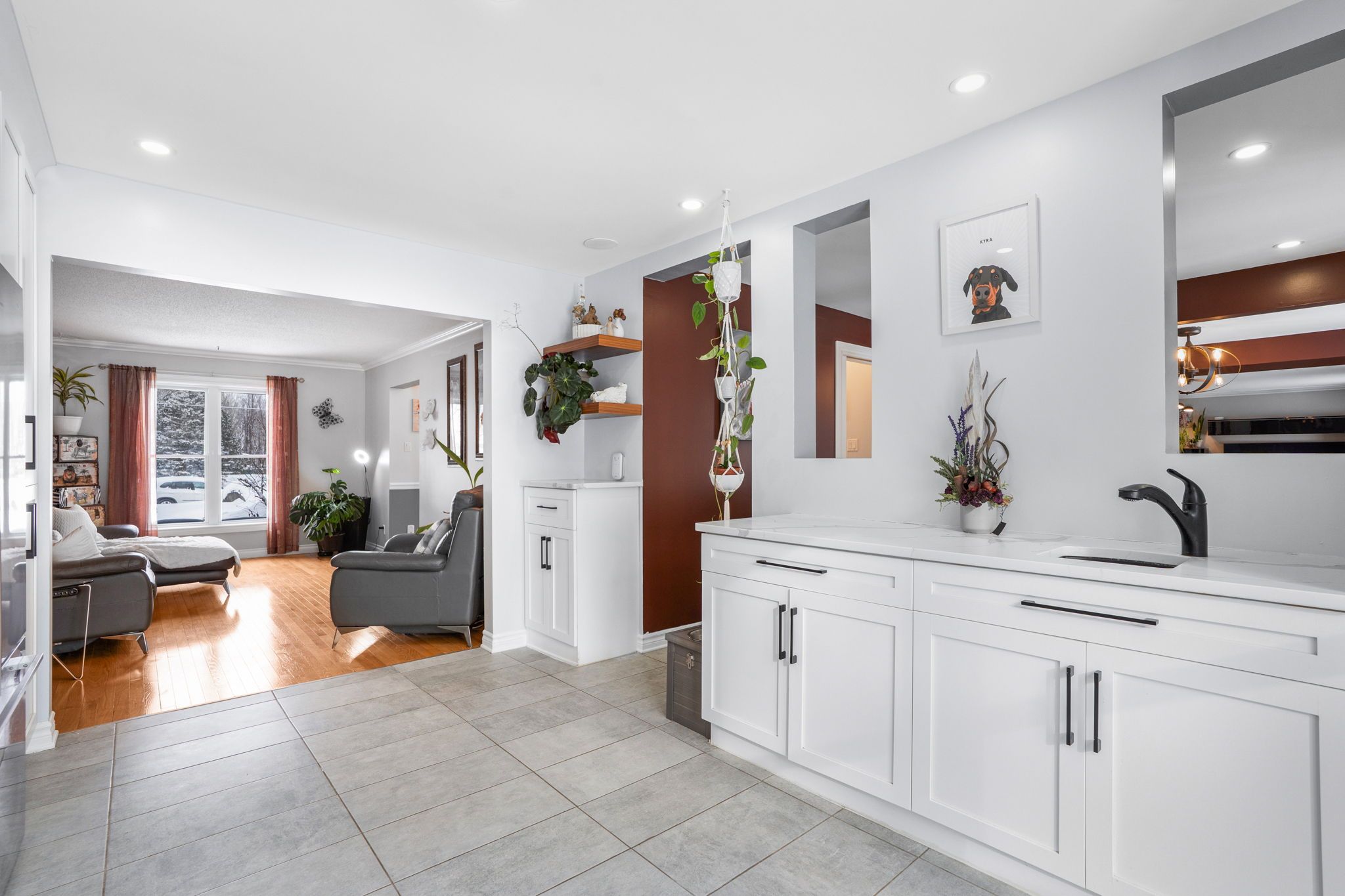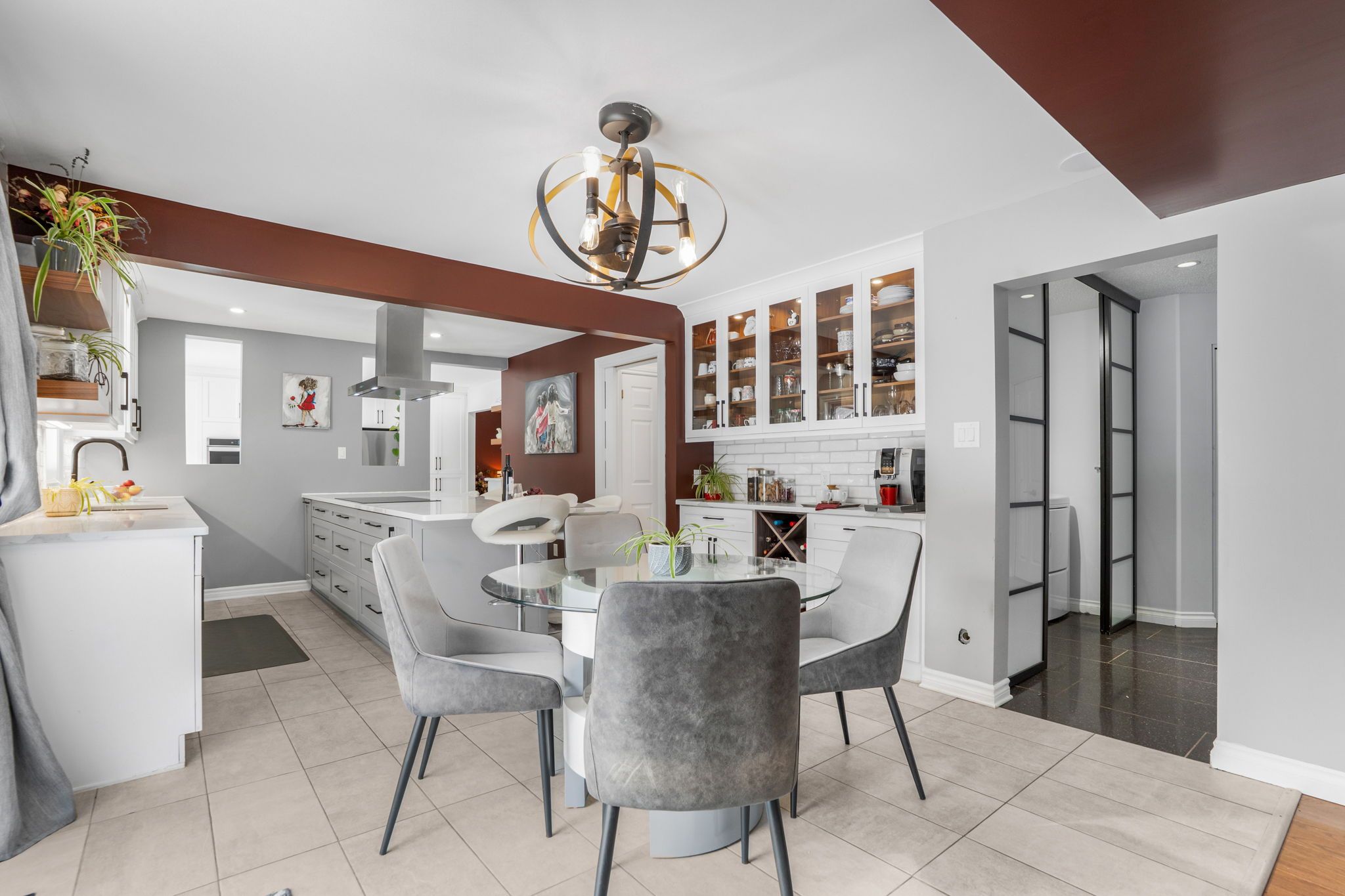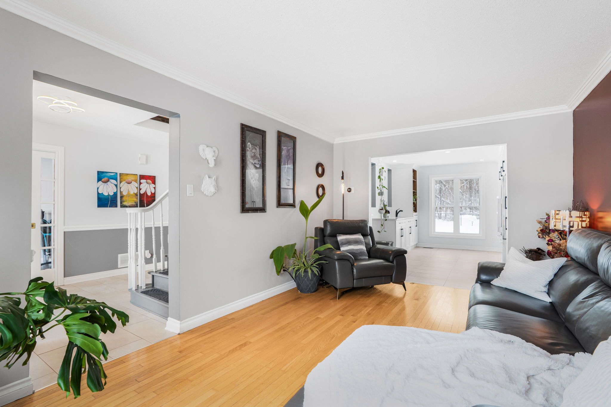 • Cozy family room with gas fireplace and multiple inviting living spaces.