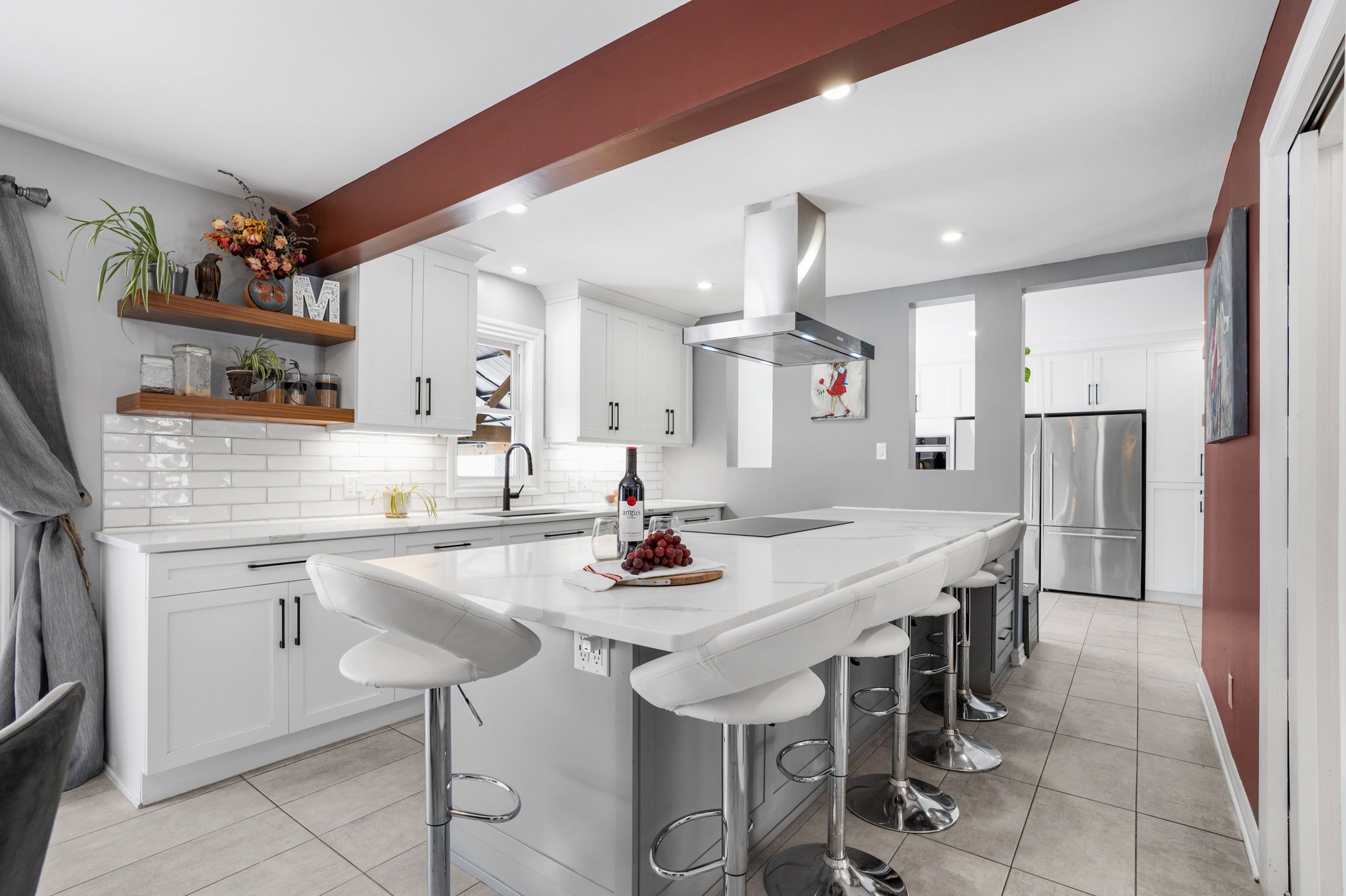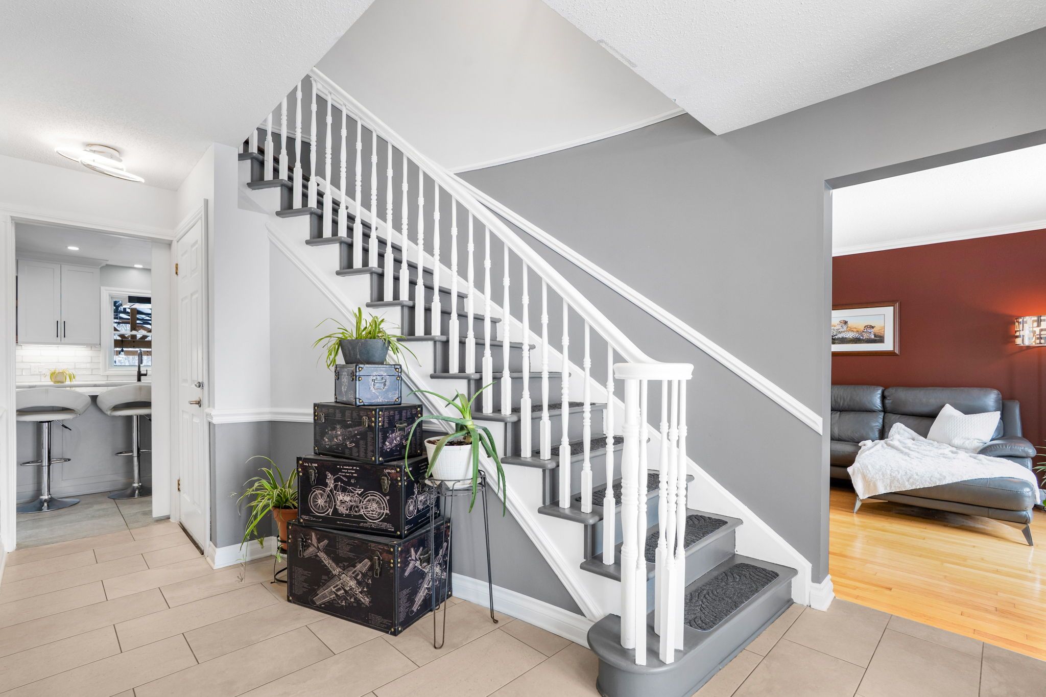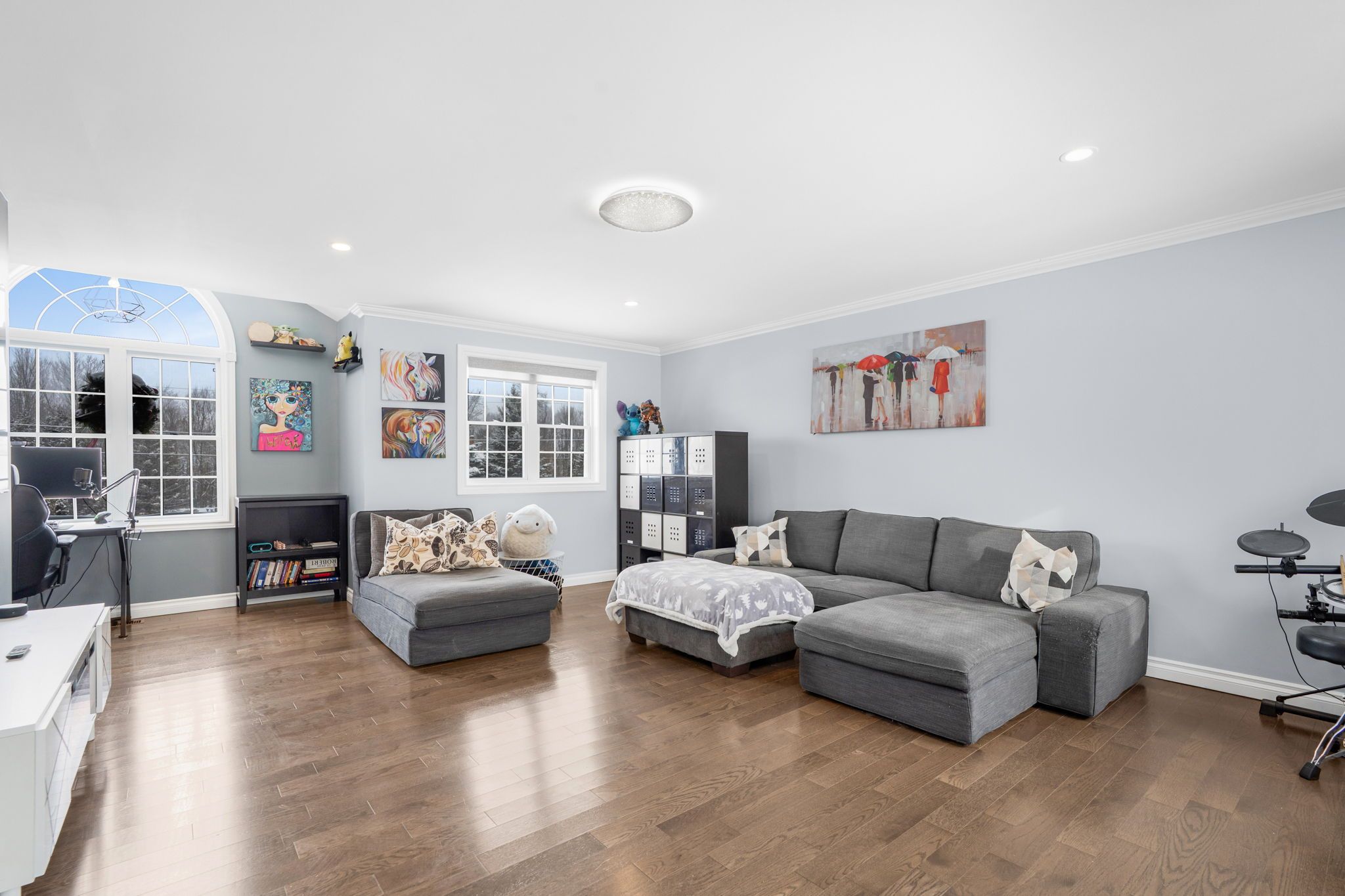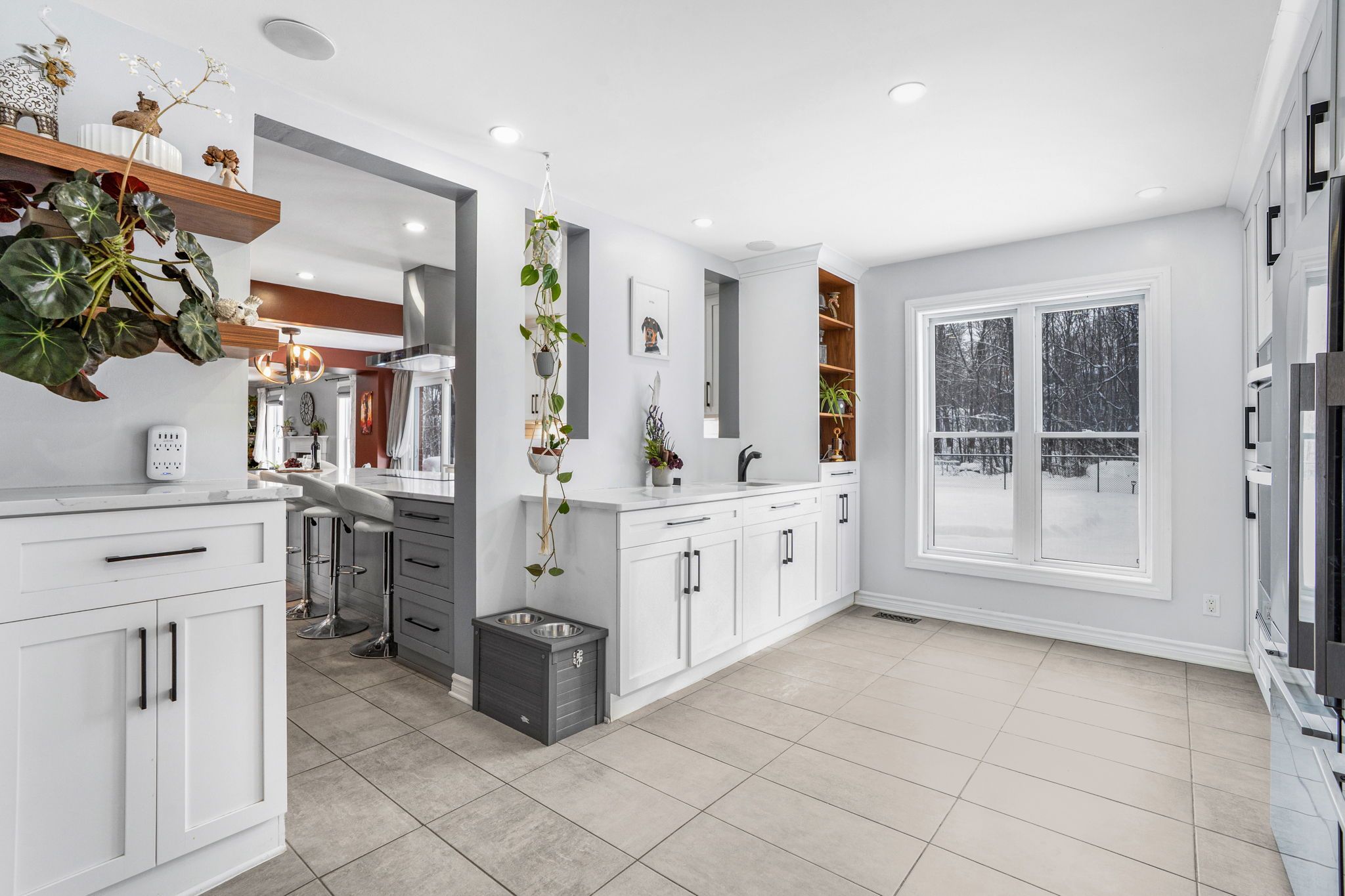 • Cozy family room with gas fireplace and multiple inviting living spaces.