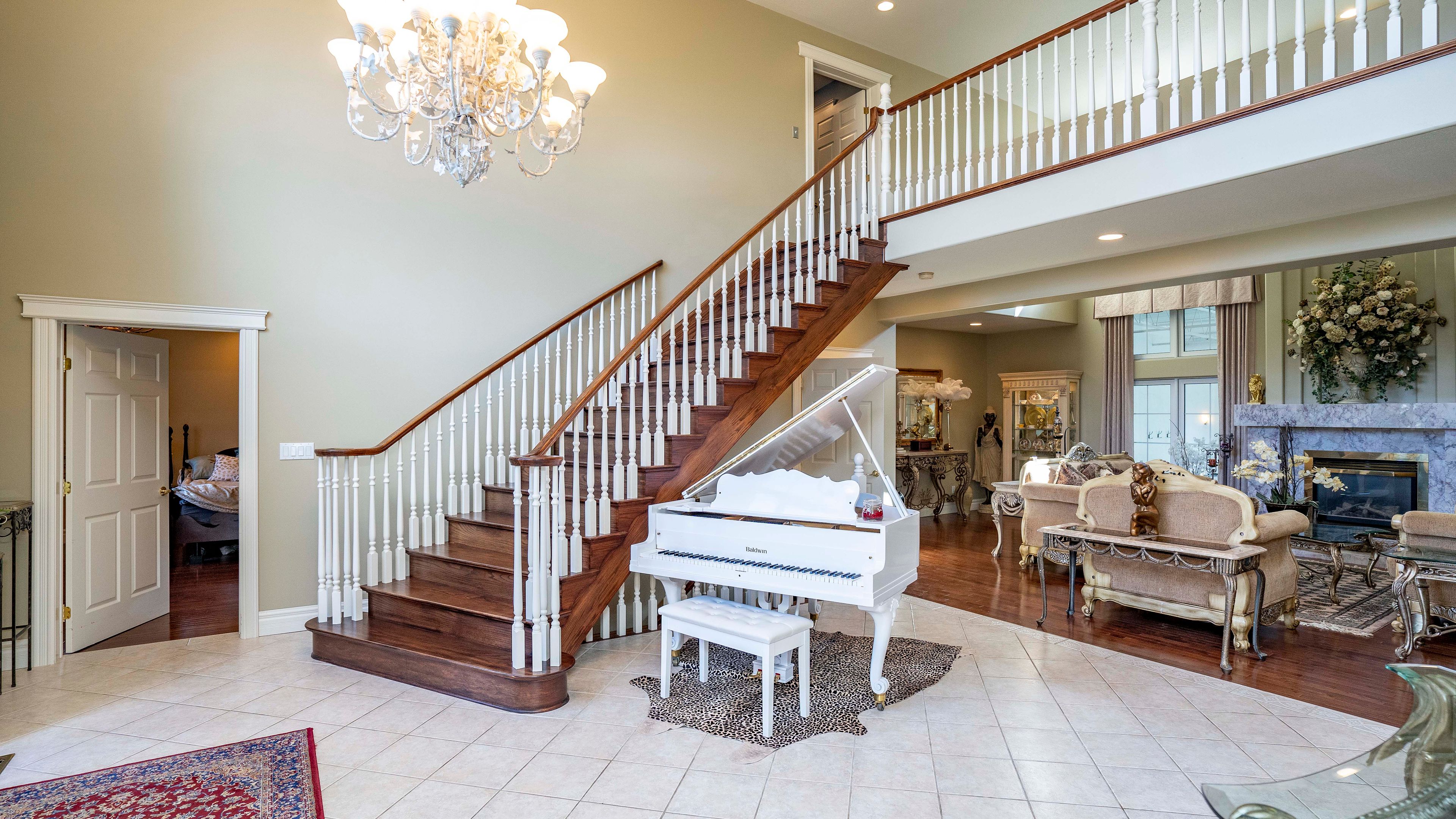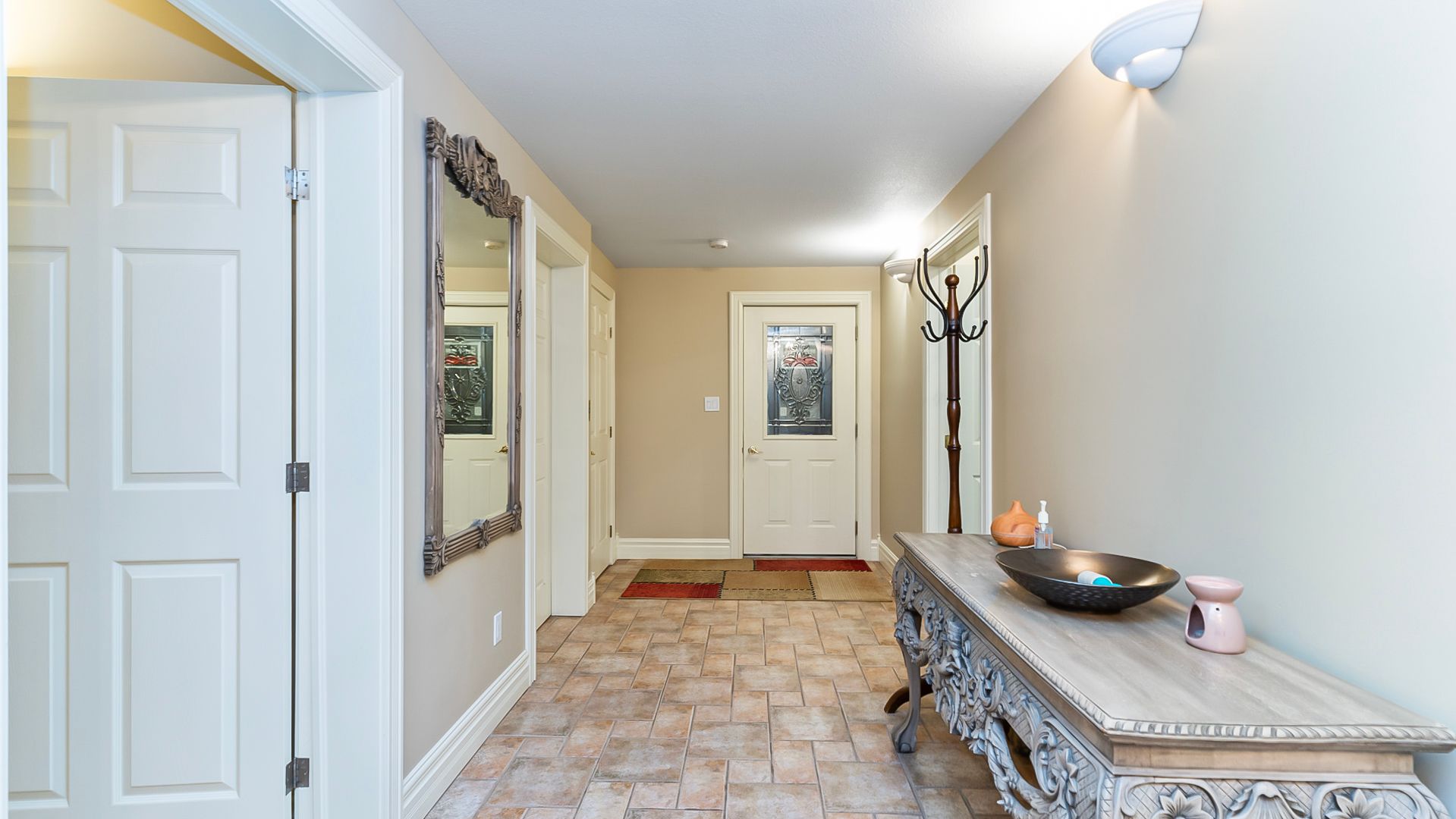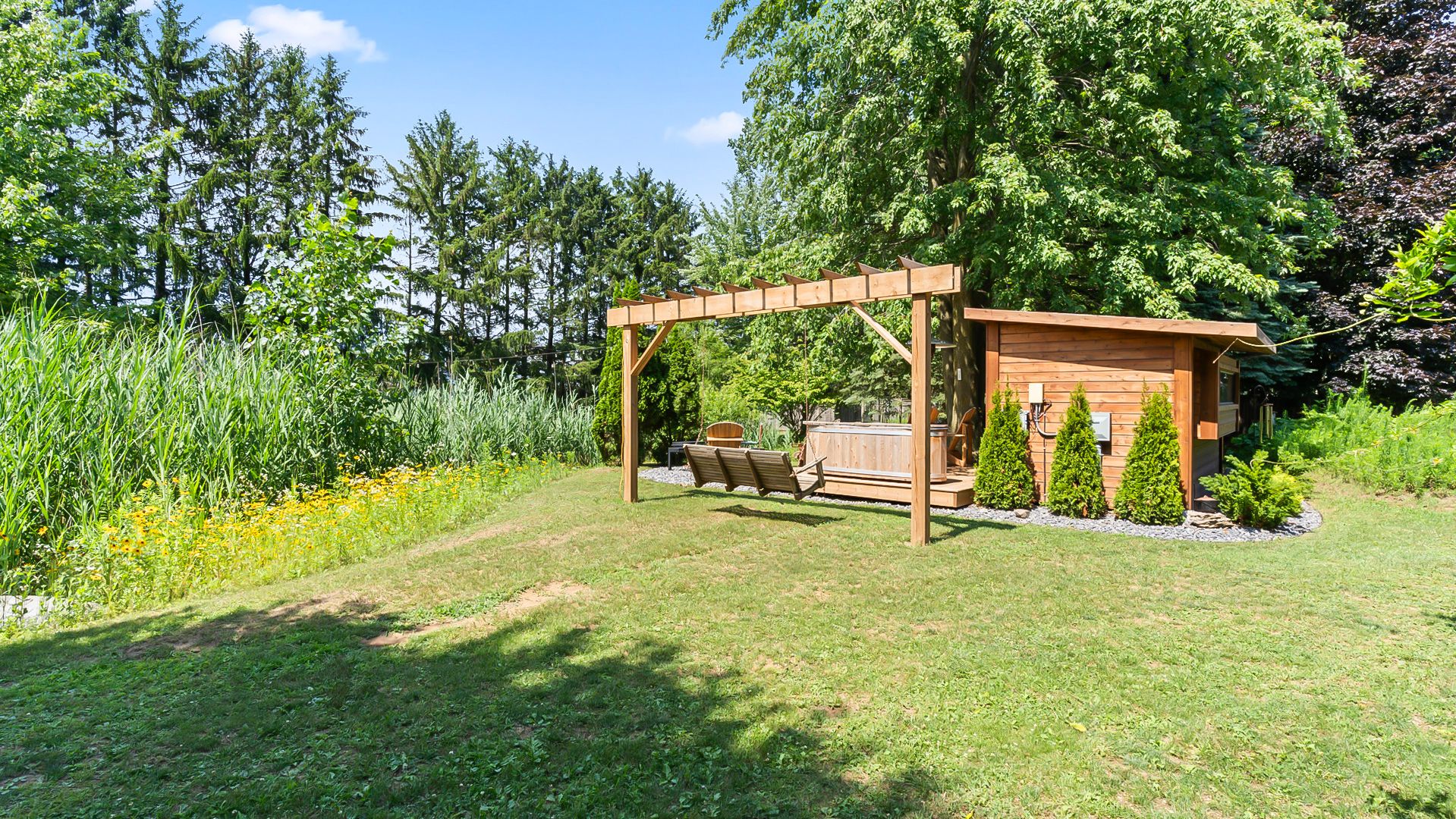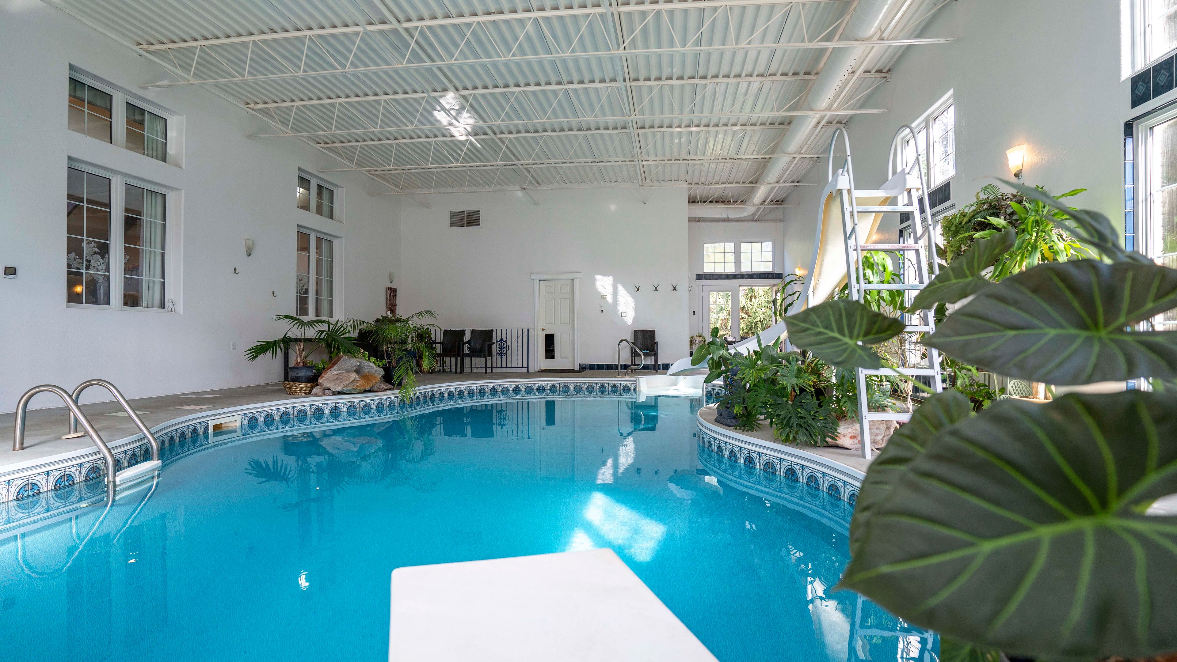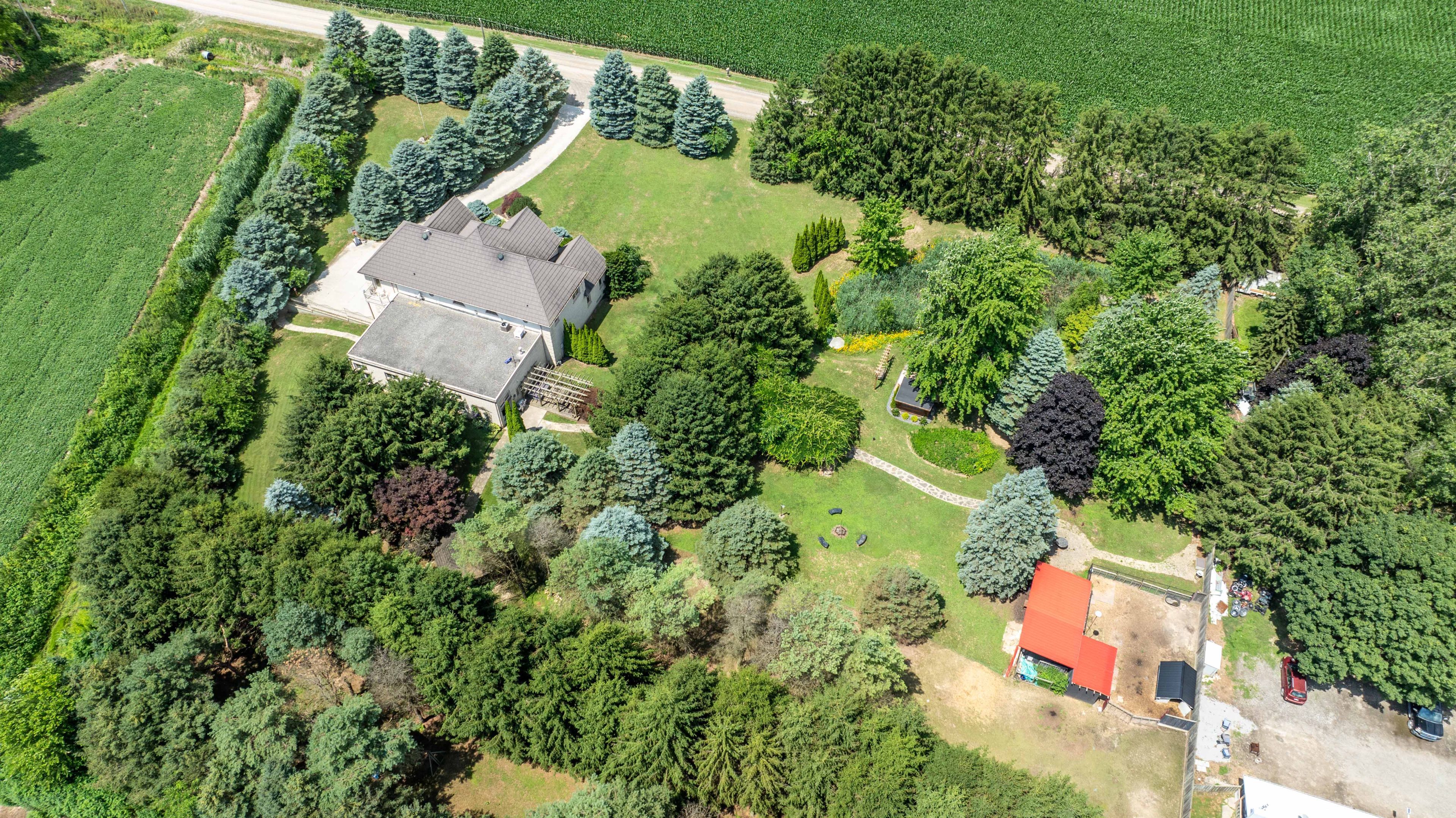 Situated in the countryside, but mere minutes away from ridgetown and major highway access, on a 2. 6-acre property, this custom built 7,000 sqft home features over 6 bedrooms, 6 bathrooms, a private elevator, an indoor pool, nordic spa and loads of opportunity for income potential. Entering the home through the double front doors and into the open concept foyer, you will notice the fine hardwood curved staircase and the elegant living room with cathedral ceilings and gas fireplace. To the left is the main floor primary bedroom suite with hardwood flooring, walk-in closet and 5-piece ensuite bathroom. The main floor kitchen is a chefs dream with plenty of countertop space, breakfast bar island, 2 sinks, custom cabinetry and new premium stainless-steel appliances. Adjacent to the kitchen is the formal dining room with stunning 16-foot ceilings, a 13-foot hardwood dining table and large window that lets in lots of natural light. On the second floor, you notice premium hardwood flooring and an impressive open concept cat-walk view to the living room and foyer below. 4 bedrooms are located on this floor, 2 of them having ensuite bathrooms and one also featuring an exterior balcony. The lower level of this home is fully finished and is accessible from 3 points of entry (garage, pool room, main floor). Tile flooring throughout, there is a large rec room, bonus bedroom (with walk-up to pool room), an exercise room and a 4-piece bathroom. The indoor pool is situated in a climate-controlled environment and is ideal for year-round enjoyment. All three levels of the house, including from the 3-car garage, are accessible via a residential personal elevator. Enjoy the outdoors on this private, tree-lined property featuring a covered gazebo, 2 pergolas connected with a walking path. Relaxing day spa amenities continue outside with a newly built nordic sauna, with cold plunge basin just outside on the deck which features a fireplace and overlooks the pond.