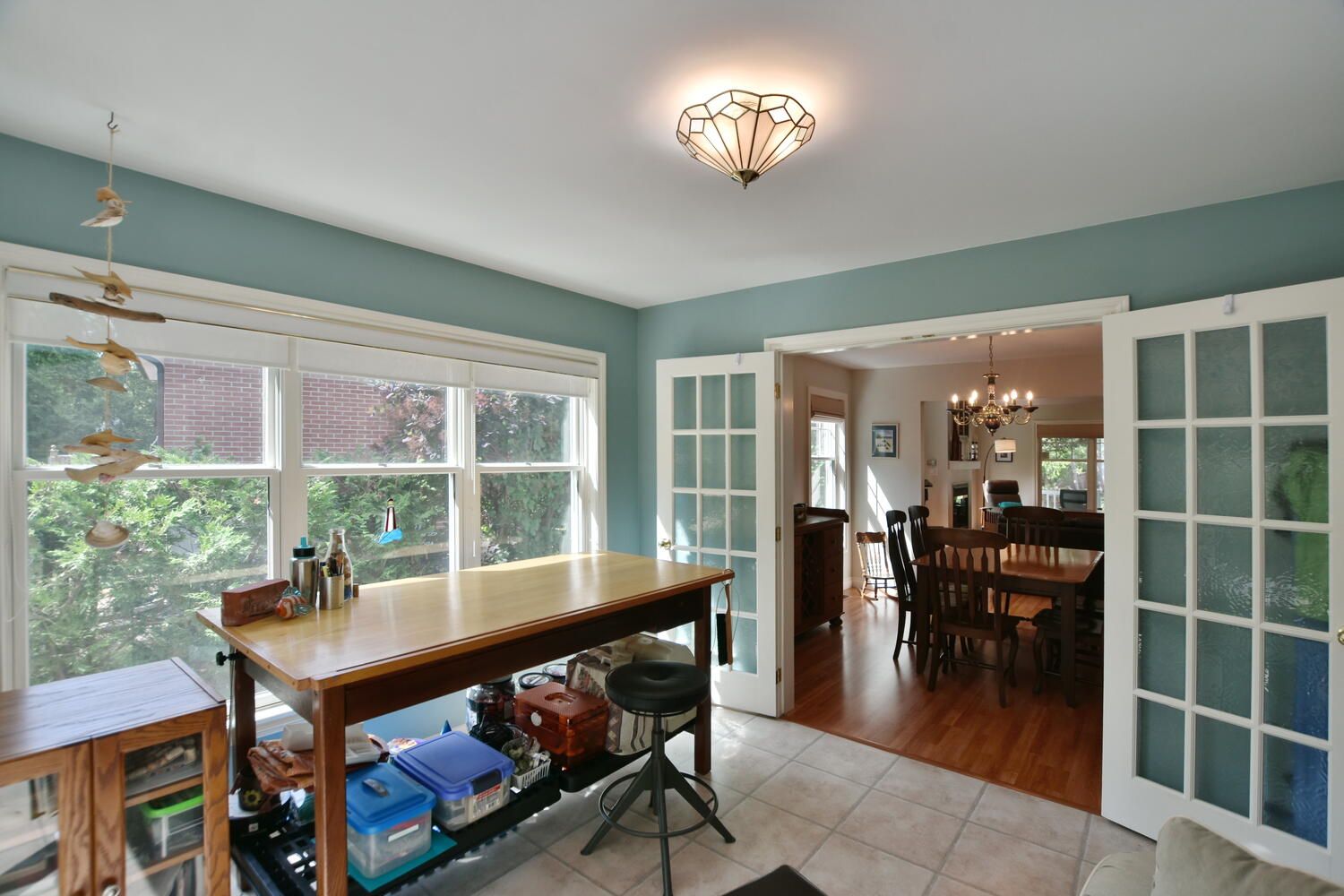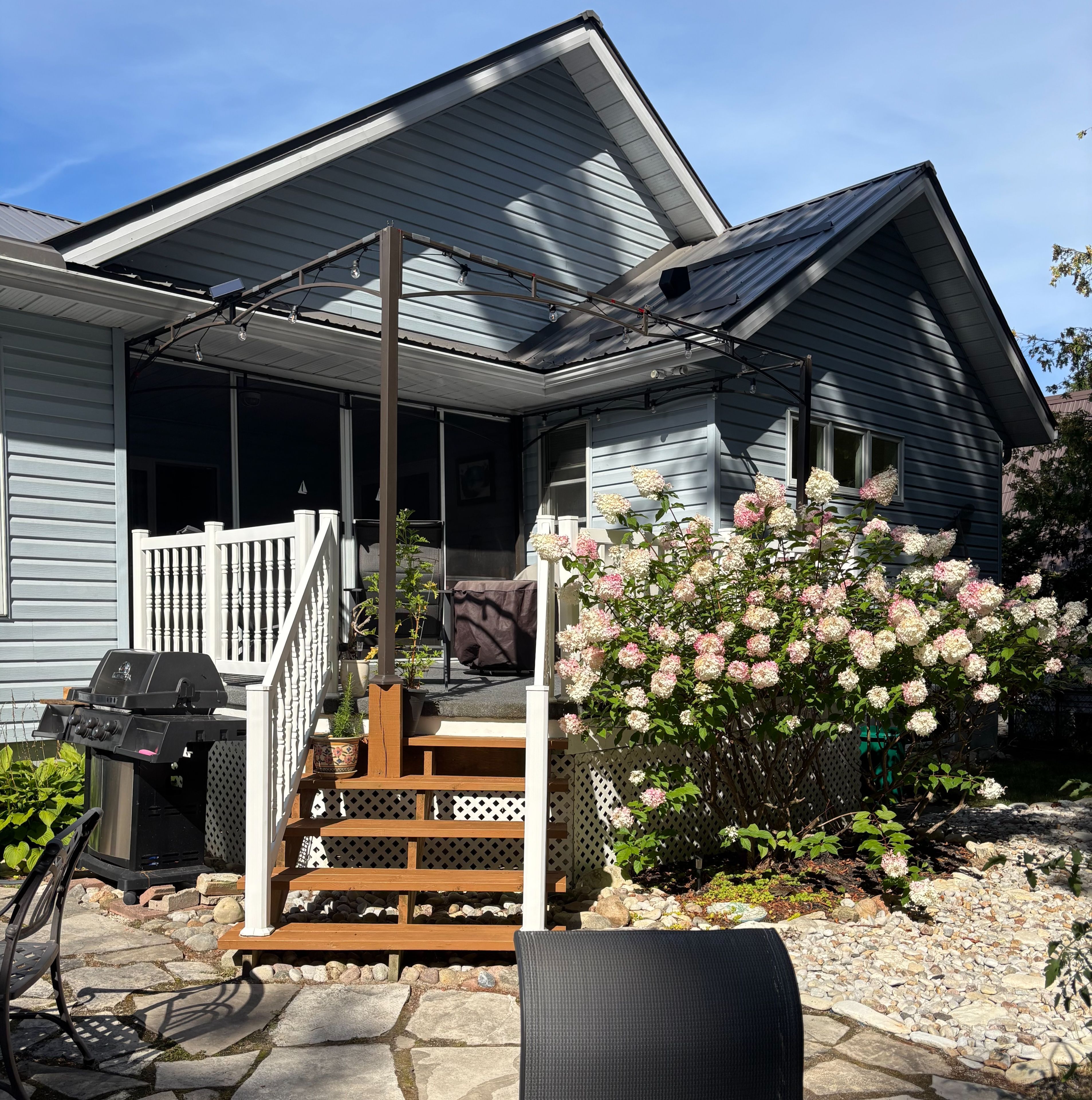 • Year-round sunroom and screened porch lead to a private, fenced backyard.