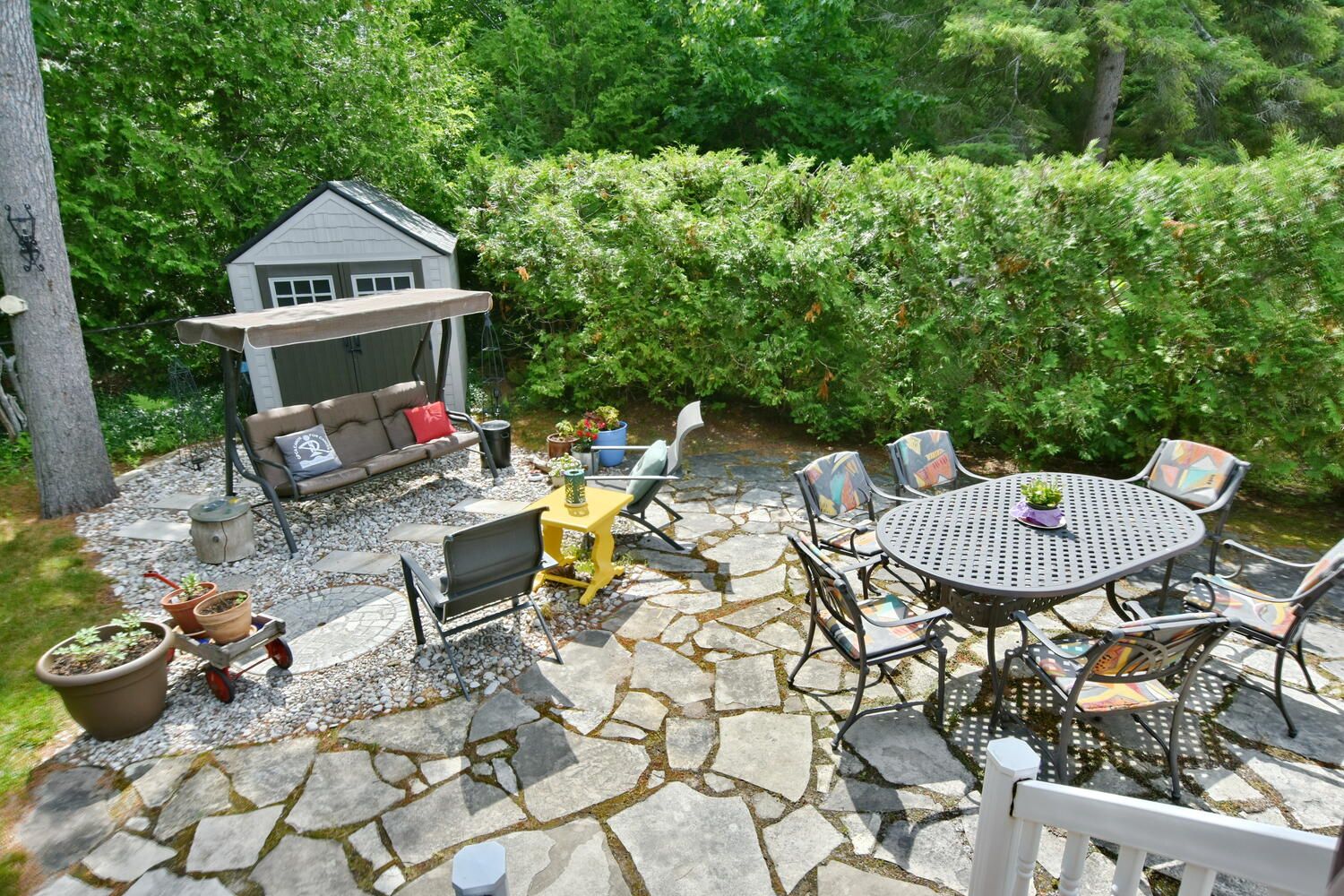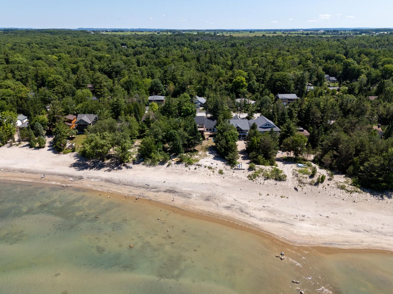 Welcome to this charming 3 bedroom home just steps away from the beautiful shores of georgian bay/allenwood beach and close to all amenities of wasaga beach. Enjoy this creative custom built floor plan with living space all on one floor featuring an open concept kitchen, living room with cathedral ceilings and gas fireplace and adjoining dining room. Large primary bedroom with ensuite and walk in closet, spacious second bedroom, 3 piece bath with main floor laundry, and additional bedroom currently being used as a den/tv room. There is a year round sunroom and also a screened in covered porch with an attached deck, large flagstone patio and fully fenced private back yard. This home also offers a fully accessible extra high crawl space (5'8") that is heated and air conditioned for lots of storage, 2 car garage with inside entry, large driveway for extra parking and just steps away from the closest path to the beach. Forced air gas furnace (2022) water heater (2024) and updated steel roof. Whether it's viewing sunsets from the charming front porch or spending time around the fire in the private backyard this low maintenance home can be enjoyed in every season.