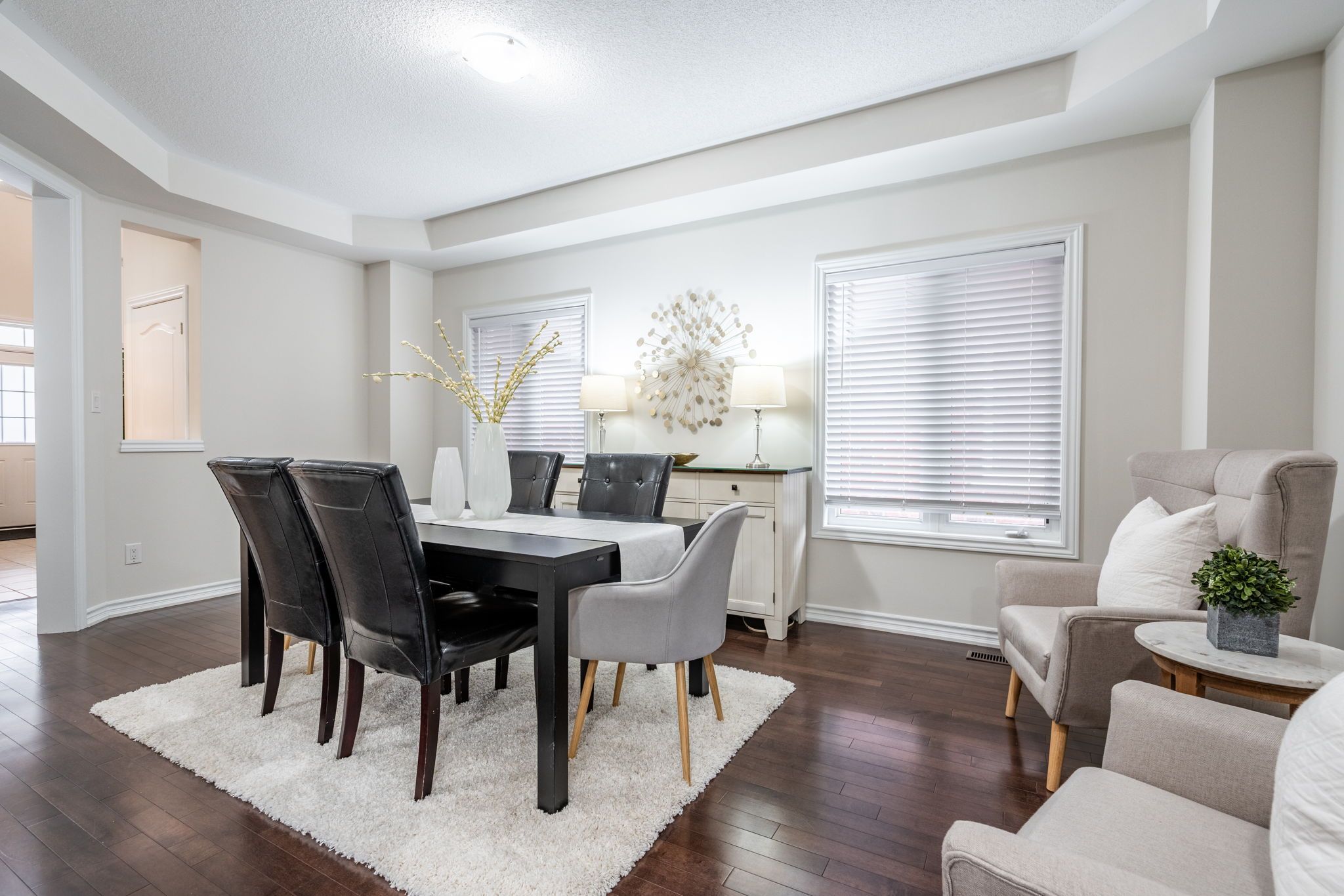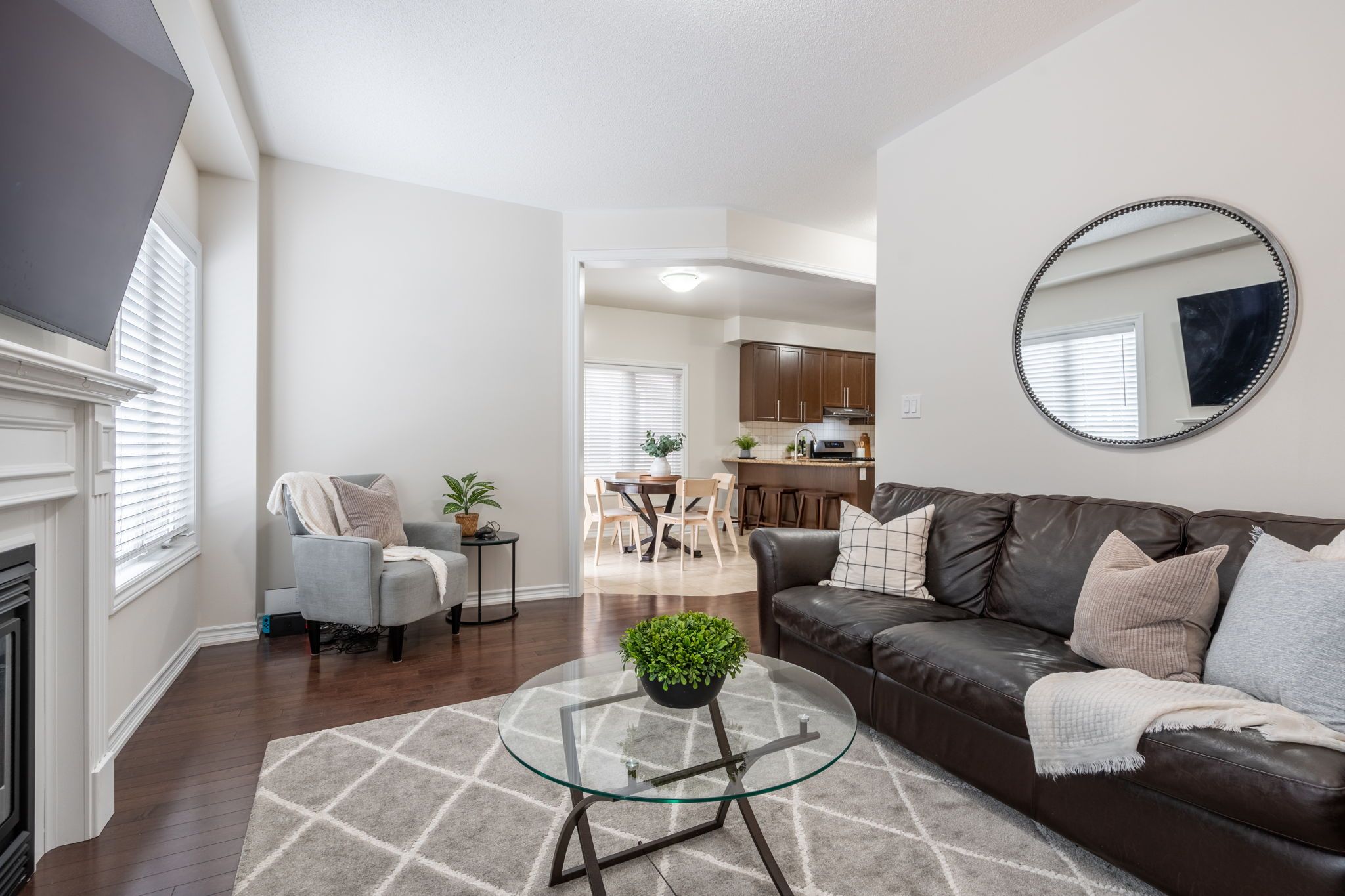 • Elegant dining room and inviting family room with a gas fireplace.