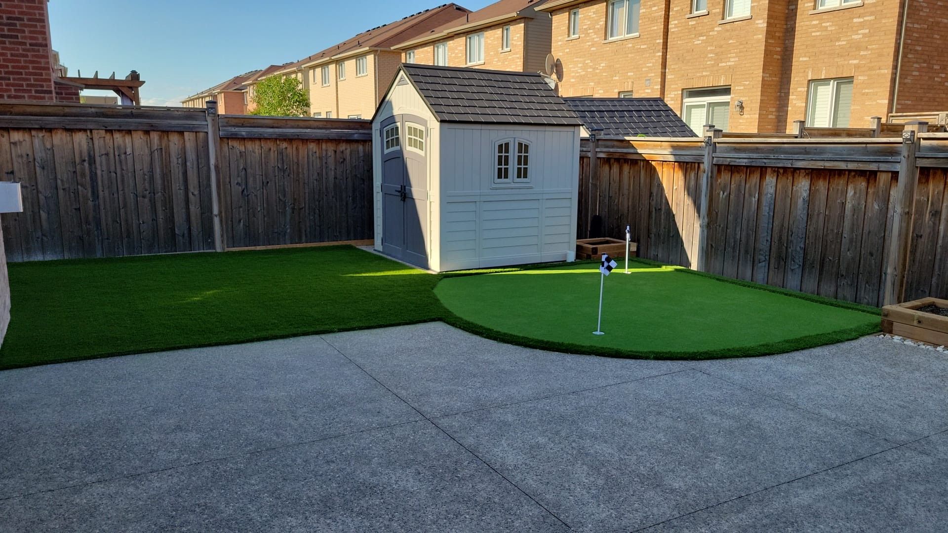 • Landscaped backyard with low-maintenance turf and golf putting green.