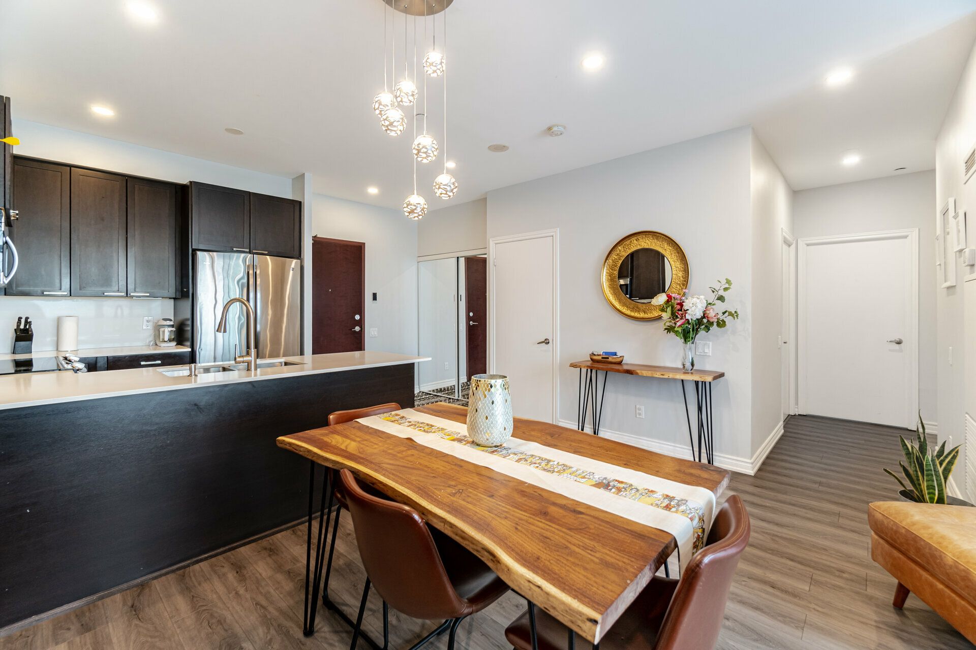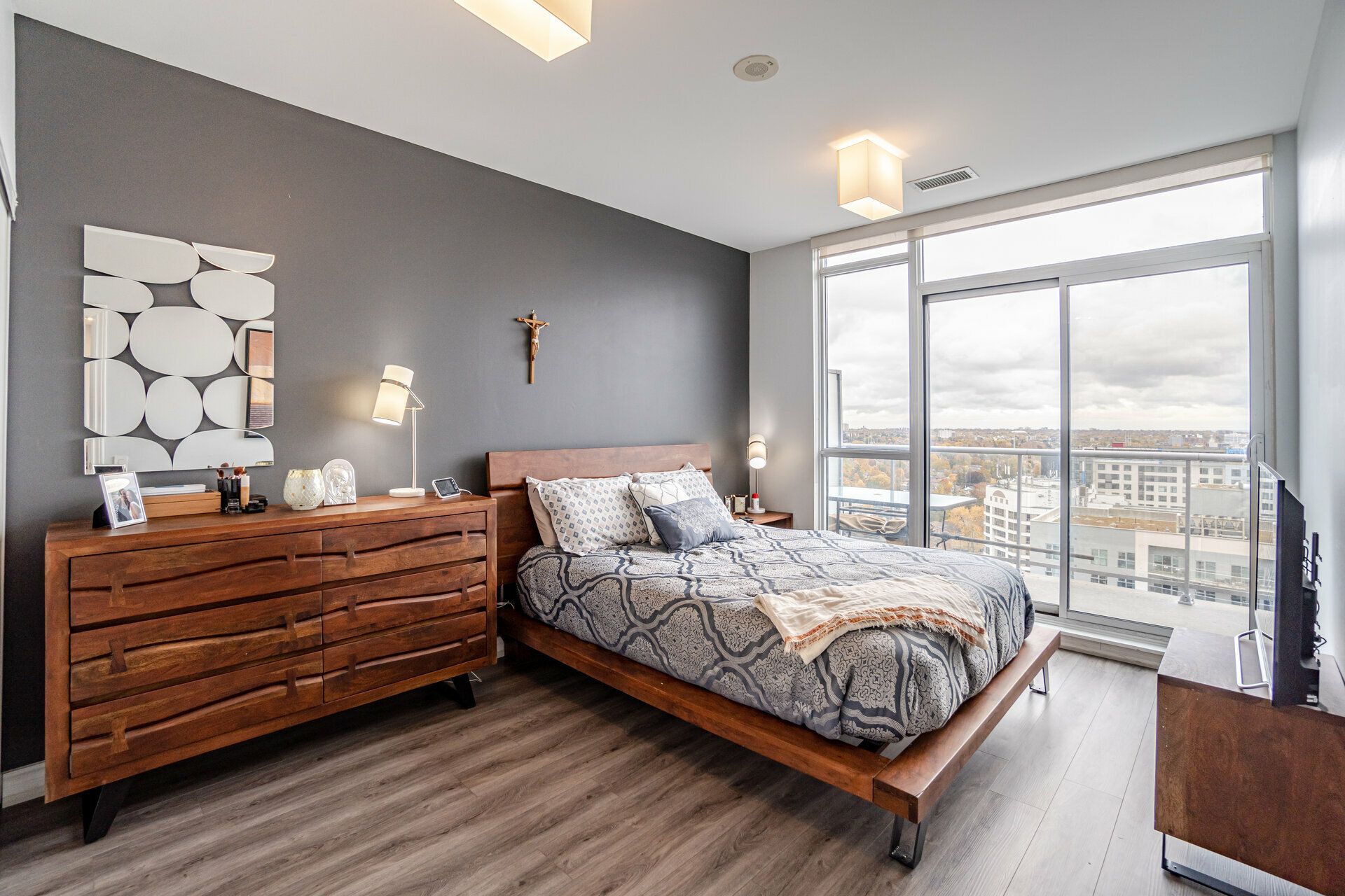 • Penthouse unit with 9-foot ceilings and impressive floor-to-ceiling windows.