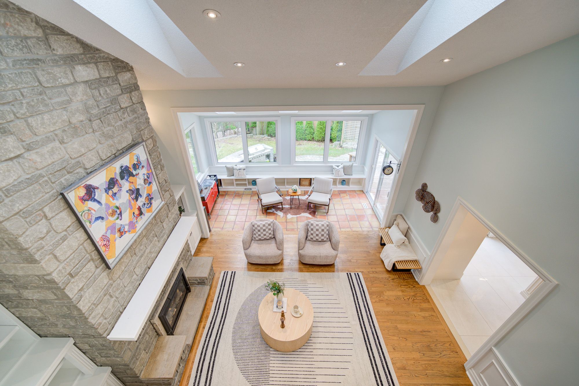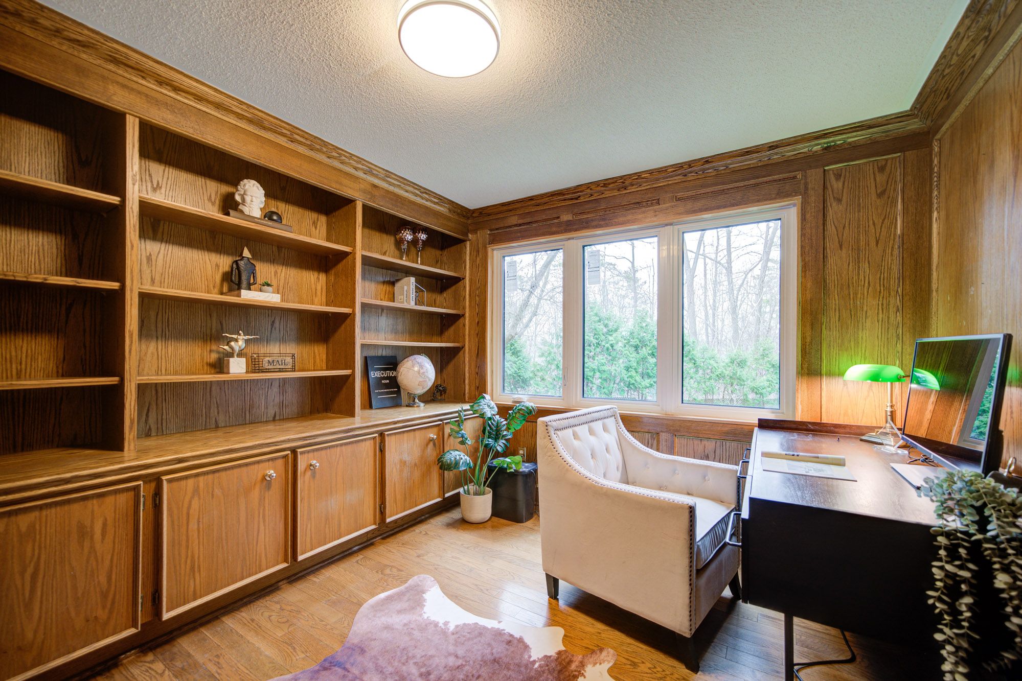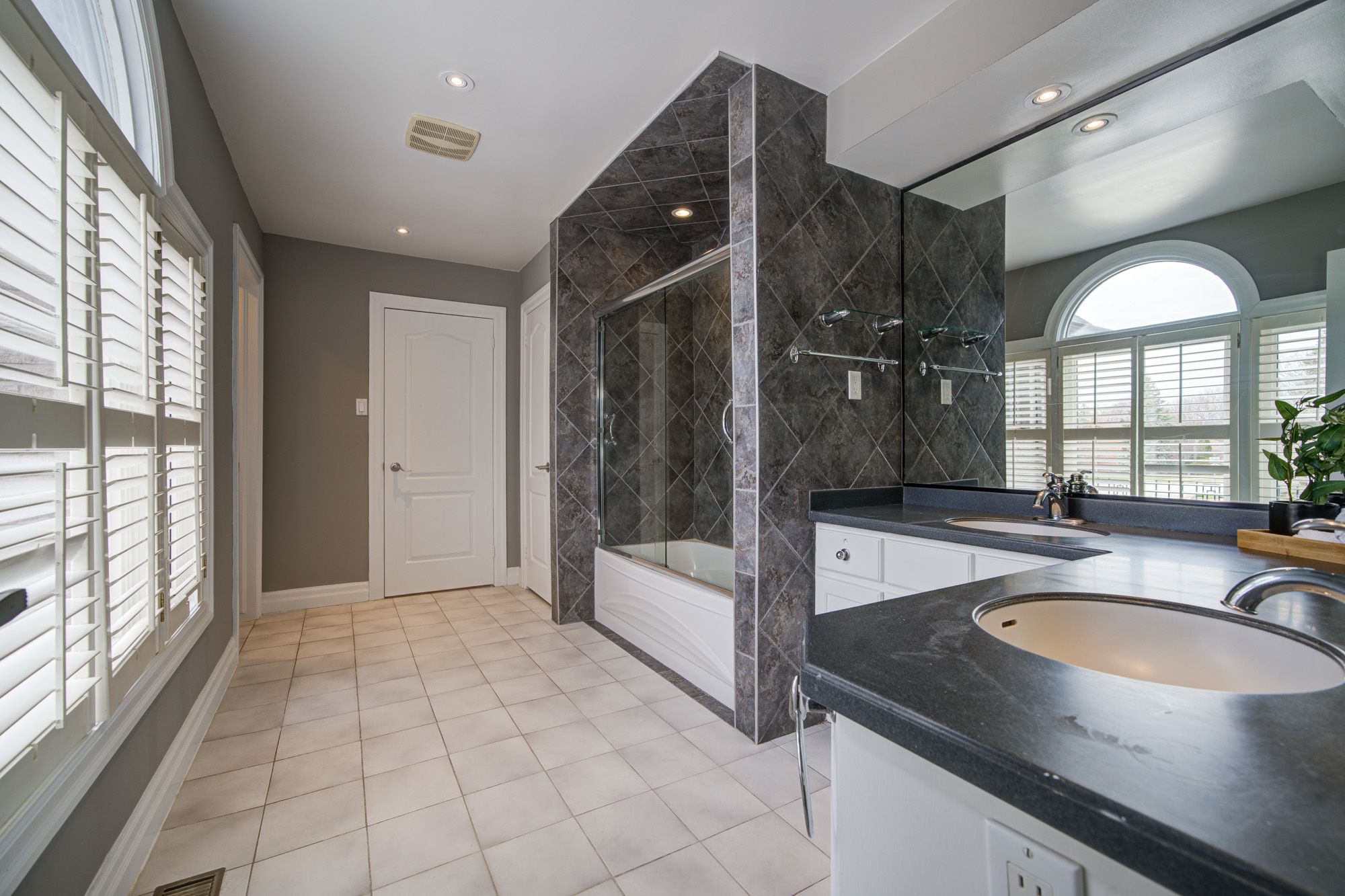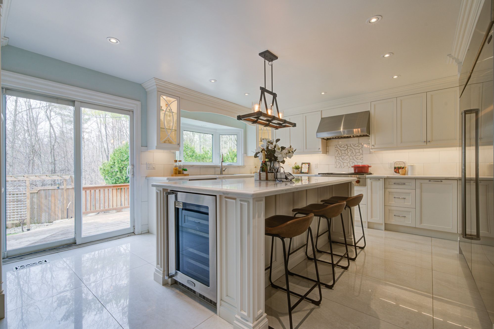 Enclaved in the woods, nestled on a premium ravine lot in an exclusive four-home cul-de-sac, this custom dalzotto-built estate offers approximately 4,000 sf above-grade living space, highlighted by a full-stone exterior, professionally interlocked driveway, landscaped backyard, all within walking distance to top-rated schools such as pilgrim wood ps &abbey park hs. Designed for both entertaining and everyday living, the main floor features a bright foyer leading to formal living and dining rooms, while the impressive family room showcases 17-foot sloped ceilings, five skylights, a dramatic floor-to-ceiling gas fireplace that flows into a sun-filled solarium. The chef's kitchen, renovated in 2016, with custom cabinetry, large center island, premium appliances, including sub-zero 36" freezer ,36"fridge set, a wolf 36" hood w/wall mount blower ,w gas cooktop, a double oven, an asko dishwasher, and a sharp under-counter microwave. The upper level offers four spacious bedrooms with floor-to-ceiling windows, including a primary suite with a walk-in closet w/ luxurious 5-piece ensuite, two bedrooms connected by a jack&jill 5-piece bathroom, a fourth bedroom with its own private 4-piece ensuite. The expansive lower level, with a separate entrance, adds exceptional versatility with a large recreation room, a games room, a fifth bedroom or den with a 4-piece bath, a cold room, ample storage. The private backyard retreat features over 135 feet of ravine frontage a saltwater heated pool with a new liner (21), a 1. 5 hp pump (23), an updated sand filter (23), along with additional upgrades such as a new deck ,bbq (16), backyard fencing and two wood sheds (2019), back & side triple-pane window replacements (21), a owned hot water tank (25). Attic insulation upgrade (21). An upgraded gas meter supports multiple features simultaneously, including two gas fireplaces, a gas stove, fire pit, bbq, two furnaces, ensuring this exceptional home delivers luxury , outstanding performance.