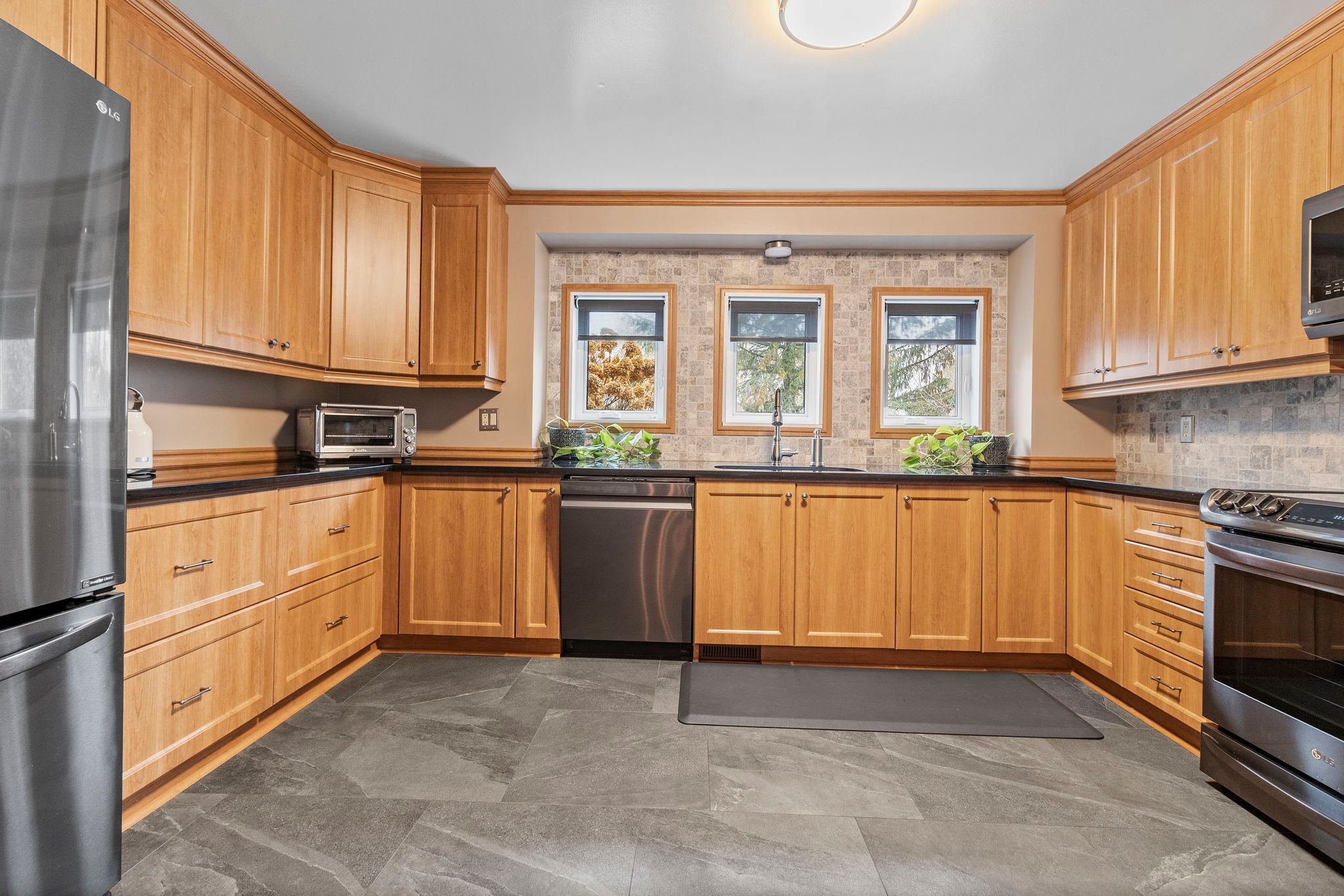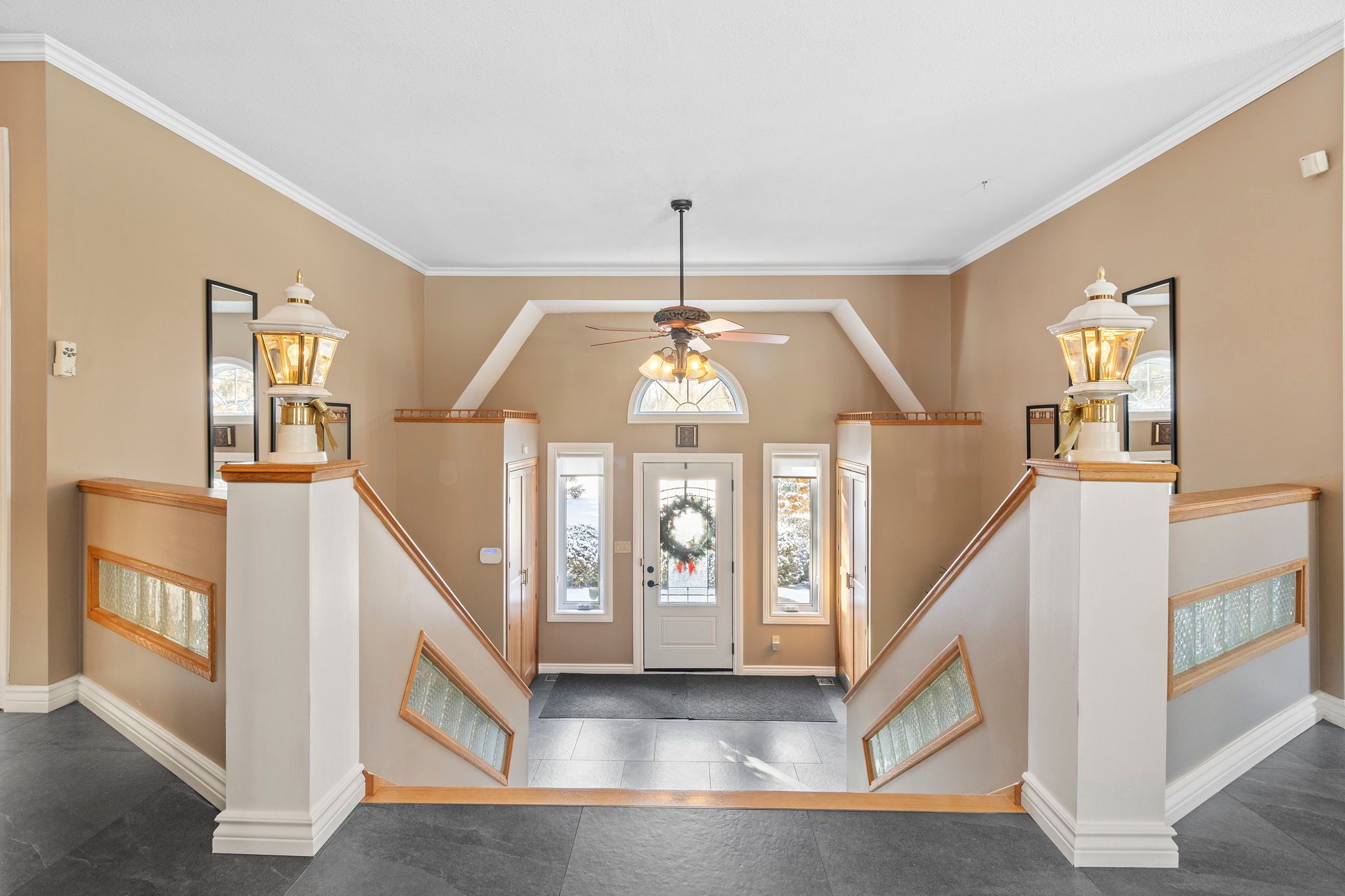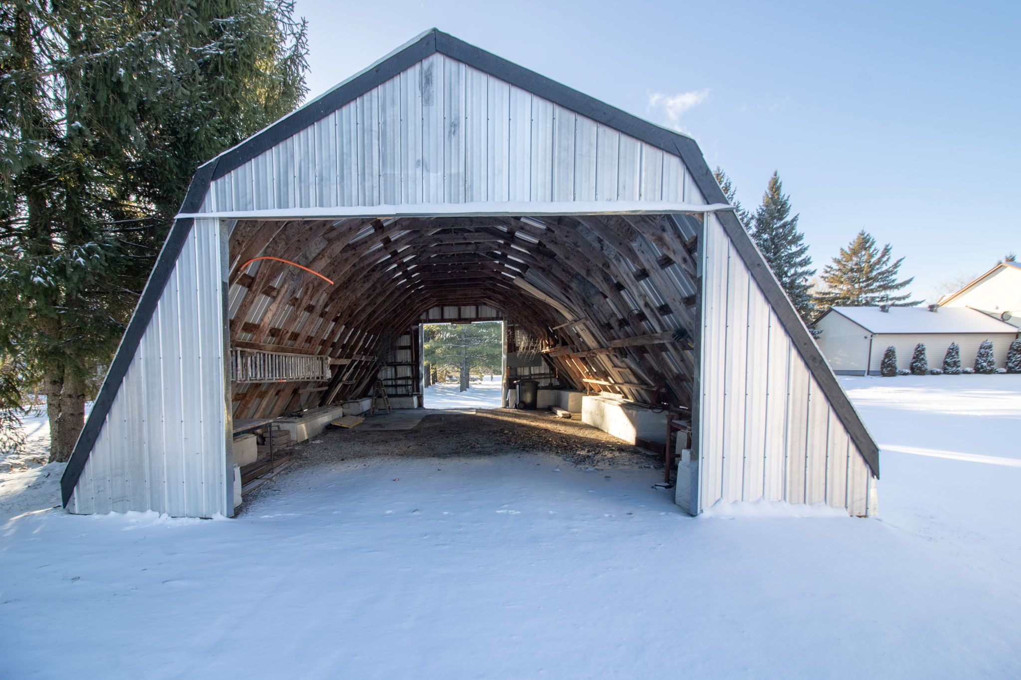 Welcome to an exceptional property offering unmatched privacy, natural beauty, and refined living on 23. 74 acres of mature, meticulously maintained grounds. This serene estate showcases lush landscaping, stately trees, and thoughtfully cultivated gardens, creating an oasis ideal for nature lovers and hobbyists. The property includes a greenhouse, apple trees, raspberry and blueberry bushes, and established asparagus beds, providing fresh, homegrown produce through the seasons. A charming small pond becomes the perfect spot for winter skating, while a scenic creek running through the back offers a peaceful setting for canoeing and kayaking right at home. Inside, the home is bright, airy, and designed for both comfort and functionality. The beautifully updated kitchen and dining area flow effortlessly for everyday living and entertaining. The sunken living room serves as a stunning focal point-featuring a wood-burning fireplace set against a dramatic stone wall, creating a warm and inviting atmosphere. A stylish bar area off the dining room adds convenience for hosting. The home offers spacious bedrooms, including an impressive primary suite with custom cabinetry providing exceptional storage. A unique bonus room-makes an ideal home office, library, or creative studio. Practicality is built in with a main-floor laundry room, while the fully finished basement offers additional living space with a cozy pellet stove, extensive built-in storage, and a second laundry room for added convenience. For hobbyists, tradespeople, or business owners, the property includes an expansive 110' x 30' workshop complete with office space, 400-amp service, and a 3-phase converter-providing exceptional capability for a variety of uses. The attached garage includes direct access to the basement, enhancing functionality. This rare property blends luxury, comfort, and natural tranquility-an extraordinary opportunity for anyone seeking a private retreat with all the amenities of a high-end home.