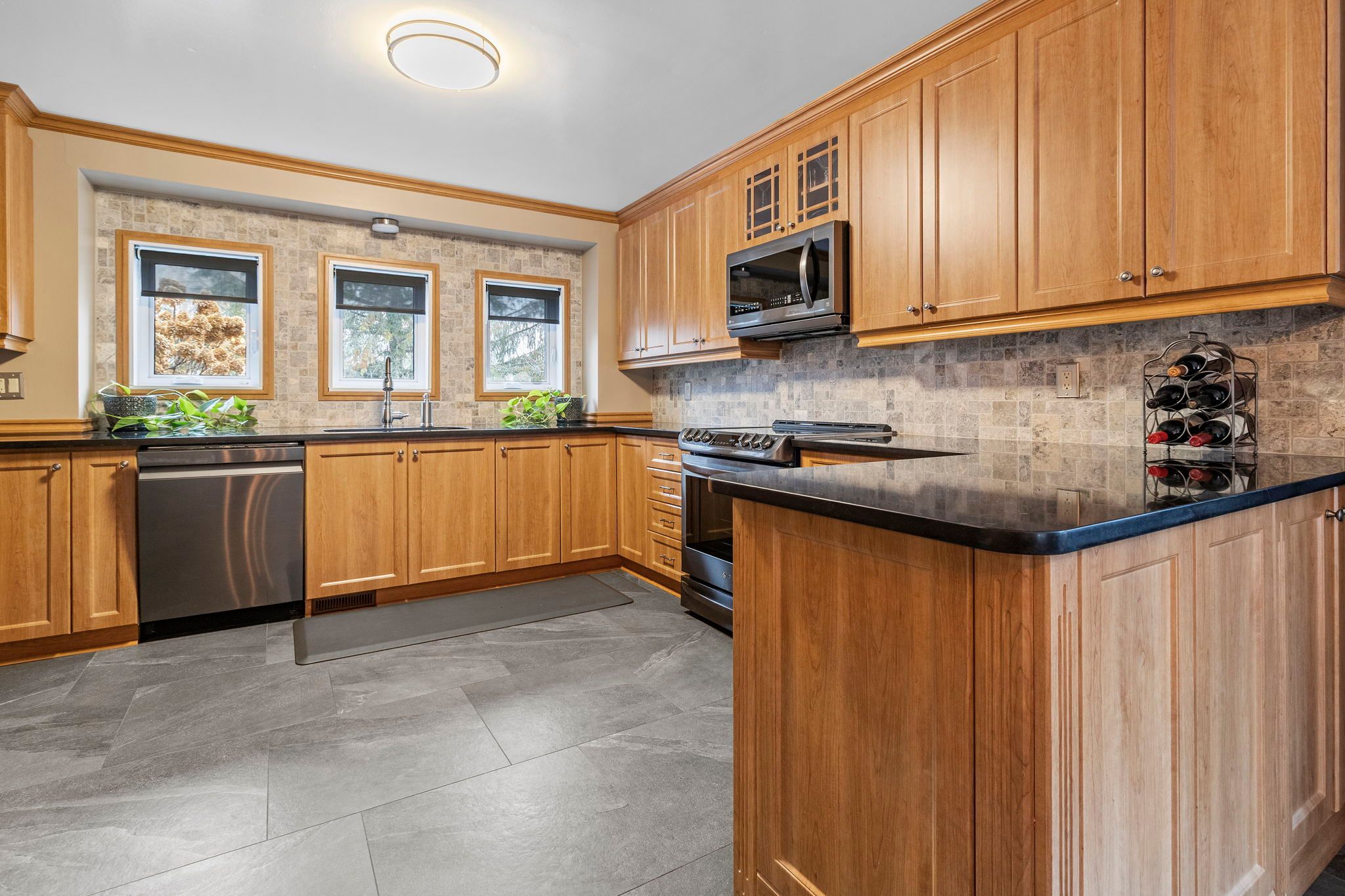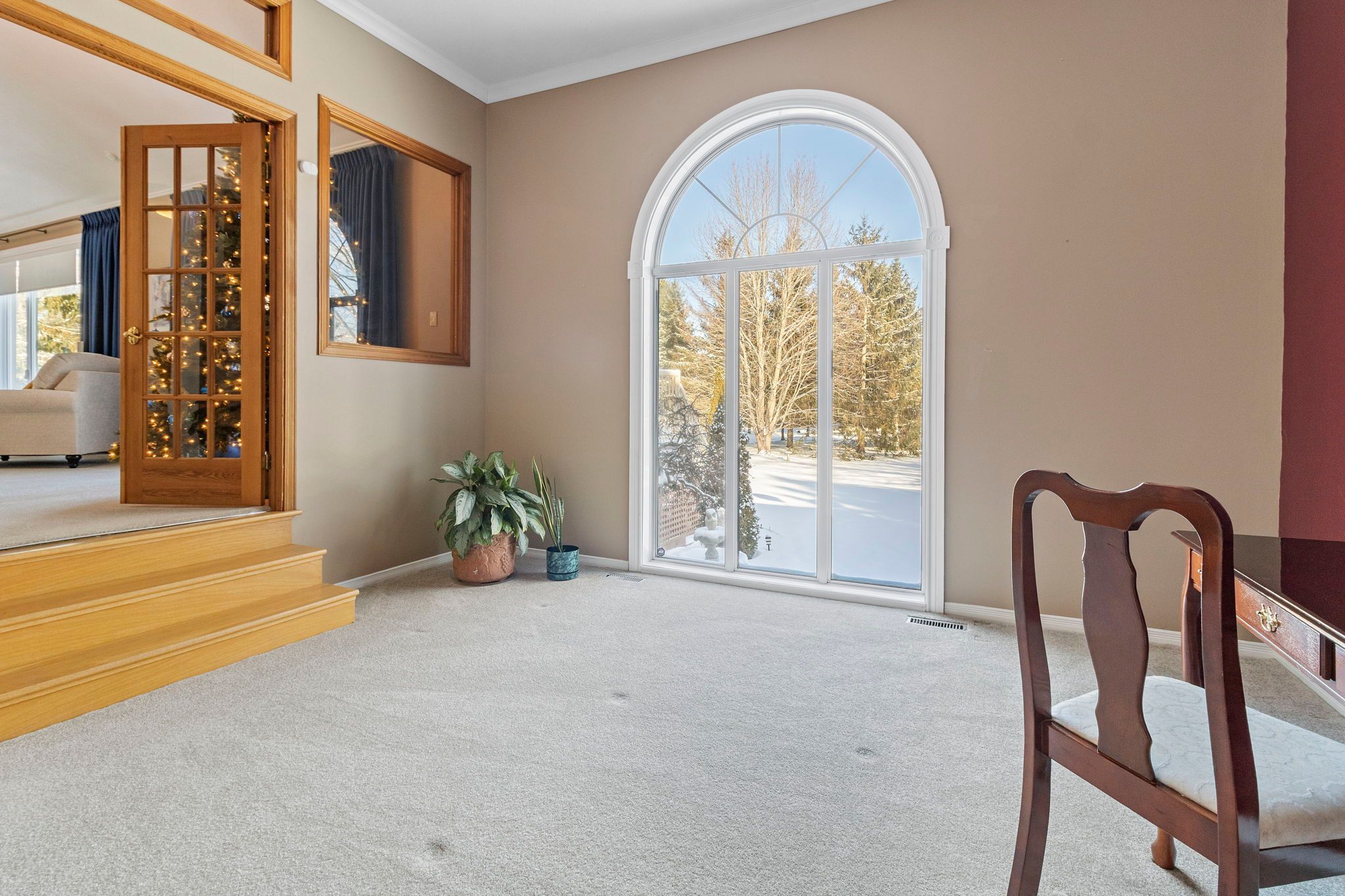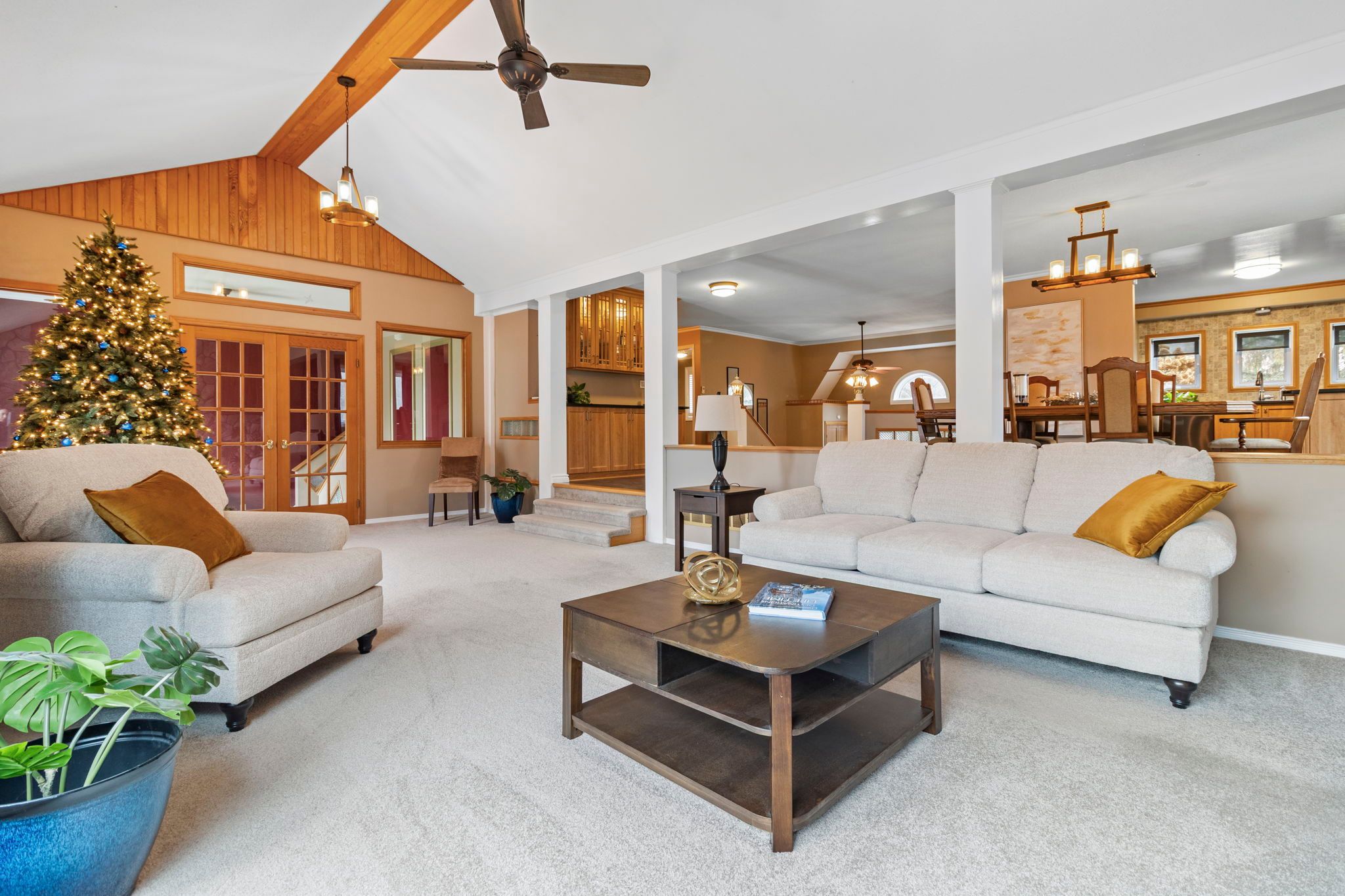 Welcome to an exceptional property offering unmatched privacy, natural beauty, and refined living on 23. 74 acres of mature, meticulously maintained grounds. This serene estate showcases lush landscaping, stately trees, and thoughtfully cultivated gardens, creating an oasis ideal for nature lovers and hobbyists. The property includes a greenhouse, apple trees, raspberry and blueberry bushes, and established asparagus beds, providing fresh, homegrown produce through the seasons. A charming small pond becomes the perfect spot for winter skating, while a scenic creek running through the back offers a peaceful setting for canoeing and kayaking right at home. Inside, the home is bright, airy, and designed for both comfort and functionality. The beautifully updated kitchen and dining area flow effortlessly for everyday living and entertaining. The sunken living room serves as a stunning focal point-featuring a wood-burning fireplace set against a dramatic stone wall, creating a warm and inviting atmosphere. A stylish bar area off the dining room adds convenience for hosting. The home offers spacious bedrooms, including an impressive primary suite with custom cabinetry providing exceptional storage. A unique bonus room-makes an ideal home office, library, or creative studio. Practicality is built in with a main-floor laundry room, while the fully finished basement offers additional living space with a cozy pellet stove, extensive built-in storage, and a second laundry room for added convenience. For hobbyists, tradespeople, or business owners, the property includes an expansive 110' x 30' workshop complete with office space, 400-amp service, and a 3-phase converter-providing exceptional capability for a variety of uses. The attached garage includes direct access to the basement, enhancing functionality. This rare property blends luxury, comfort, and natural tranquility-an extraordinary opportunity for anyone seeking a private retreat with all the amenities of a high-end home.