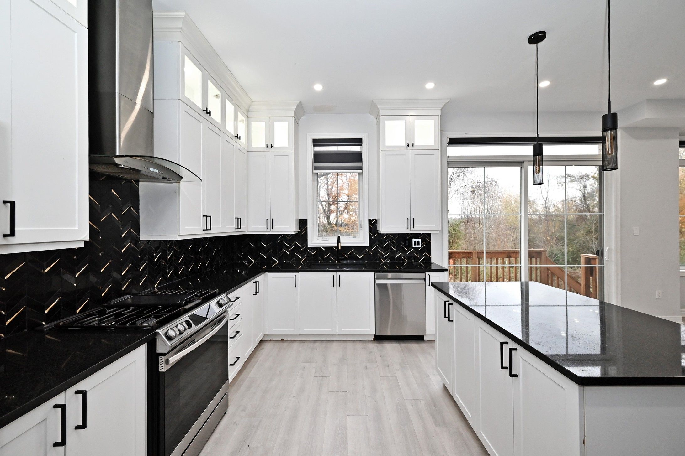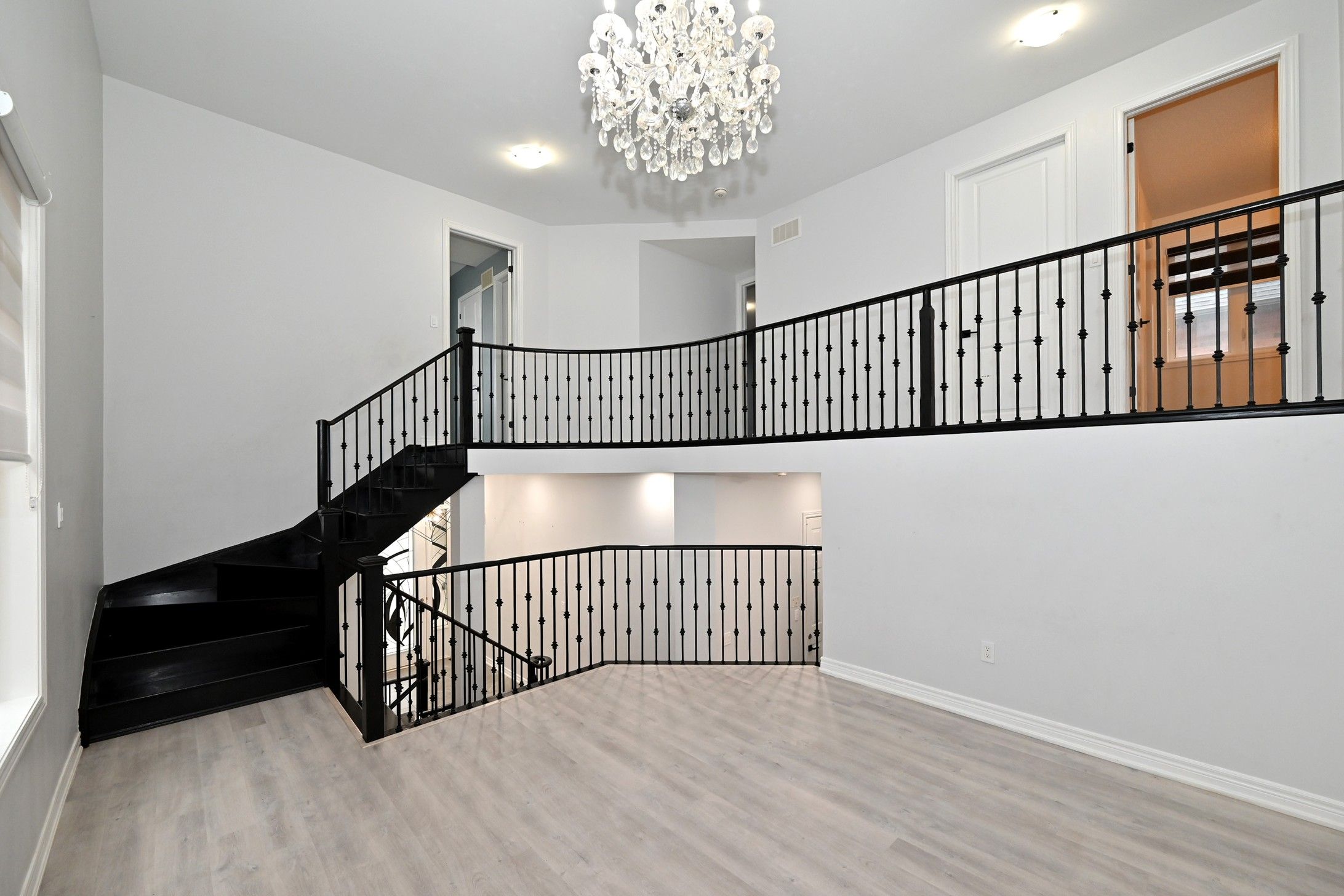 Welcome to 133 auckland drive, an exquisite arista-built residence offering over 3000 sq ft of refined living in the prestigious williamsburg neighbourhood of whitby. Completed in december 2020, this elegant 4-year-new home showcases exceptional craftsmanship, modern design, and high-end finishes throughout. The main level features gleaming engineered hardwood floors, a dark-stained oak staircase with wrought iron accents, and soaring 10-foot ceilings that create a bright, spacious ambiance. The gourmet kitchen impresses with extended cabinetry, a pantry for storing large pots, pans, and dry goods, built-in stainless steel appliances including a french door refrigerator and six-burner gas stove for the culinary connoisseur, and a generous open-concept layout featuring a quartz countertop island perfect for family gatherings. Enjoy an airy mid-level loft with extra-tall windows overlooking the foyer and living area, ideal for family entertainment and relaxation. The second level boasts 9-foot ceilings, while the primary suite offers a 10-foot coffered ceiling, a lavish spa-like 5-piece ensuite bath, and two walk-in closets. Each of the four bedrooms has direct access to a bathroom, with two designed as full primary suites-perfect for multi-generational living. A convenient second-floor laundry adds everyday ease. Set on a premium ravine lot, the home boasts a walkout basement with scenic views and endless potential for an in-law suite or recreation space. The fully fenced yard provides a peaceful outdoor retreat for family time and entertaining. Perfectly positioned near highways 4 and 412 at the whitby-ajax border, enjoy an upscale, family-friendly community with large detached homes, beautifully maintained streets, just a 26-minute commute to markham and 50 minutes to toronto. This property truly embodies luxury, comfort, and location-the perfect place to call home. Don't miss this rare opportunity to own one of whitby's finest residences!