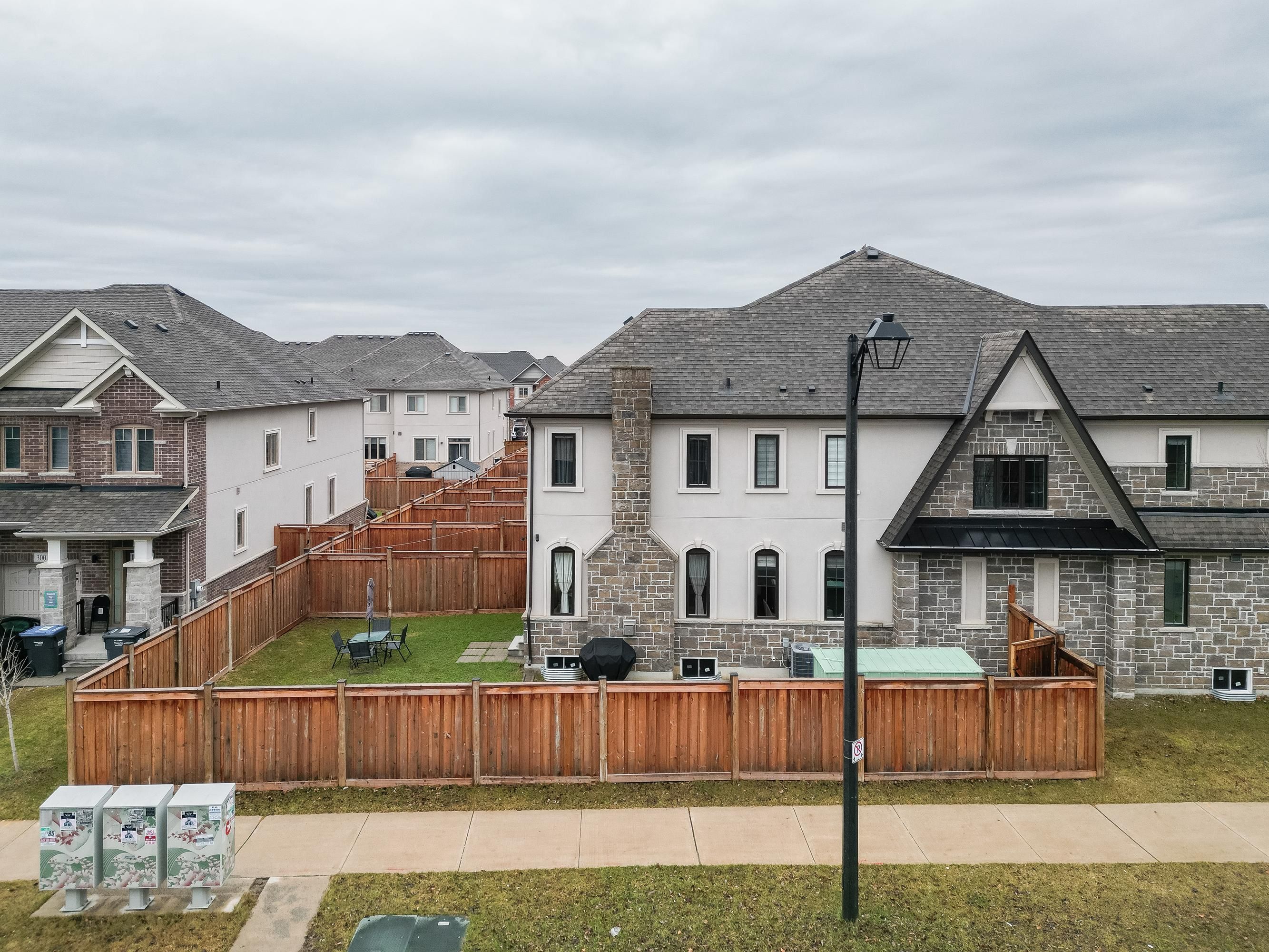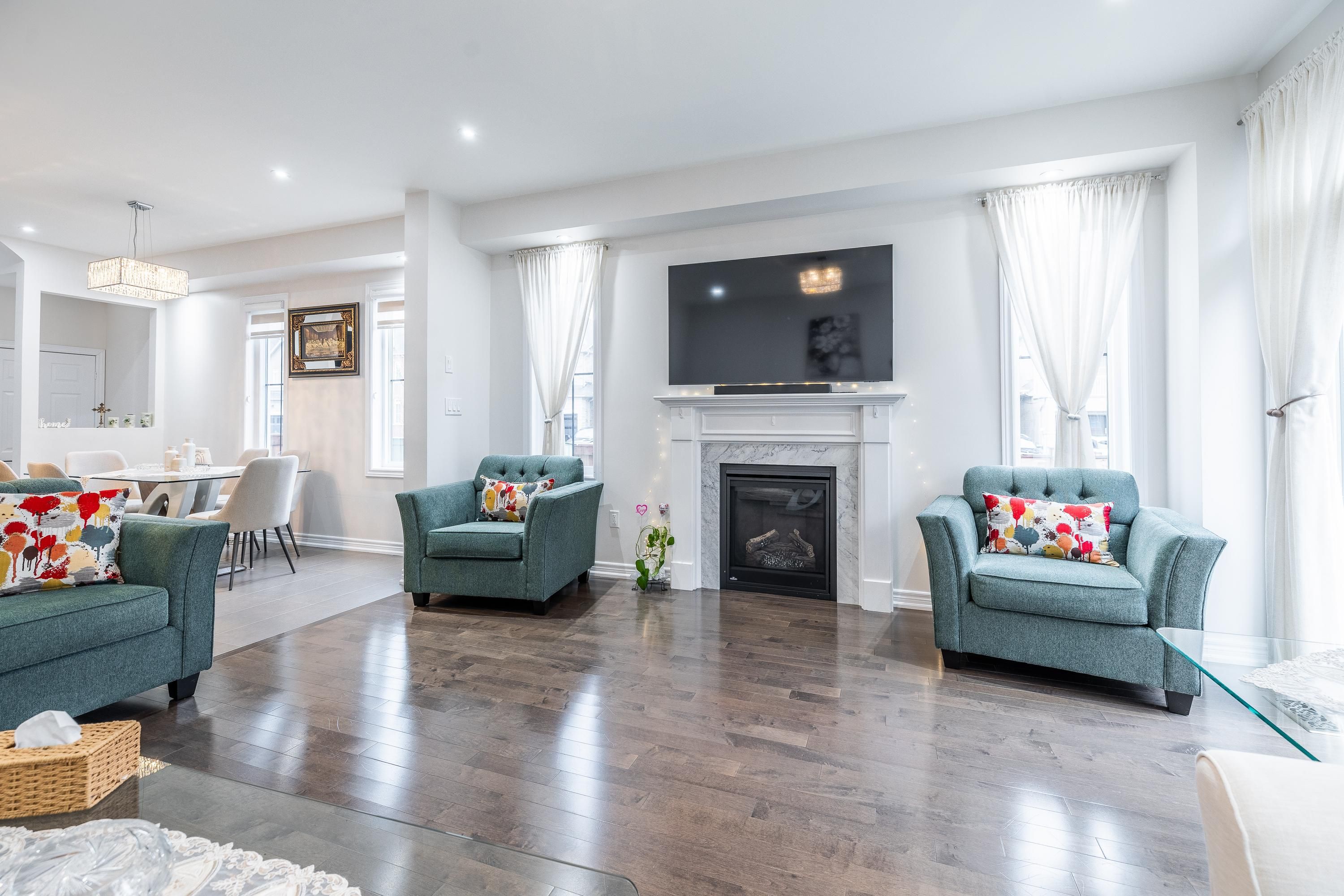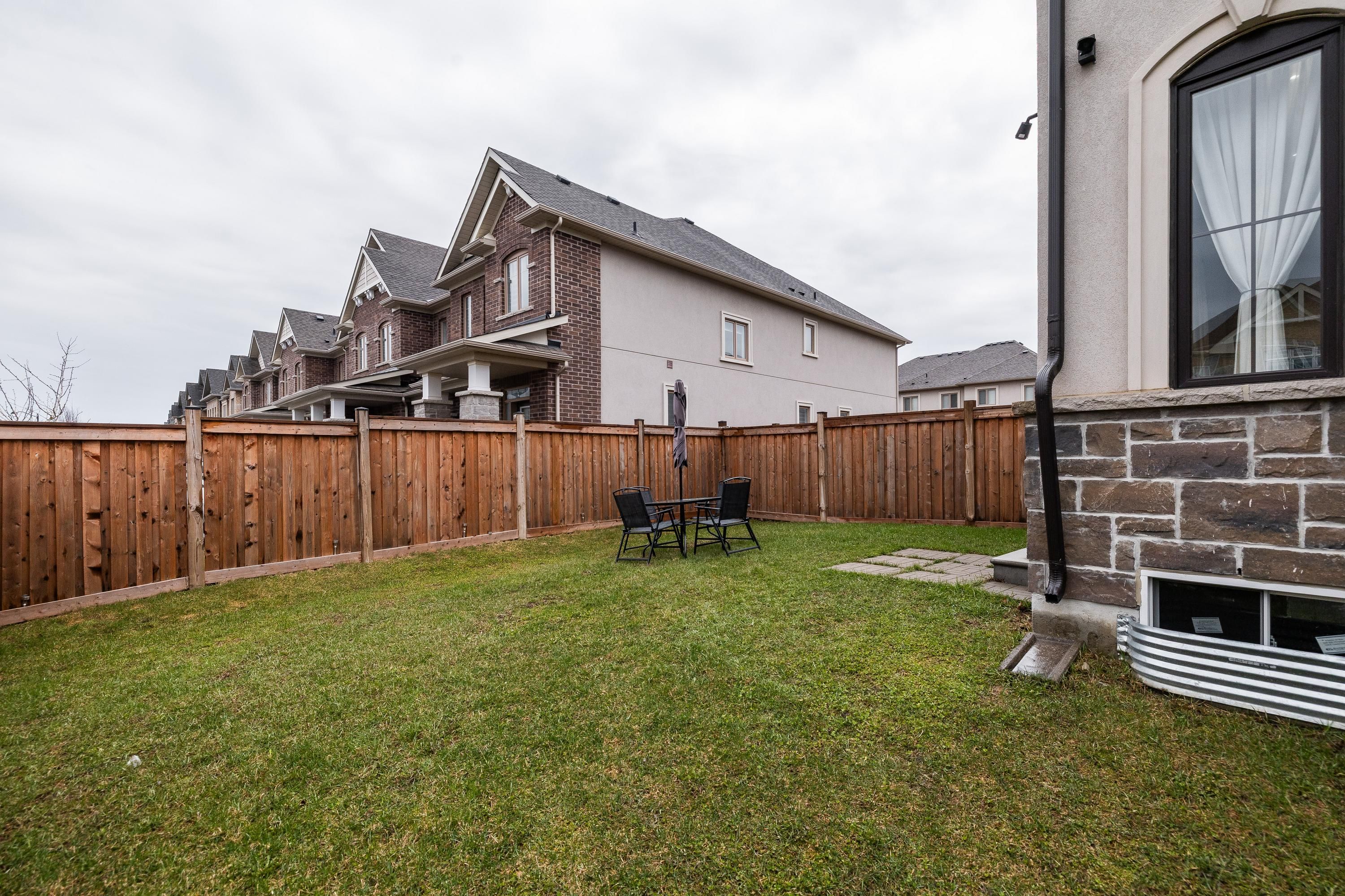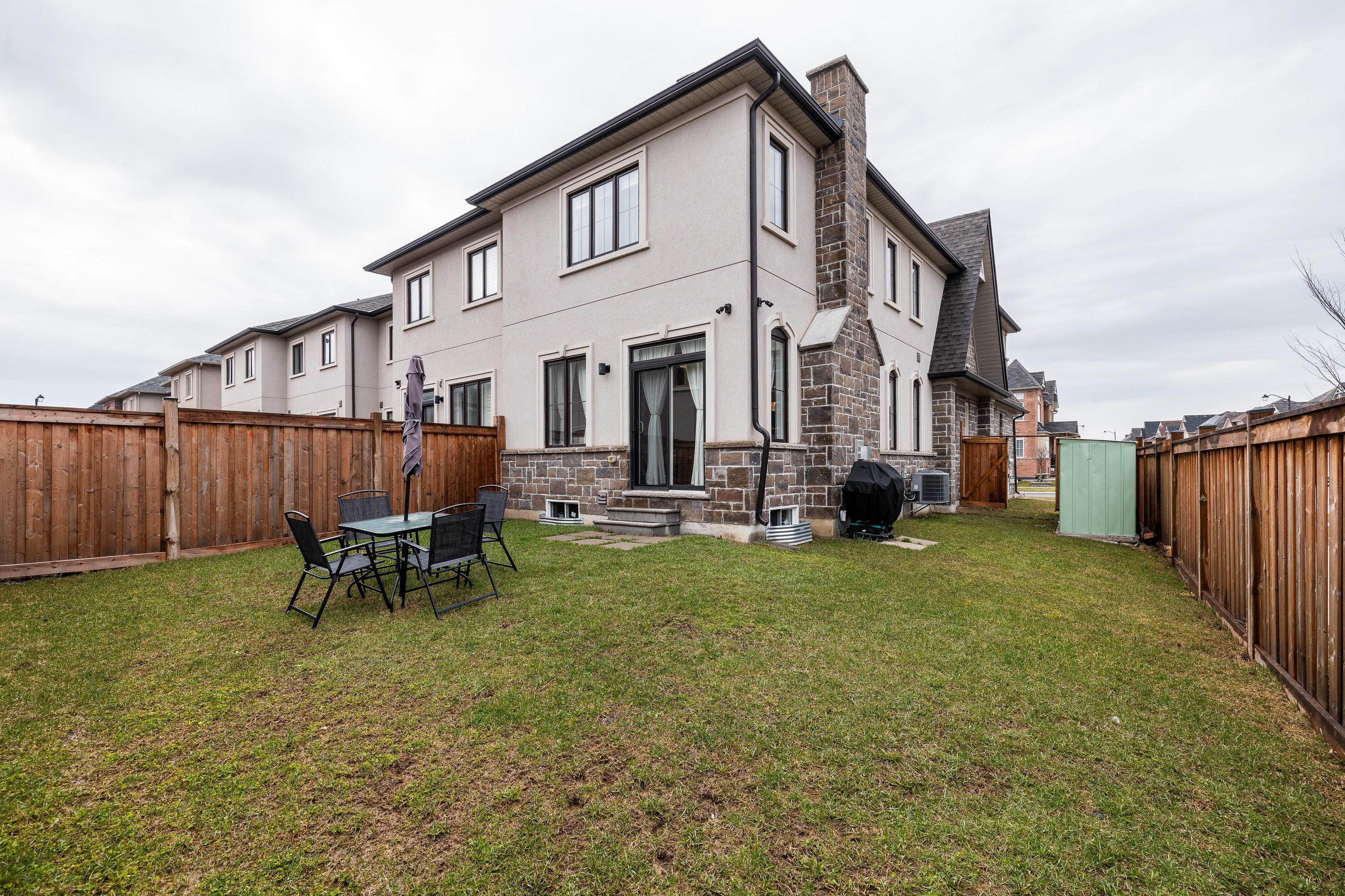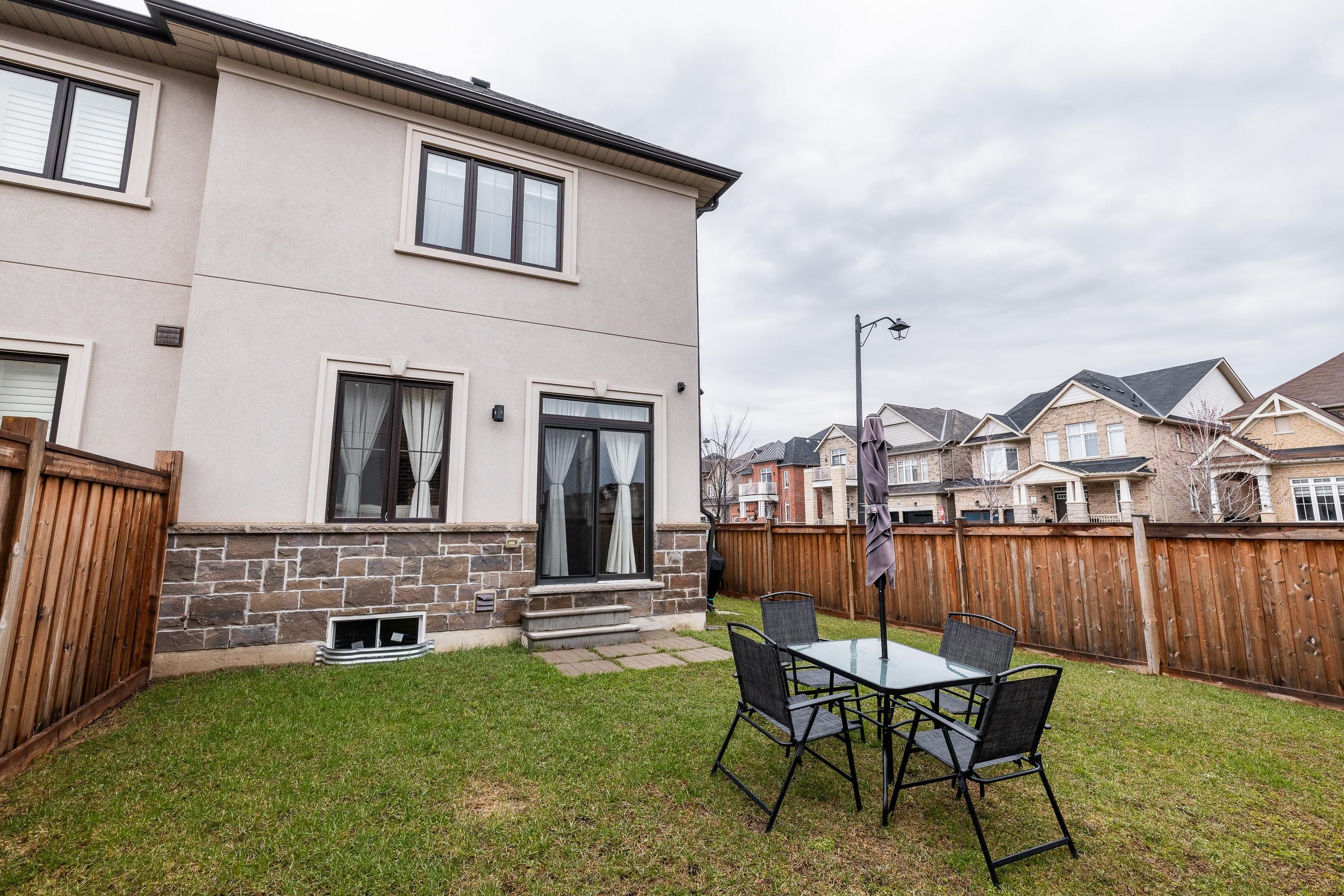 Welcome home. Nestled in the prestigious southfields village community of caledon, this exceptional freehold ((no fee!) end-unit townhome featuring the sought after sundial 9 model with approximately 2,036 square feet delivers a rare combination of space, natural light, privacy, and long-term value. Step inside to experience a bright, open-concept layout enhanced by 9 foot ceilings on the main floor and upgraded smooth ceilings throughout, creating a refined and airy atmosphere. The main level is further elevated with upgraded hardwood flooring and hardwood stairs, complemented by a stylish upgraded powder room for added convenience. The spacious ground-floor living room is anchored by a beautiful, cozy gas fireplace, perfect for everyday living and effortless entertaining. At the heart of the home, the upgraded kitchen showcases a large quartz island, ideal for meal preparation, casual dining, and gathering with family and guests. The premium end-unit positioning allows for abundant natural light to flow throughout the home, enhancing its warm and inviting feel. Upstairs, the sun-filled oversized primary retreat offers a generous walk-in closet and a spa-like 4-piece ensuite. Two additional bedrooms, a bathroom and a second level laundry room adds practicality and ease to daily living. Outside, the oversized lot provides exceptional outdoor space rarely found in townhomes-perfect for hosting large gatherings, summer entertaining, or simply enjoying added privacy. The basement with its upgraded oversized windows presents outstanding future potential to create additional bedroom(s), expanded living space, or a potential income-generating suite (buyer/buyer agent to verify). Ideally located just minutes from major highways, schools, parks, and everyday amenities, this home offers both convenience and lifestyle in caledon's most sought-after communities.