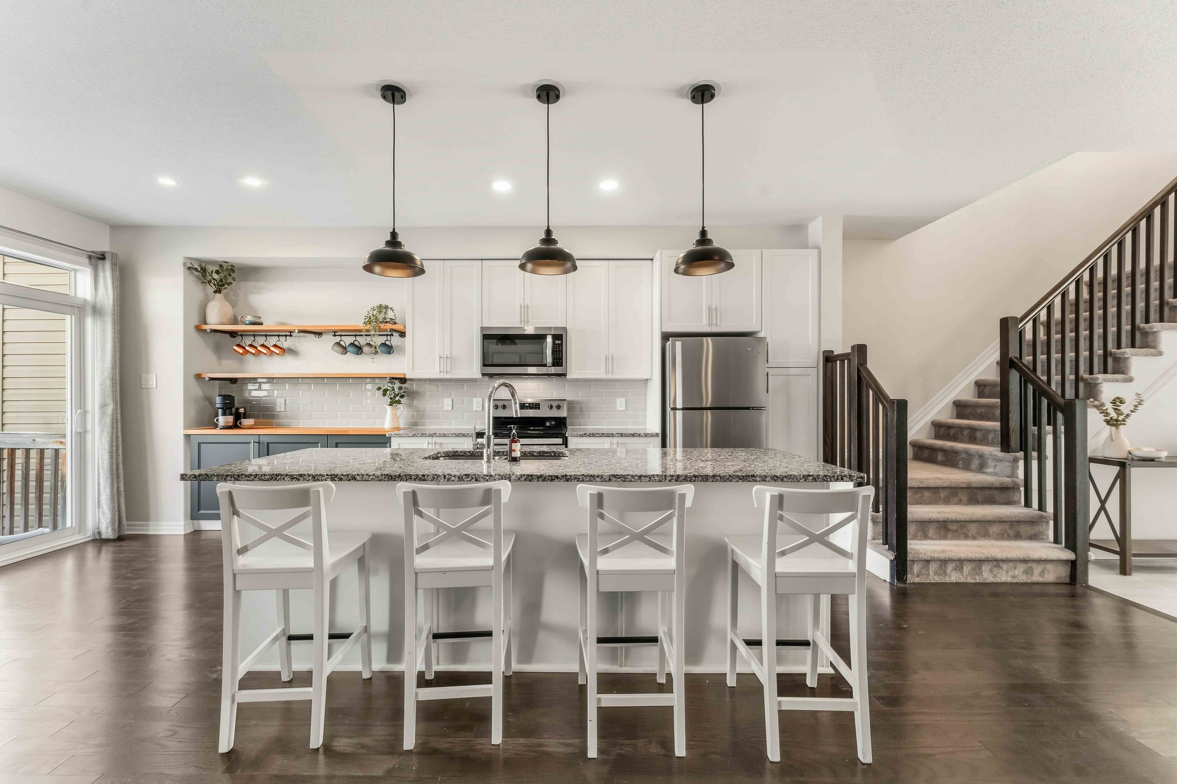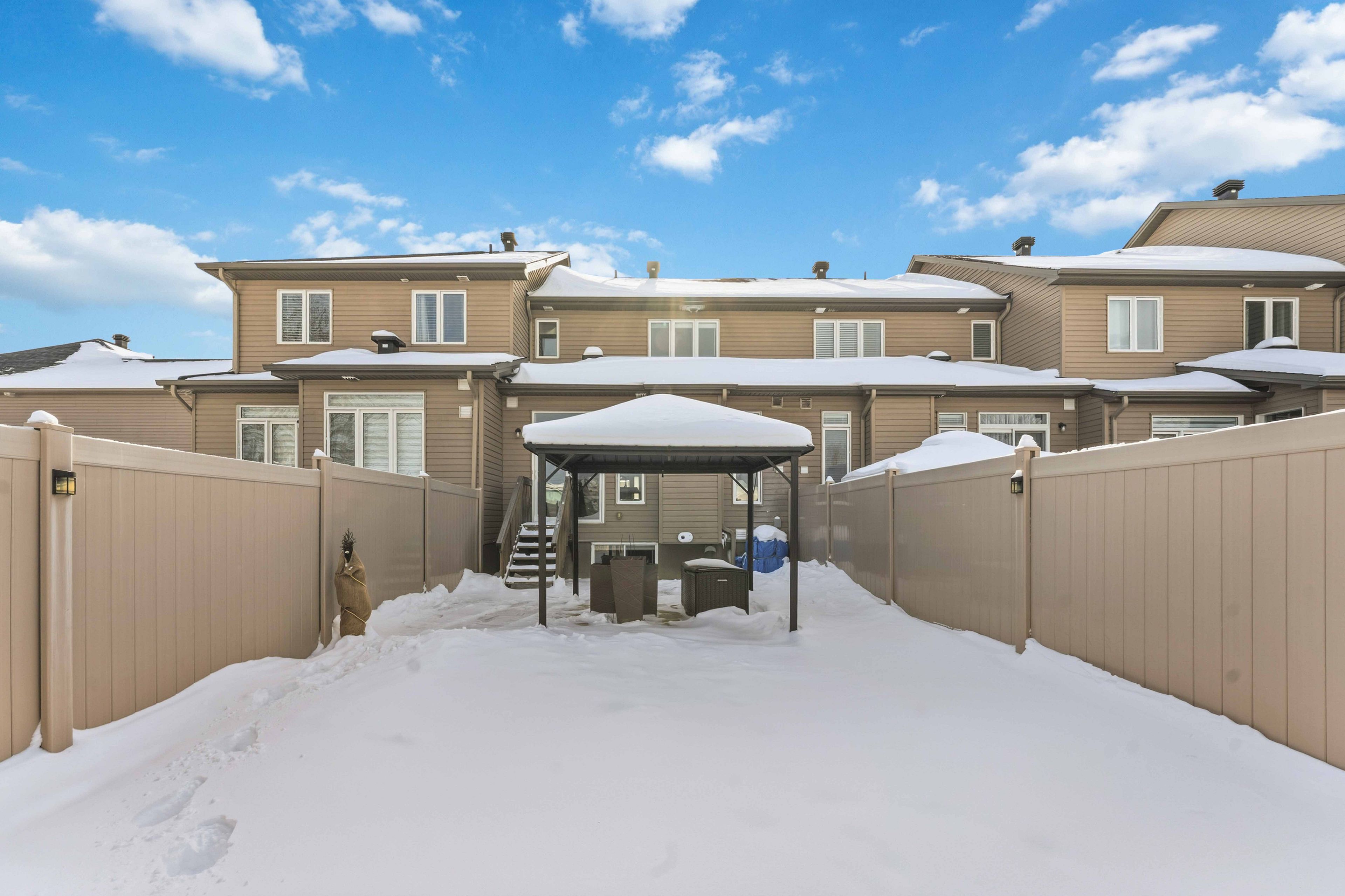 Welcome to this stylish 3-bed townhome on a quiet cul-de-sac in sought-after chapel hill south. Offering 1,825 sq ft including the finished basement. This well-maintained 2-storey home combines smart design with thoughtful upgrades in a growing east-end community. The main level features a welcoming large entry way with a 2 piece bathroom and access to your garage. You'll also notice an open-concept layout with a modern kitchen, extended cabinetry into the eat-in area with on-trend open shelving, a spacious living room area with a gas fireplace, a dining room fit to entertain, and direct access to the backyard-ideal for playing, quietly enjoying or hosting. Let's not forget to mention that while this home has no front neighbours, the backyard faces a small bungalow with a huge lot. So you get even more natural light filling the space and fewer rear neighbours! Upstairs, you'll find two generous bedrooms and a full bath, as well as a roomy primary bedroom with a walk-in closet and 3 piece ensuite bathroom giving you all the privacy you need for a little retreat. If this weren't enough space, the finished basement adds valuable flexible space for a rec room, home office, or guest area with a large window for natural light and so much storage space. Want a bathroom down there? No problem! There is a rough-in already there for you future reno! Enjoy summer evenings on the oversized deck, complete with a gazebo and bug screen for shade, and a natural gas line for your bbq. Additional highlights include an attached 1-car garage, laneway parking for two more vehicles, and updates throughout. With easy access to parks, trails, schools, transit, shopping and everyday amenities, this is one you won't want to miss!