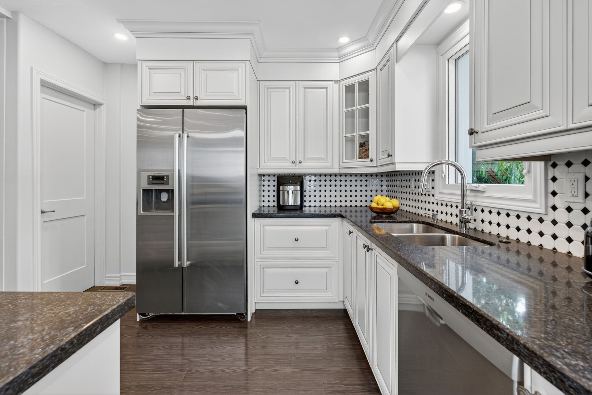 • Custom kitchen with granite countertops, ideal for entertaining guests.