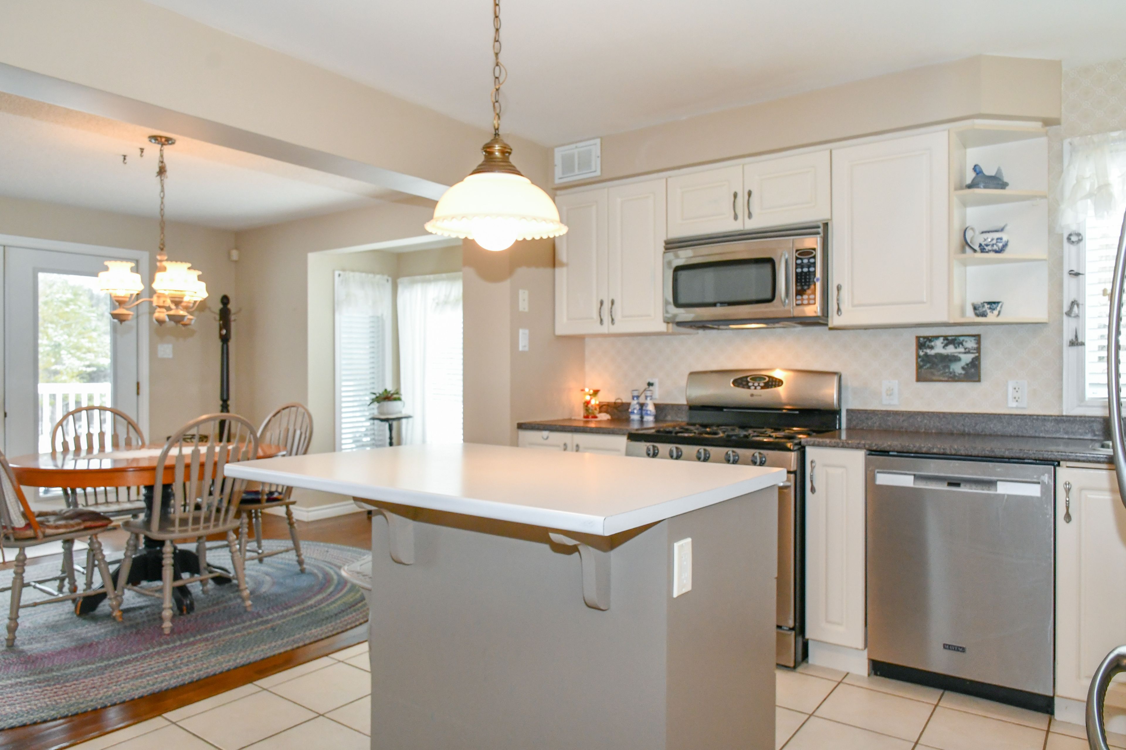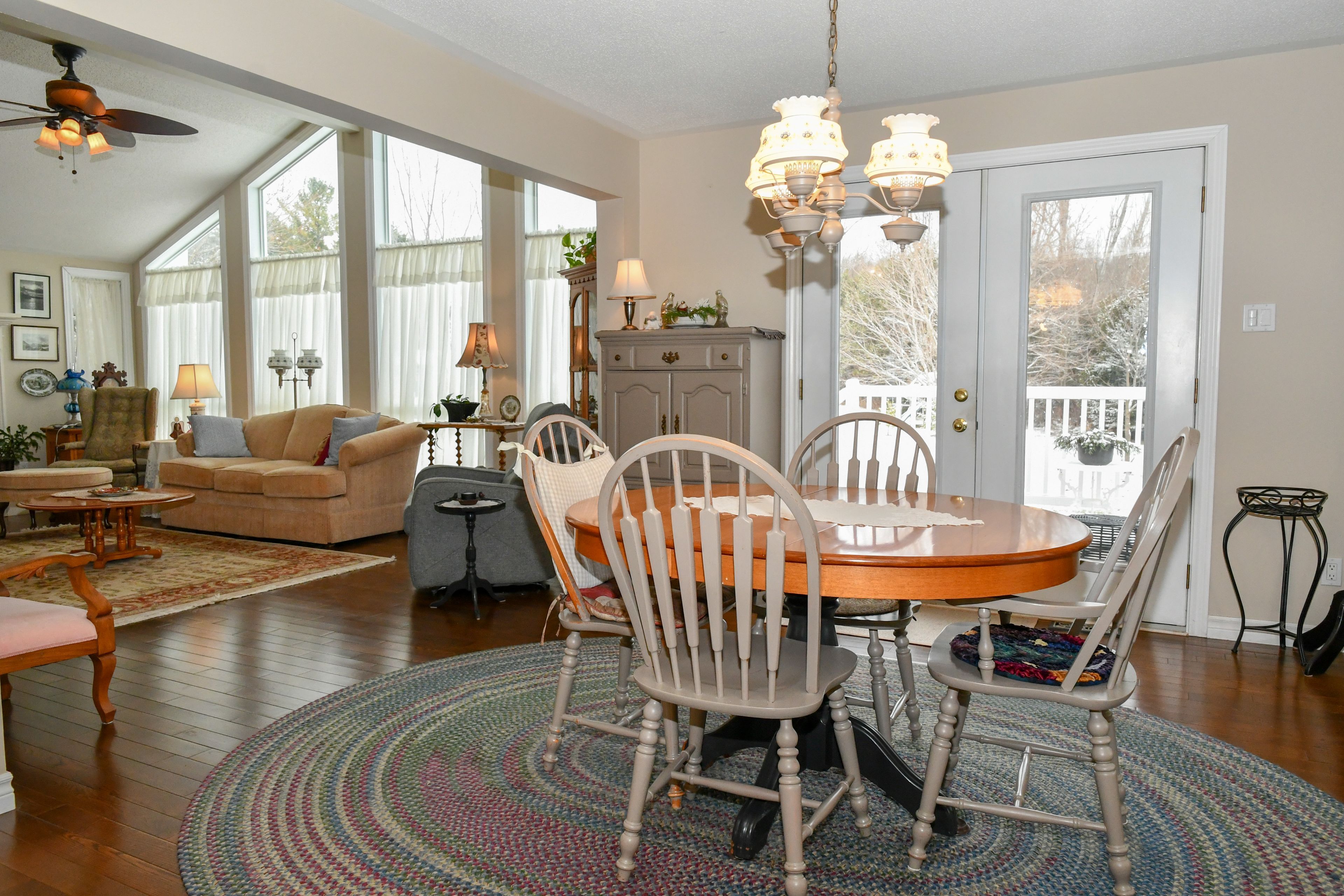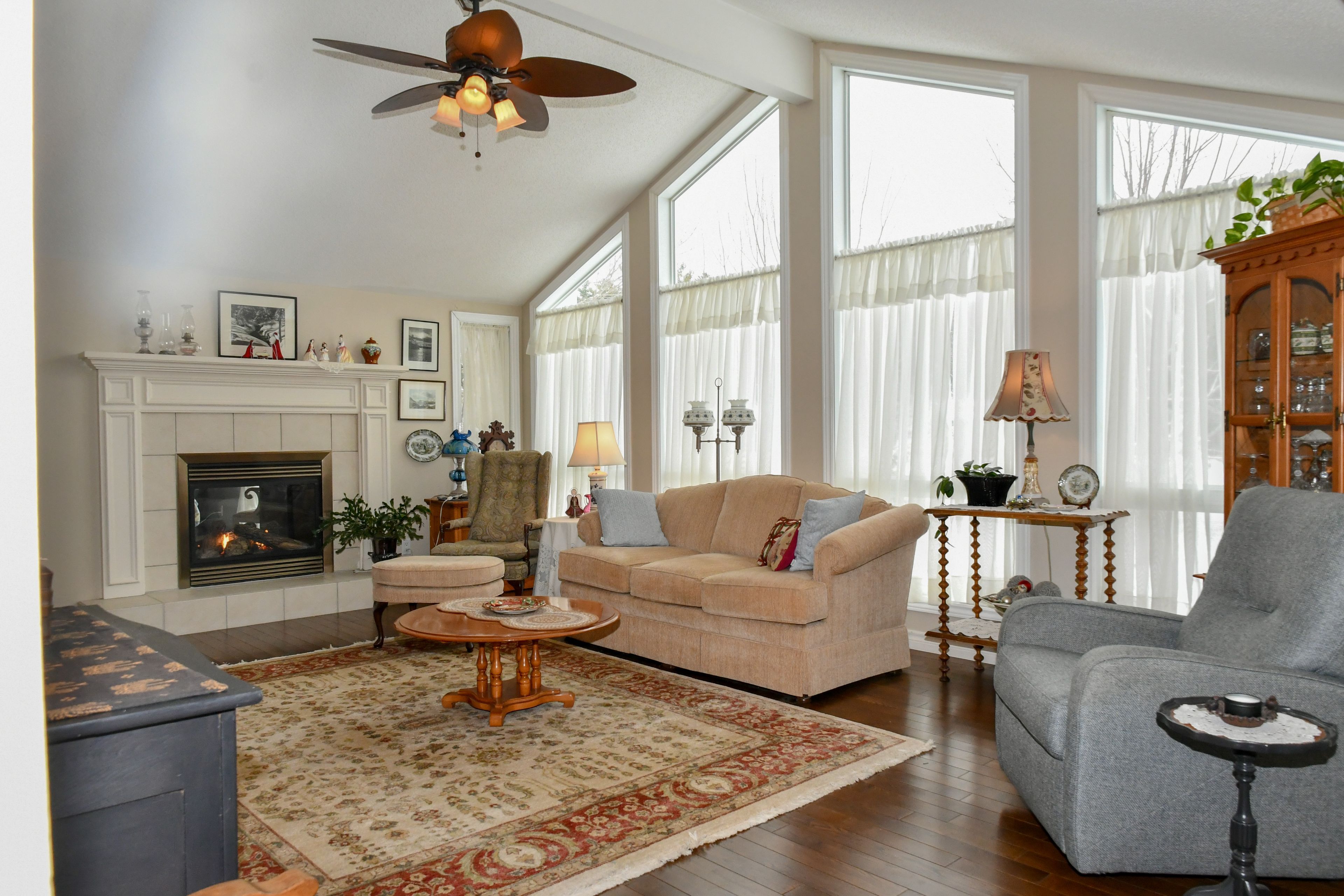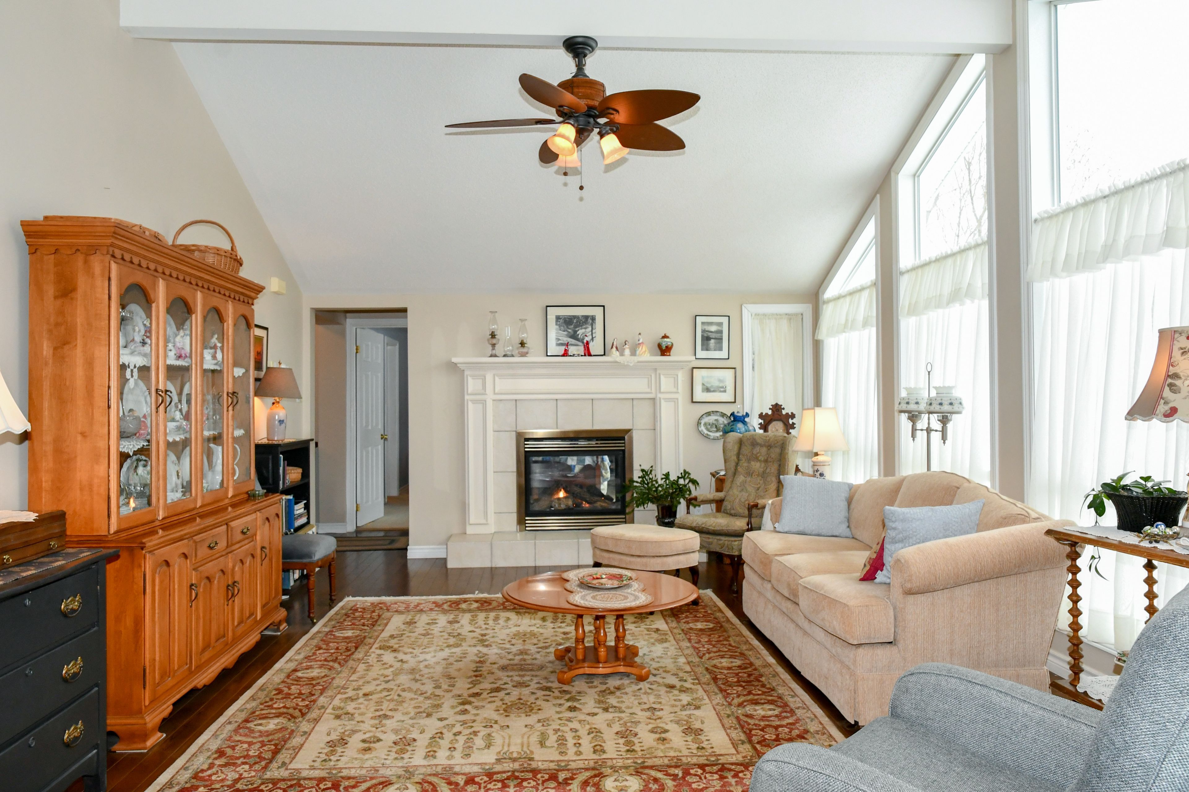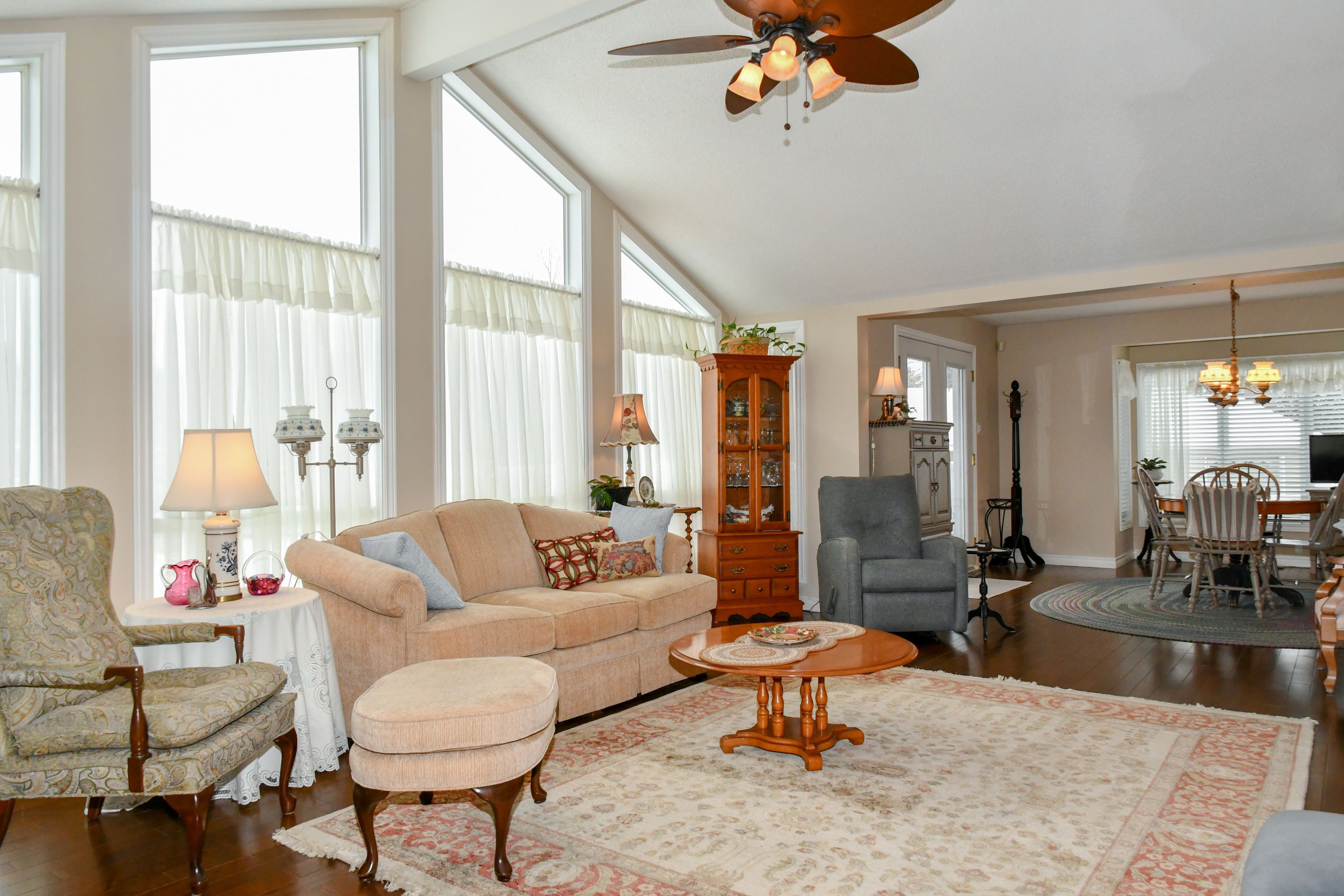 • Bright living room features cathedral ceilings and beautiful views.
